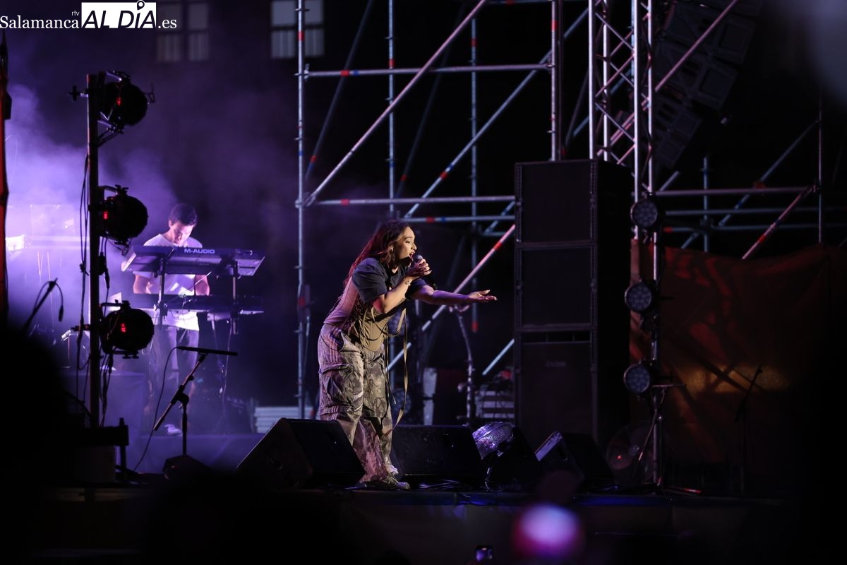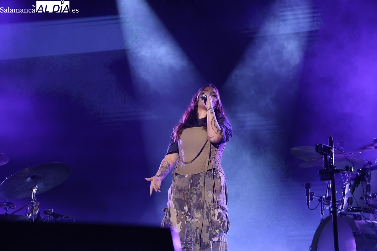 La Plaza Mayor de Salamanca se convirtió en la noche de este sábado, 13 de septiembre, en un hervidero de emociones y música de la mano de Lia Kali. La cantante barcelonesa congregó a una multitud que abarrotó el ágora salmantina, demostrando por qué es uno de los fenómenos musicales más potentes del panorama actual en España.