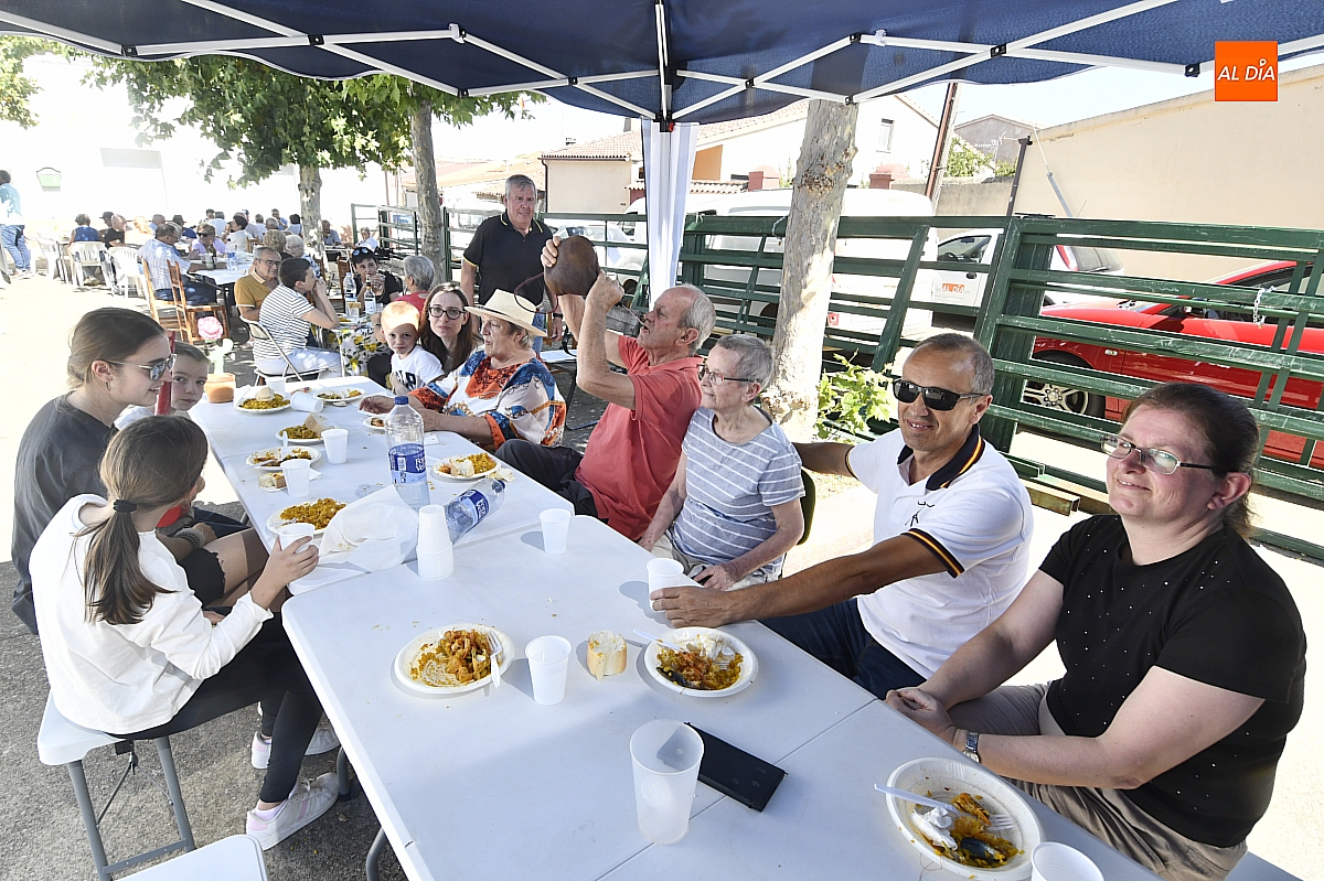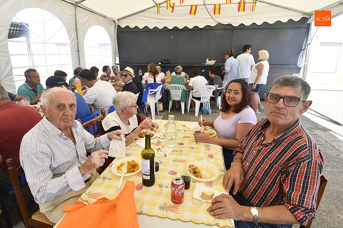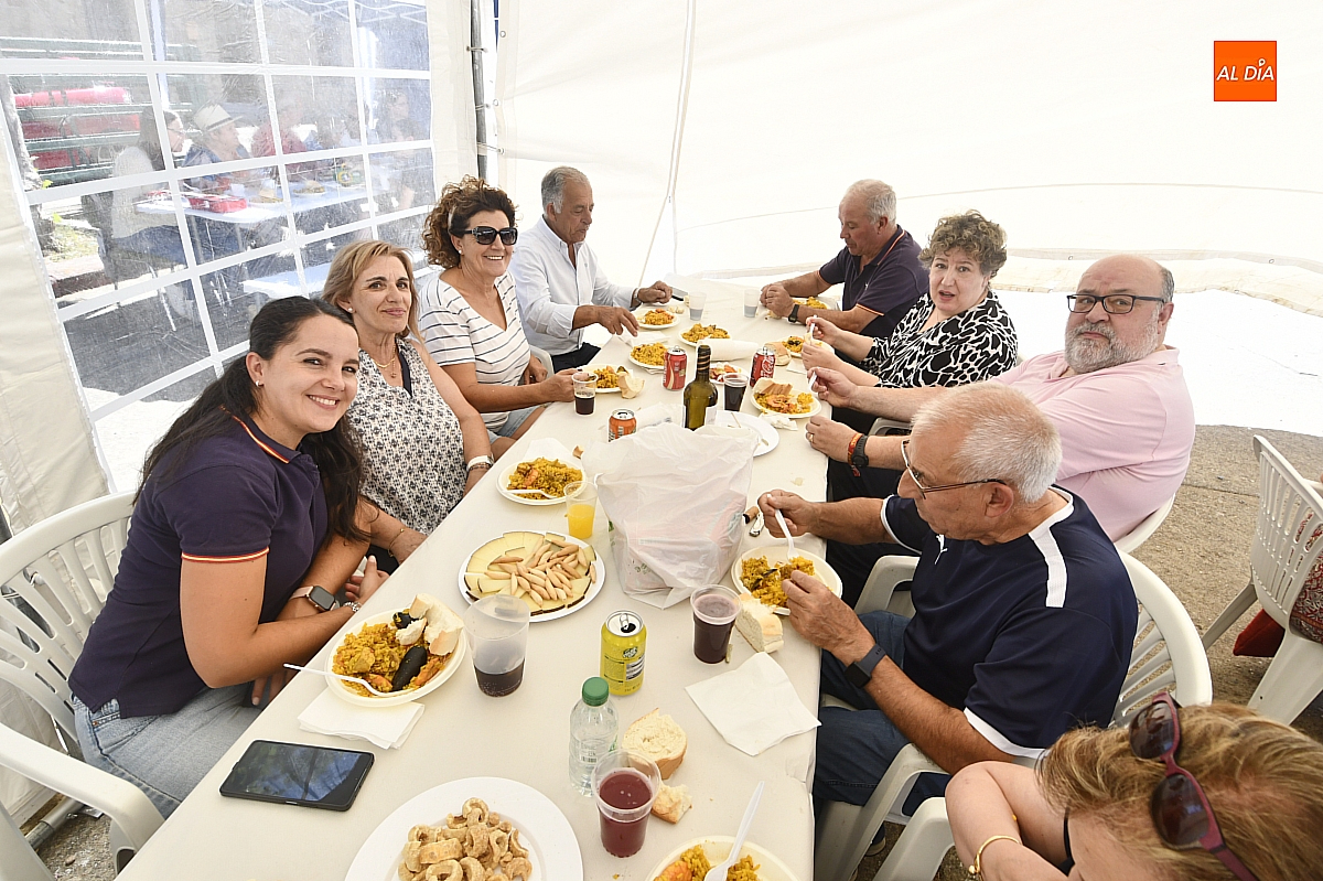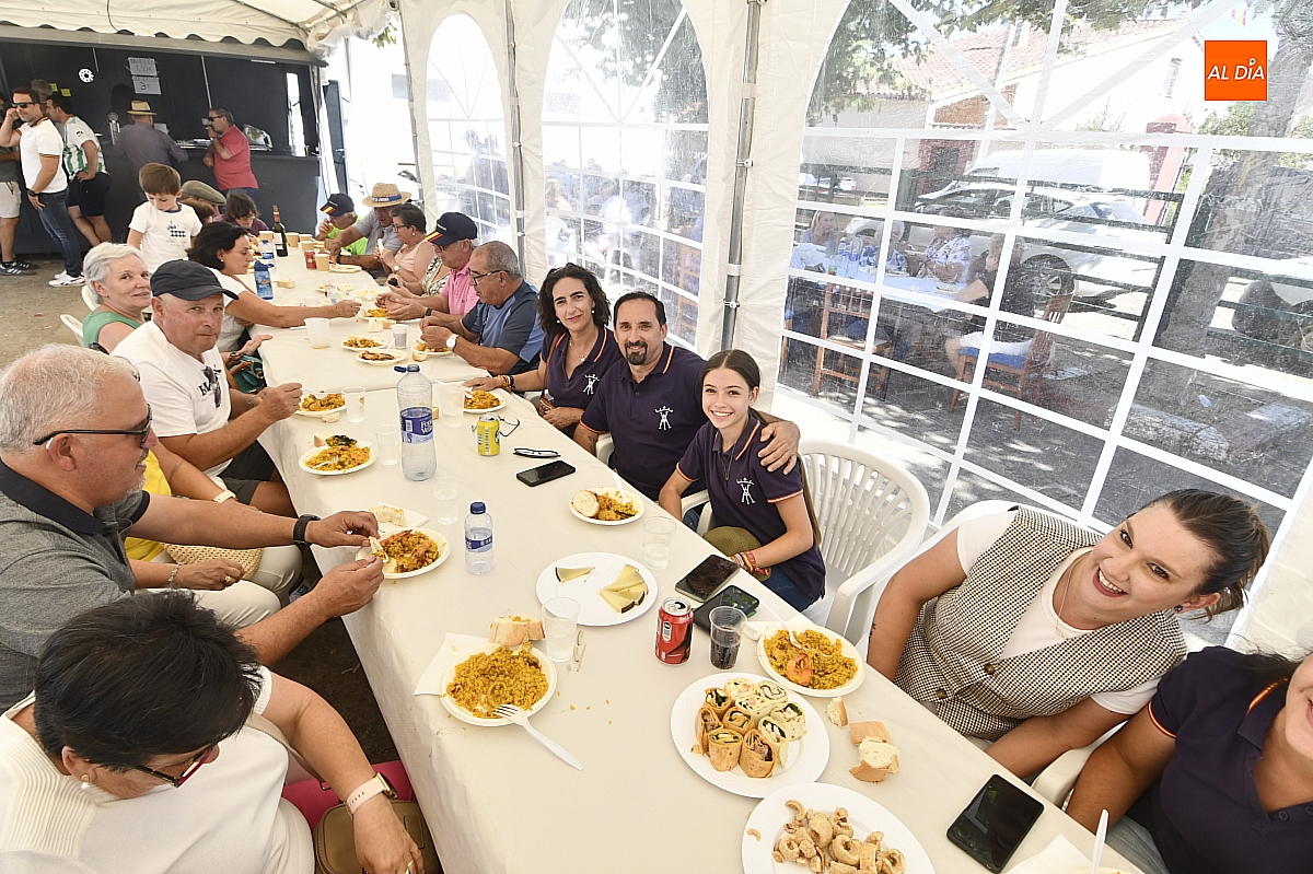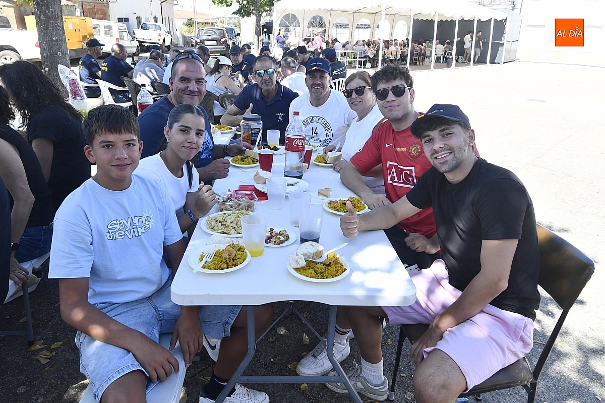 El aroma del arroz impregnó la Plaza Mayor de Aldehuela de Yeltes en la jornada de clausura de las fiestas patronales en honor al Cristo de la Laguna. Cerca de cuatrocientas personas se congregaron en torno a la gran paella popular, servida con esmero por la empresa mirobrigense Paellas Gigantes David, que demostró oficio y buen hacer para satisfacer a un público tan entendido como exigente: los habitantes del Campo Charro. El banquete, convertido en metáfora de convivencia, dejó en los comensales ese sabor de boca que las fiestas bien vividas saben regalar.