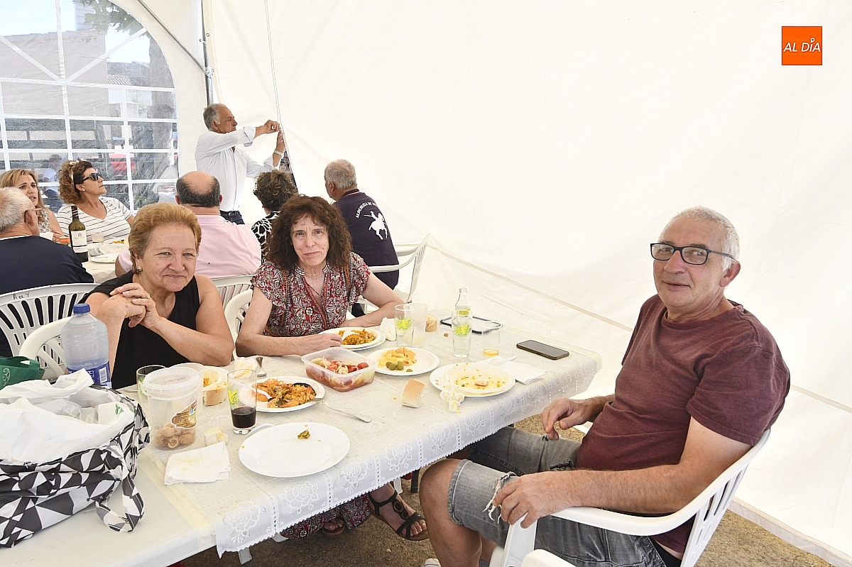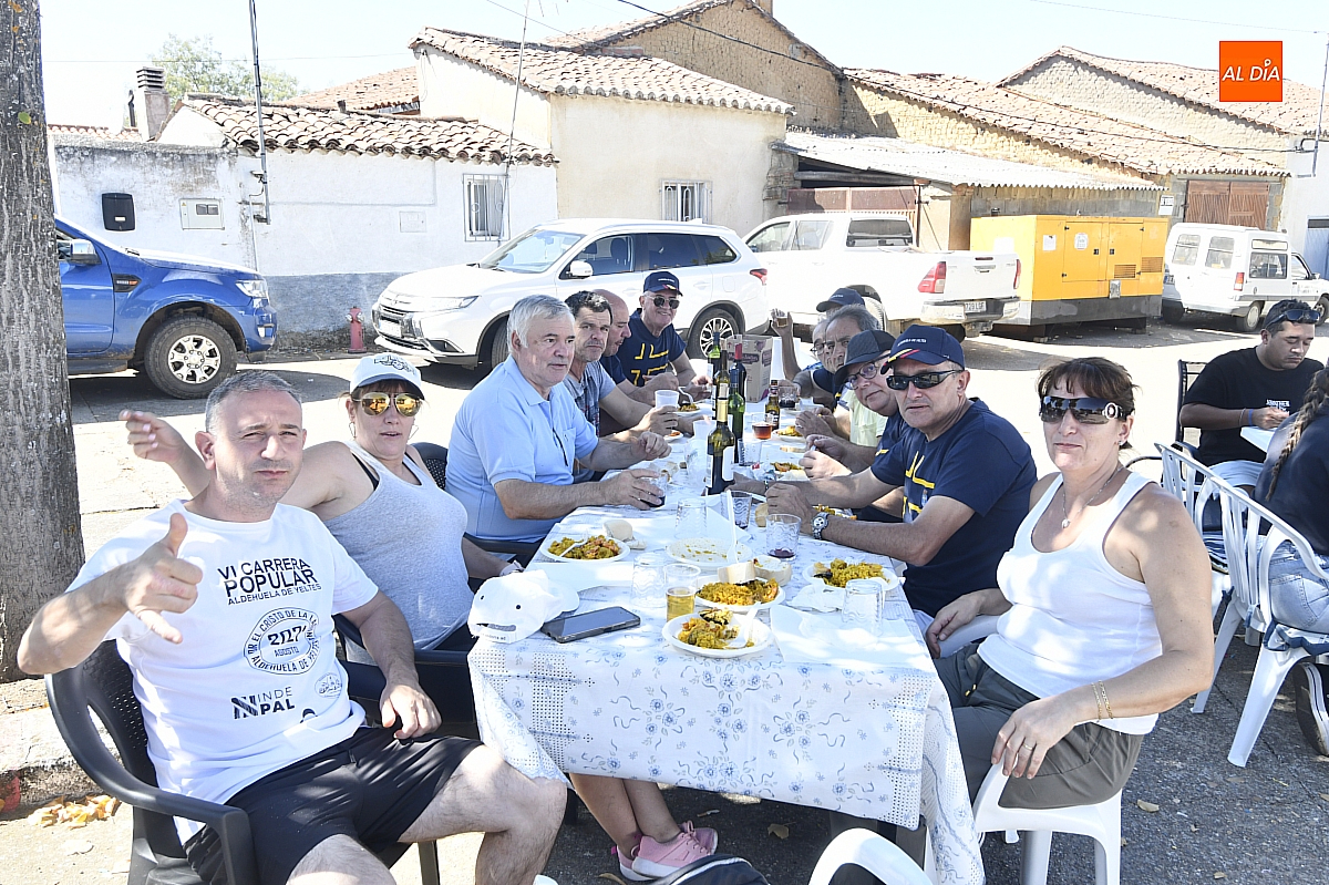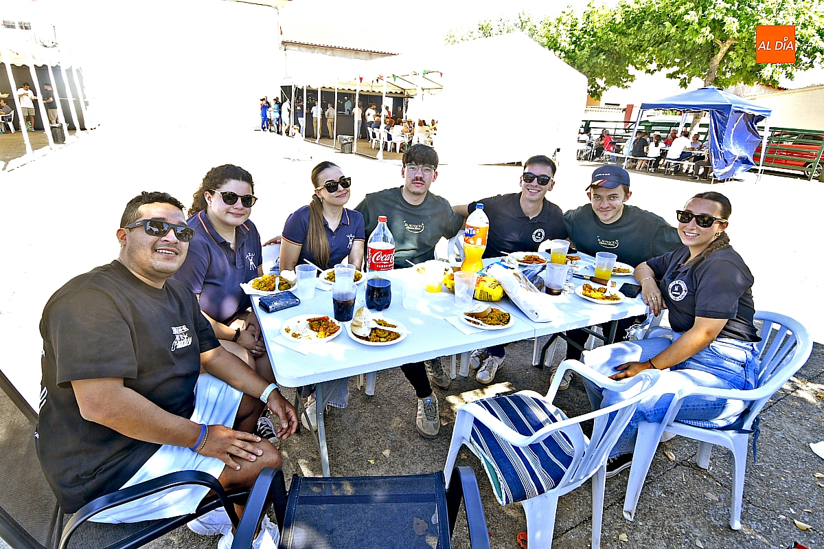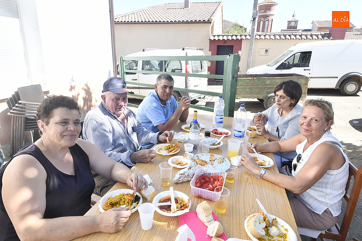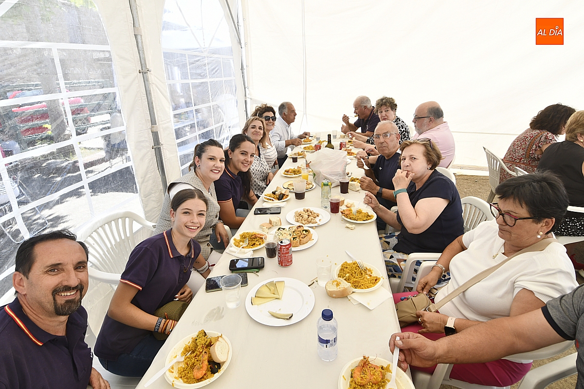 El aroma del arroz impregnó la Plaza Mayor de Aldehuela de Yeltes en la jornada de clausura de las fiestas patronales en honor al Cristo de la Laguna. Cerca de cuatrocientas personas se congregaron en torno a la gran paella popular, servida con esmero por la empresa mirobrigense Paellas Gigantes David, que demostró oficio y buen hacer para satisfacer a un público tan entendido como exigente: los habitantes del Campo Charro. El banquete, convertido en metáfora de convivencia, dejó en los comensales ese sabor de boca que las fiestas bien vividas saben regalar.