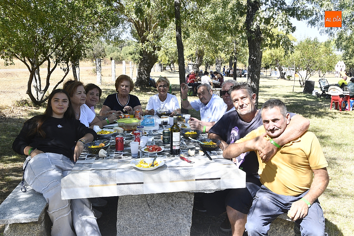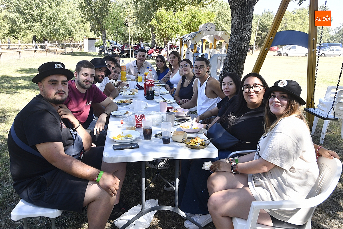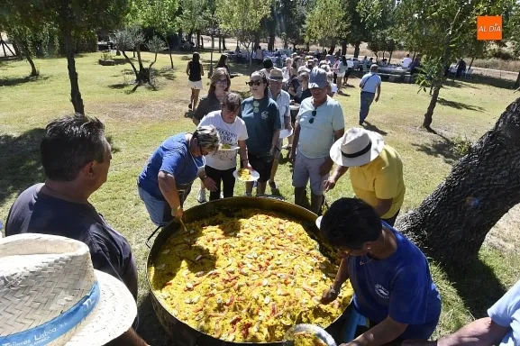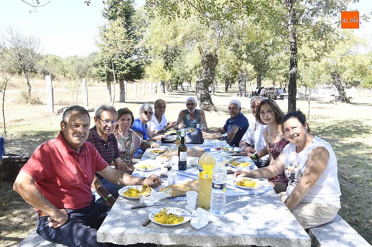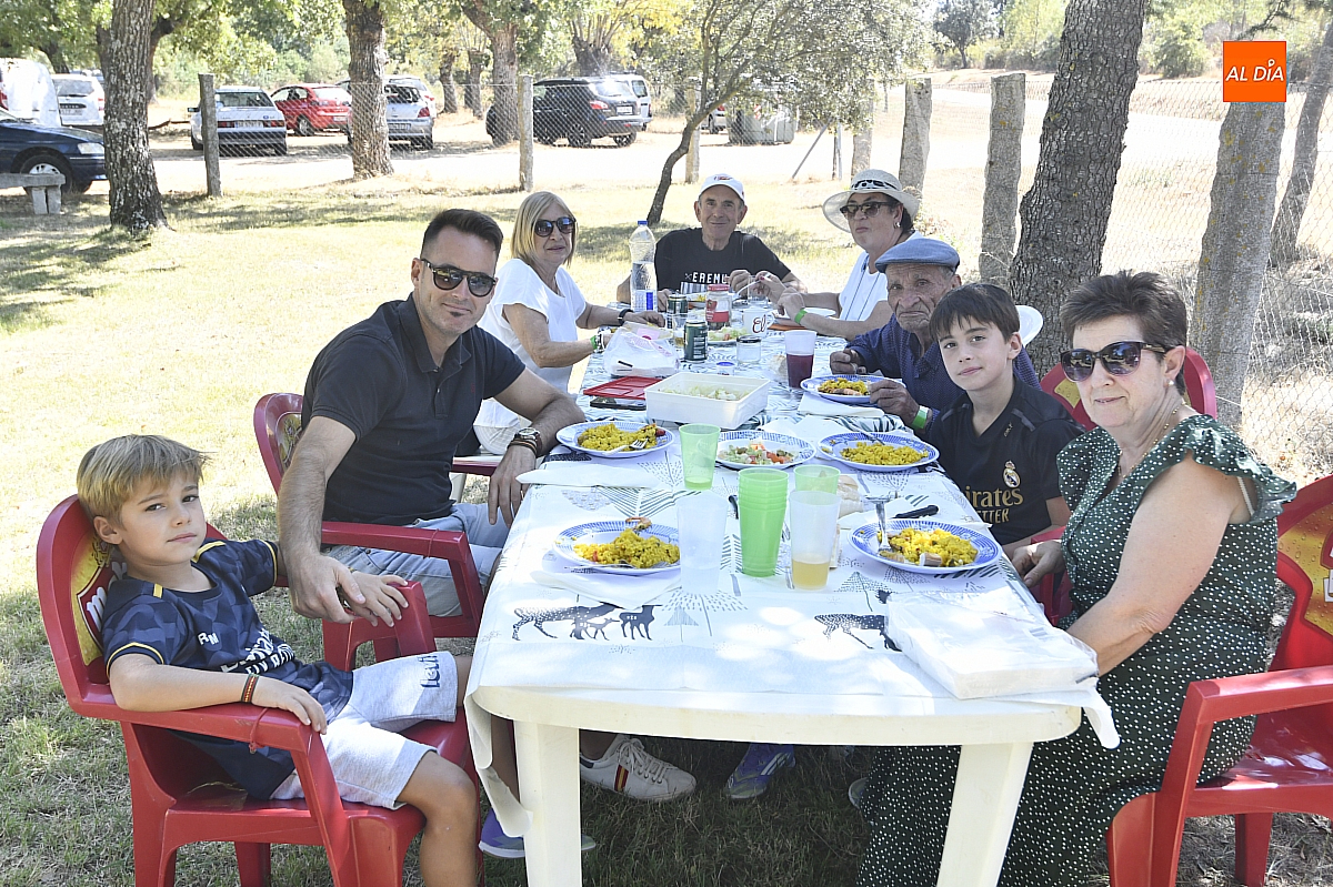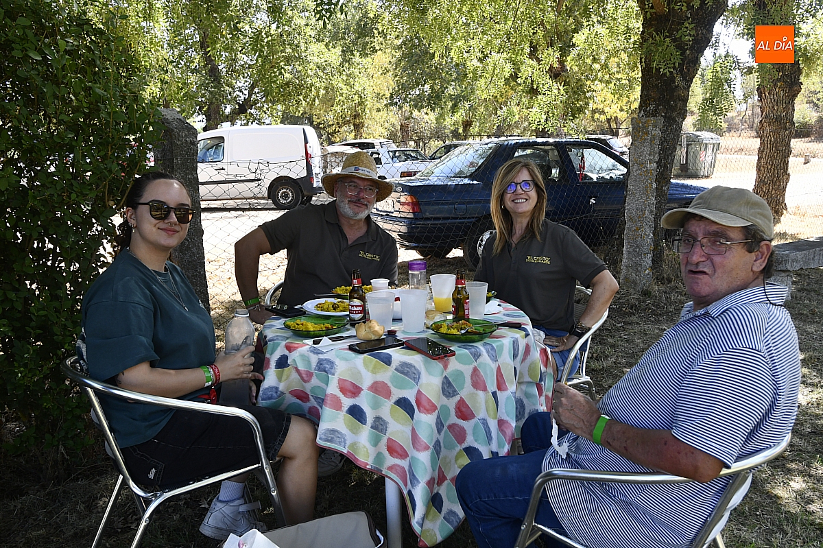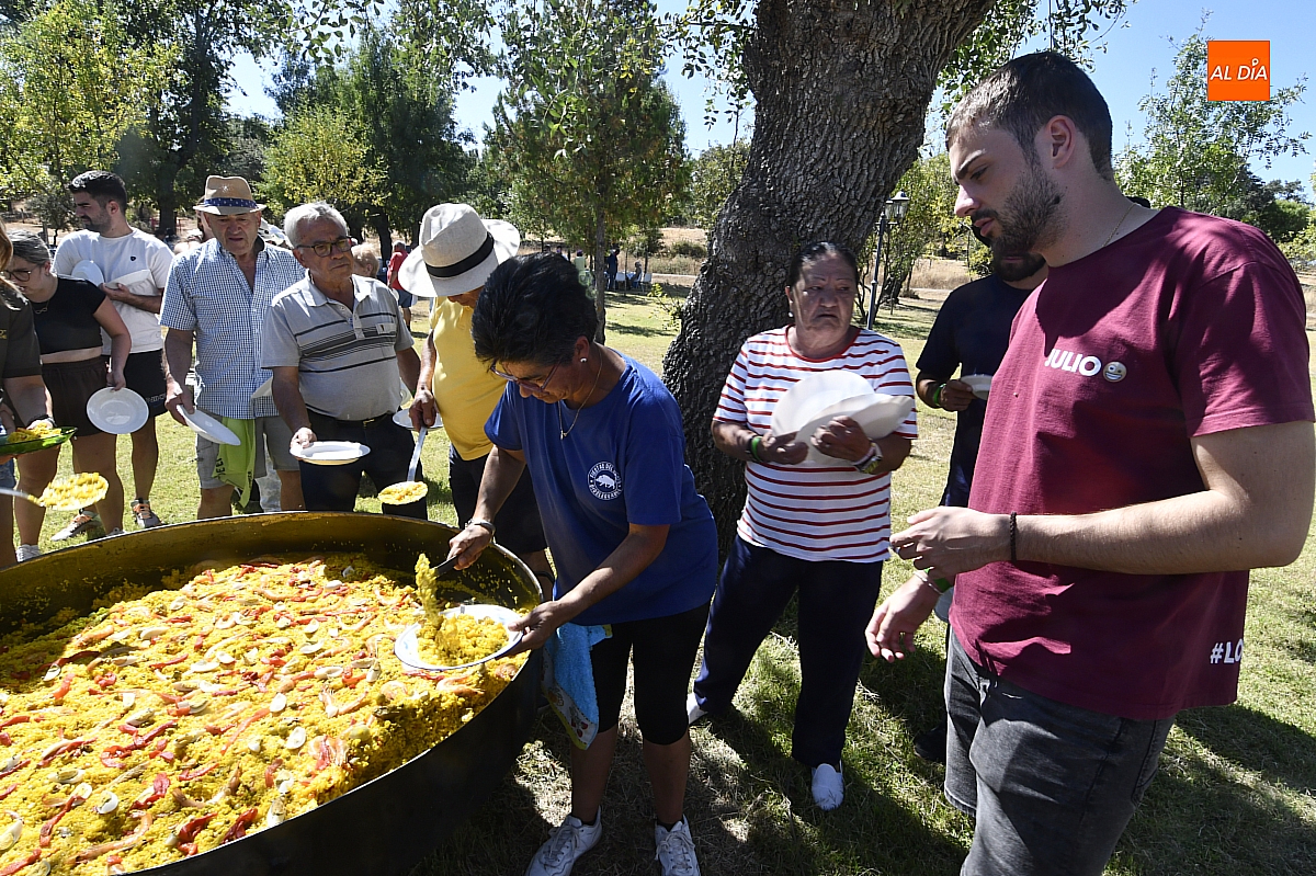 El colofón llegó en forma de manjar compartido: una gran paella, acompañada de una generosa parrillada, que reunió en torno a doscientas personas en el área recreativa del pueblo. No fue un banquete contratado, sino un acto comunitario: los propios vecinos se encargaron de elaborar el festín, gesto que convirtió la comida en un verdadero ejercicio de fraternidad y hospitalidad. Familiares y amigos se sentaron a la mesa común, prolongando la fiesta en conversaciones, brindis y abrazos.