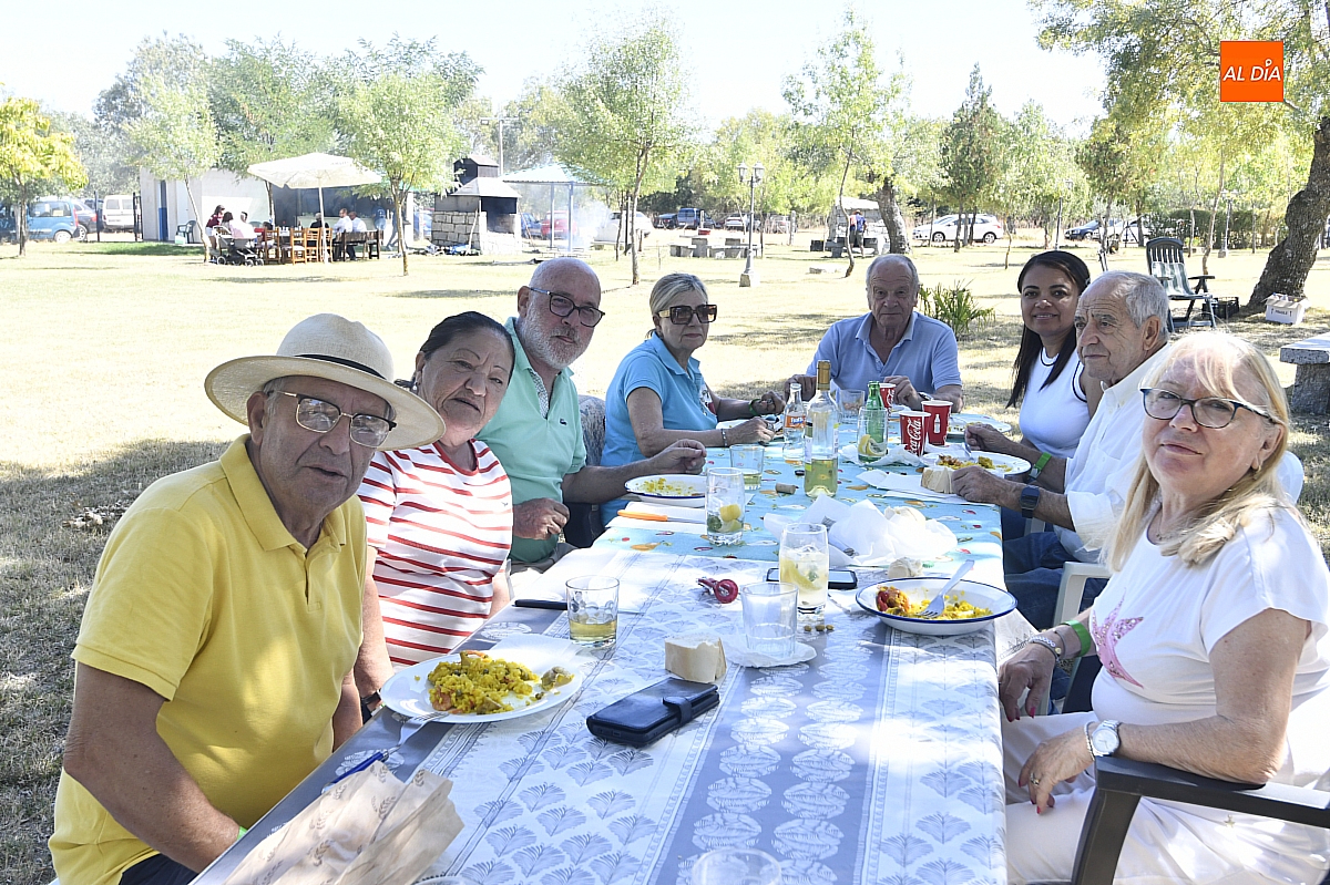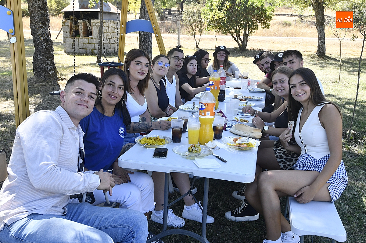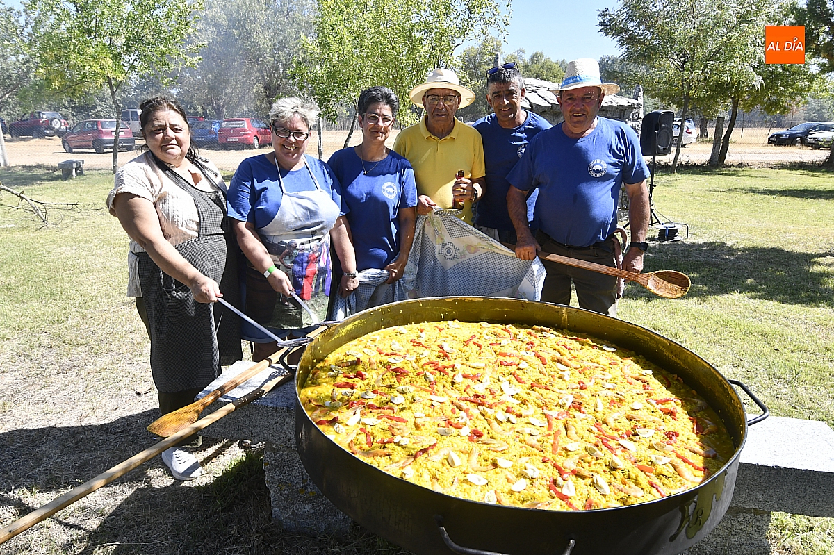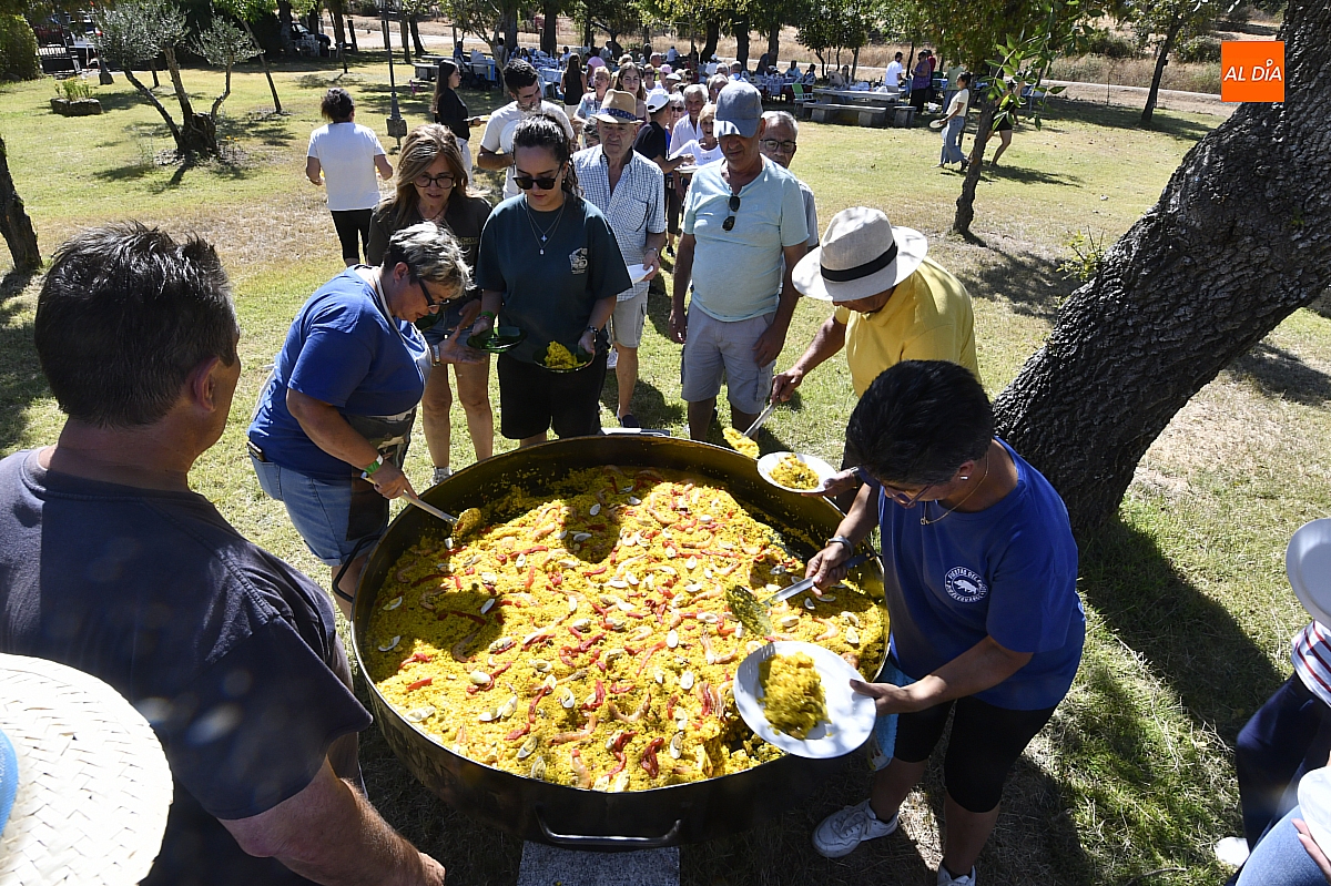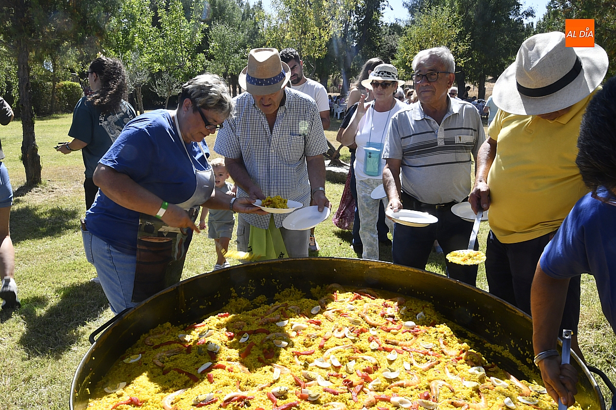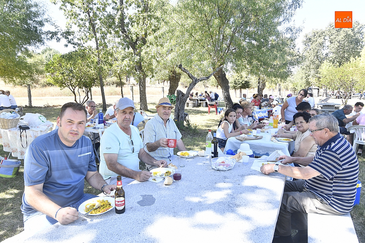 El colofón llegó en forma de manjar compartido: una gran paella, acompañada de una generosa parrillada, que reunió en torno a doscientas personas en el área recreativa del pueblo. No fue un banquete contratado, sino un acto comunitario: los propios vecinos se encargaron de elaborar el festín, gesto que convirtió la comida en un verdadero ejercicio de fraternidad y hospitalidad. Familiares y amigos se sentaron a la mesa común, prolongando la fiesta en conversaciones, brindis y abrazos.
