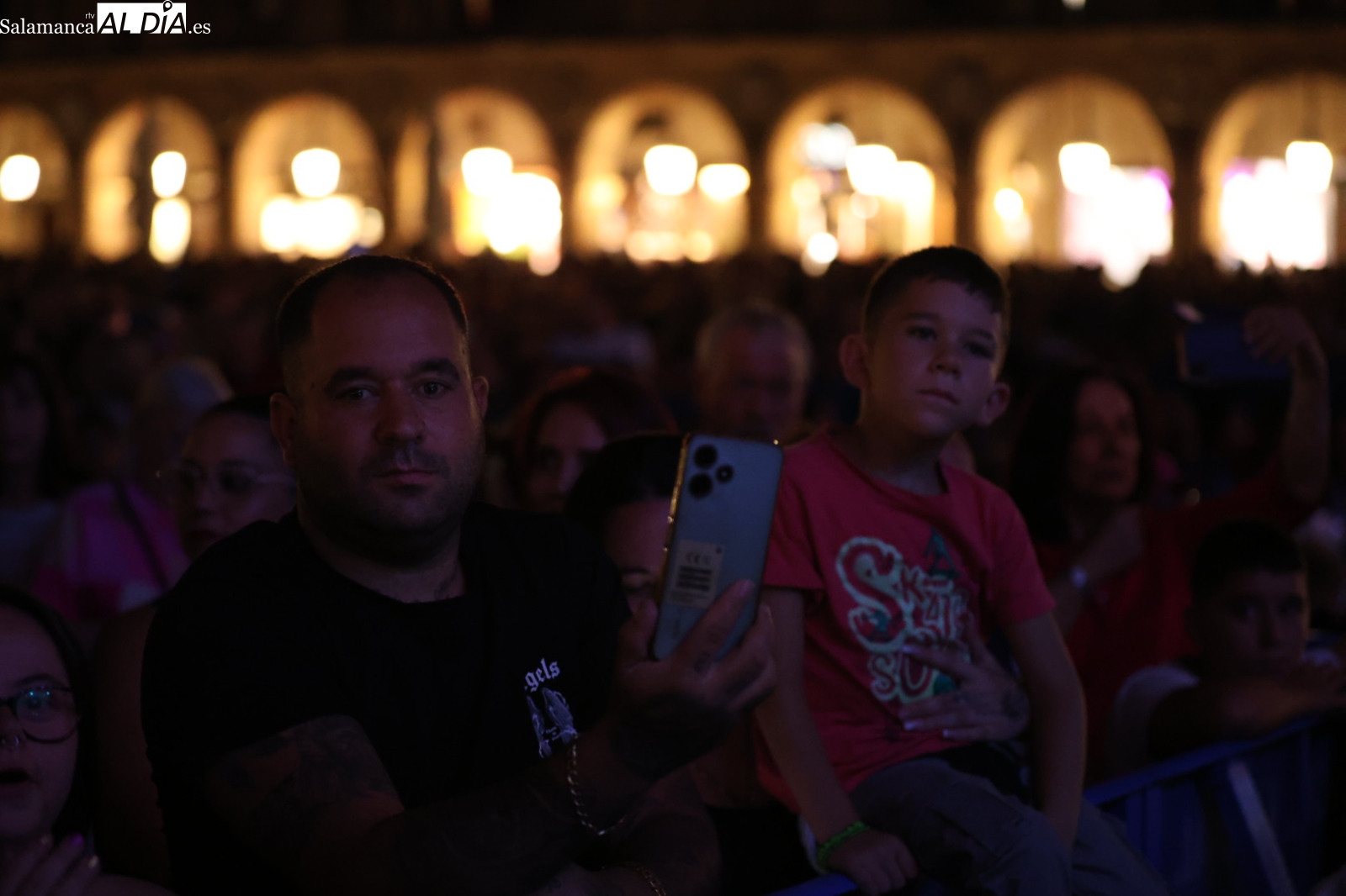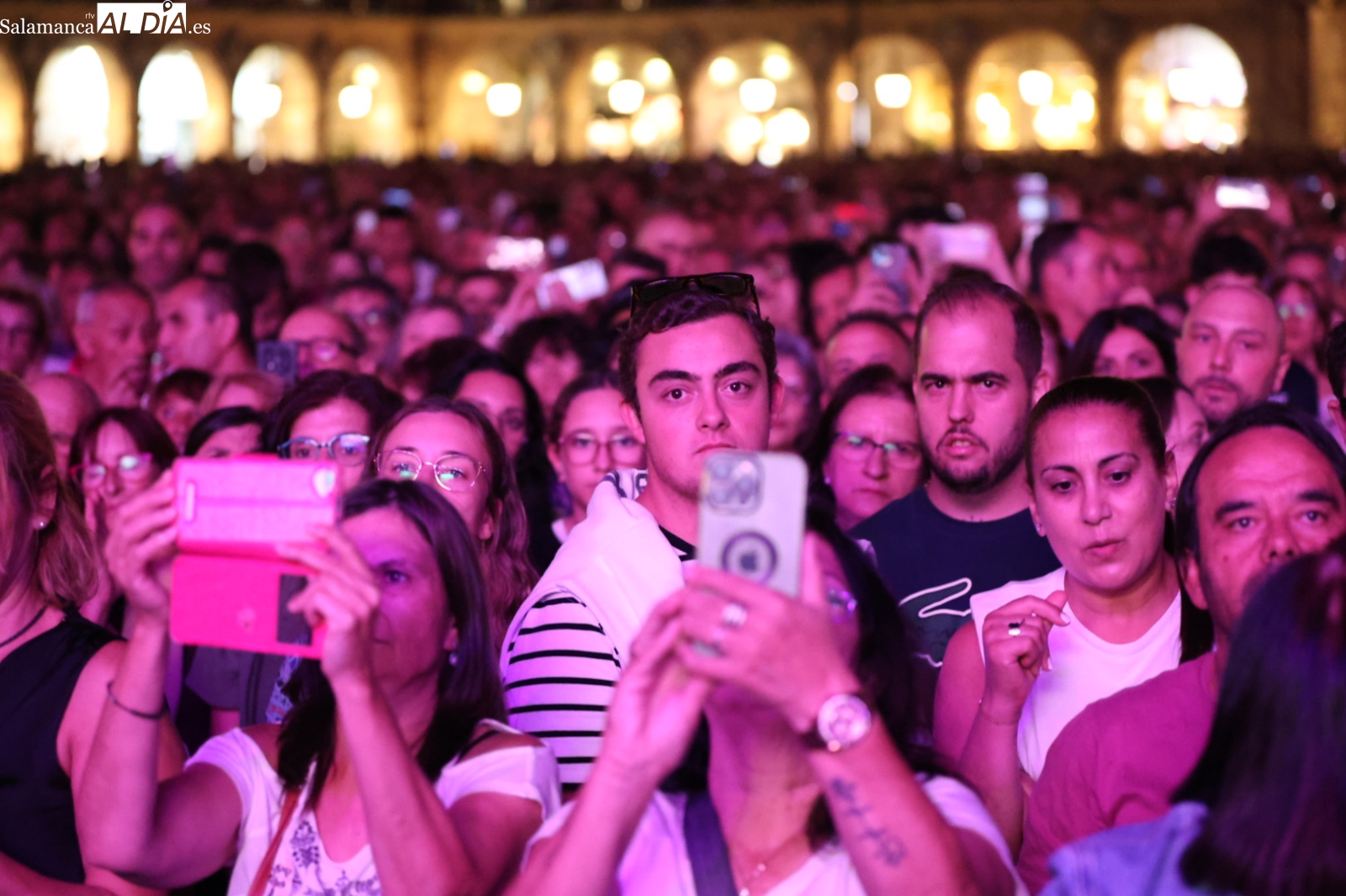 La Plaza Mayor de Salamanca ha vibrado esta noche para poner el punto y final a las Ferias y Fiestas de 2025. El encargado de poner el broche de oro ha sido el cantaor José Mercé, quien ha ofrecido un concierto multitudinario ante un público que llenaba el ágora salmantina.