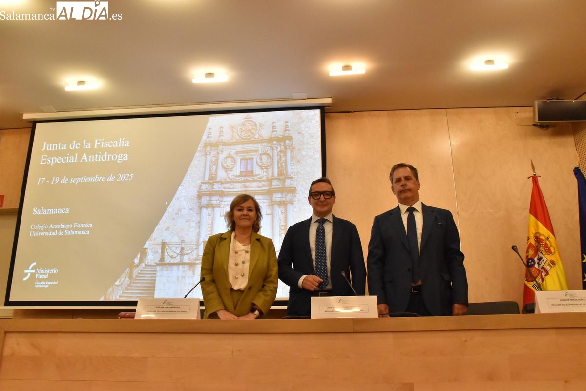 Salamanca, y concretamente el emblemático marco de su Universidad, se ha convertido en el epicentro de la estrategia nacional contra el crimen organizado. La Junta de delegados de la Fiscalía Especial Antidroga ha dado comienzo a su reunión anual, un cónclave de máxima relevancia que reúne a los fiscales especializados de todo el territorio para unificar criterios, compartir experiencias y, sobre todo, trazar las líneas maestras que guiarán la lucha contra el narcotráfico en el próximo año. El acto de inauguración ha contado con la presencia del rector de la Universidad de Salamanca, Juan Manuel Corchado, quien ha ejercido de anfitrión junto a Rosa Ana Morán Martínez, fiscal jefa de la Fiscalía Especial Antidroga, y Juan José Pereña Muñoz, fiscal jefe de la Fiscalía provincial de Salamanca.