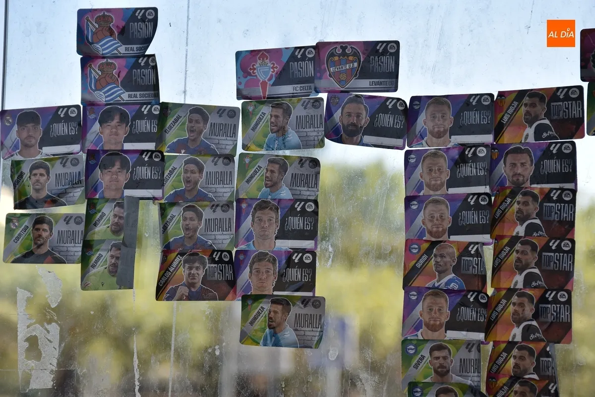 La colocación de estas pegatinas en la marquesina se está haciendo de una forma totalmente ordenada, por equipos, con una columna para los jugadores de cada uno de ellos, que se inicia con los escudos de los mismos. Las pegatinas de los jugadores –entre los que hay muchos repetidos- tienen varios modelos, bajo los epígrafes ‘Muralla’ o ‘Top Star’ en algunos de los casos, mientras que en otros se invita a reconocer al jugador bajo la leyenda ¿Quién es? (con el objetivo de participar en un concurso enviando varios de ellos).