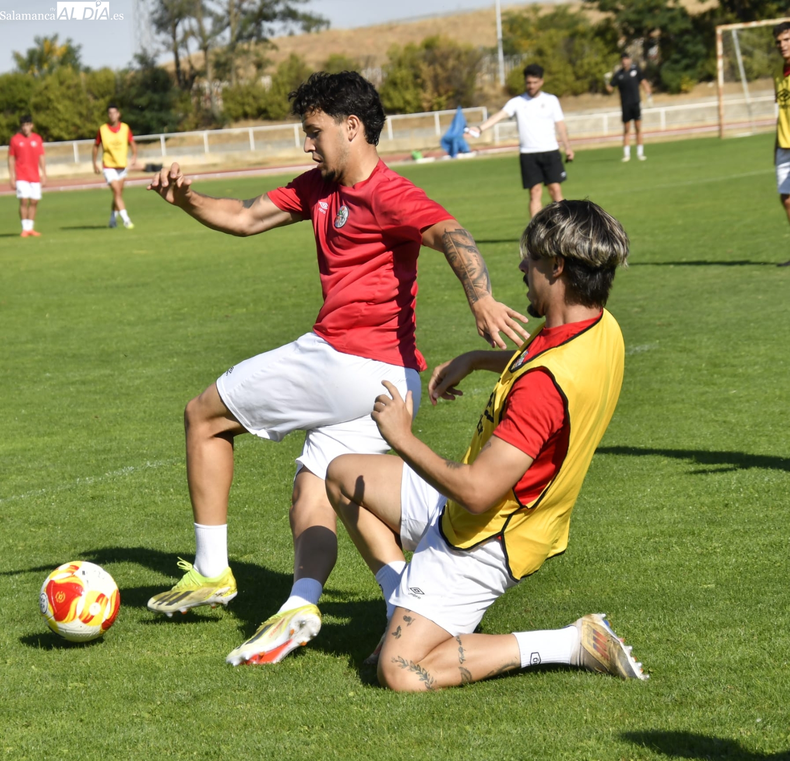 Jorge García ganó -en gran parte- el primer partido como local del Salamanca UDS con una variante táctica al cambiar en el segundo tiempo del 4-2-3-1 al 3-5-2 (o 5-3-2, que viene a ser similar). Un movimiento de ajedrez que le funcionó y en la sesión del jueves ha querido seguir trabajando con él por lo que pueda pasar el próximo domingo en Abegondo ante el Dépor B.