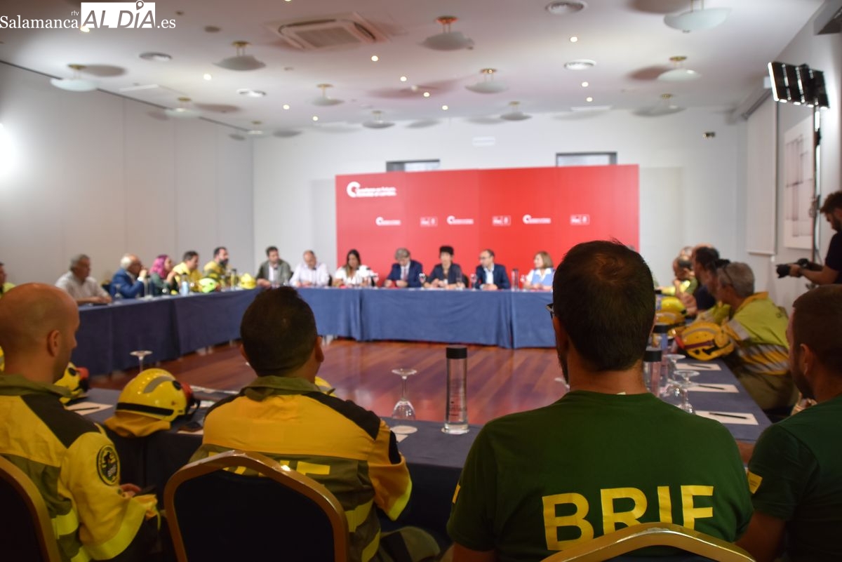 El encuentro sirvió también para confrontar dos modelos de gestión. David Serrada fue contundente al criticar la política del gobierno autonómico. "En los 13 últimos años, la junta de Castilla y León ha reducido un 90 por 100 el presupuesto en prevención y extinción de incendios", denunció. Además, señaló que "el 40 por 100 de los bomberos trabajan en empresas privadas", un hecho que, a su juicio, precariza el sector.