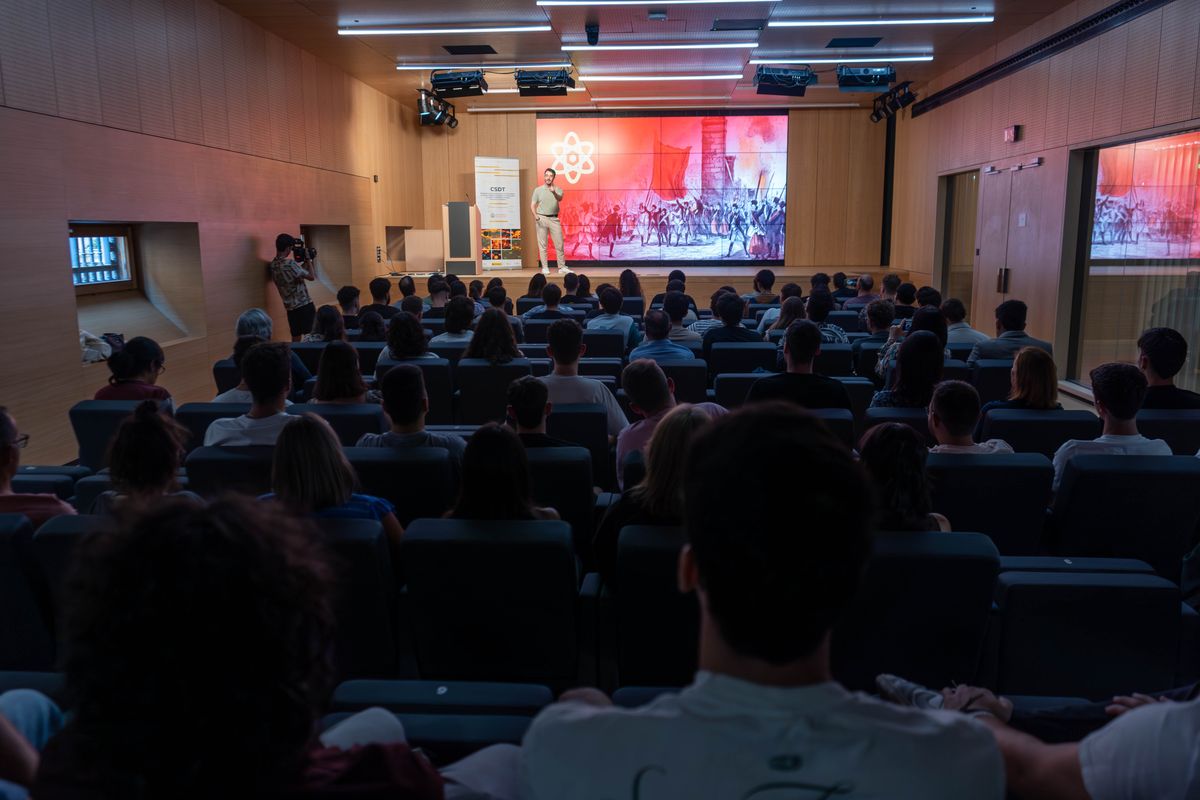 A continuación, tuvo lugar una de las charlas más esperadas: ¡Cuántica: desde Superposiciones hasta Ordenadores Cuánticos¡, impartida por el divulgador científico José Luis Crespo Cepeda, conocido en redes como Quantum Fracture. “El padre del ordenador cuántico es un español, Ignacio Cirac, al desarrollarse las grandes potencias mundiales se sintieron amenazadas porque podía acabar con la seguridad digital del mundo en poco tiempo, por ello, ahora no está tan claro que un ordenador cuántico vaya a revolucionar tanto el mundo como los han hecho los ordenadores clásicos; aunque digan que mejorará la optimización de procesos, simulación cuántico (permitirá simular sistemas cuánticos), esto hoy día con los ordenadores clásicos no se podrá realizar.
