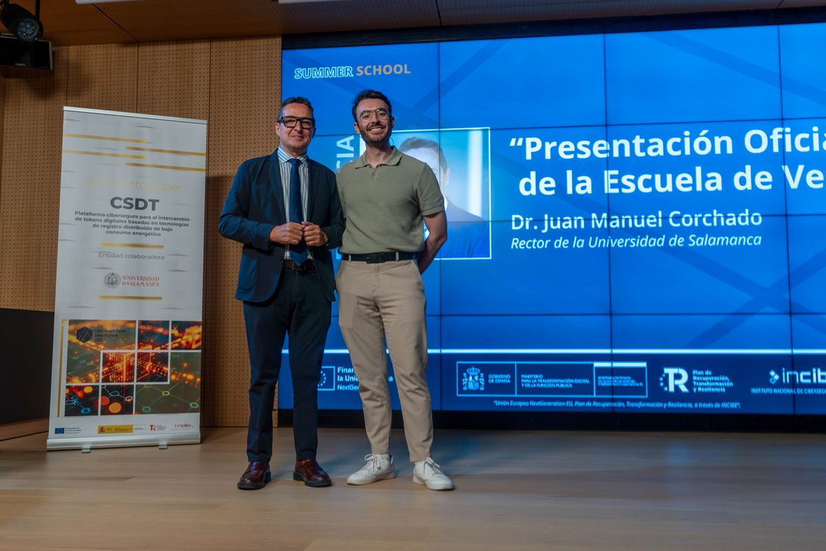El acto inaugural de la jornada de este jueves contó con la ponencia del Juan Manuel Corchado, rector de la Universidad de Salamanca, quien presentó oficialmente la Escuela de Verano: “La escuela de verano CSDT es un evento que ofrece un programa formativo dentro del proyecto estratégico. CSDT pretende lograr el intercambio de tokens digitales, basado en tecnologías de registro distribuido de bajo consumo energético”.