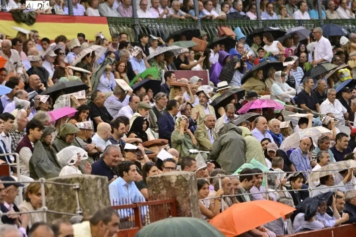 Ismael puso patas arriba la plaza con su recibo capotero, primero una larga rodilla en tierra, después con variedad y gusto para terminar desarmado en el centro y llevarlo después por chicuelinas al paso al caballo. Puso como un polvorín a los tendidos, en pie, en banderillas, no quiso ni supo guardarse nada. Y brindó a Morante y toreó firme, seguro, resuelto, con la autoridad de quien torea en casa, de quien entra por la puerta de la sustitución, ganada a pulso, y sale por la puerta grande como uno de los triunfadores indiscutibles de la feria. Cuando el toro, muy noble, comenzó a apagarse, tiró de toreo de rodillas y cercanías, sin desaprovechar nada. Entrega total se llama. Con el manso y rajado quinto lo intentó persiguiéndolo por la plaza, pero tenía más ganas de irse que los espectadores -que no aficionados- que corrían por los tendidos como pollos sin cabeza para no mojarse. Una falta de respeto a quienes se la juegan abajo y a quienes pagan arriba. De la hora de llegar de algunos a la plaza, mejor ni hablamos. Y veinte, eran y veinte.