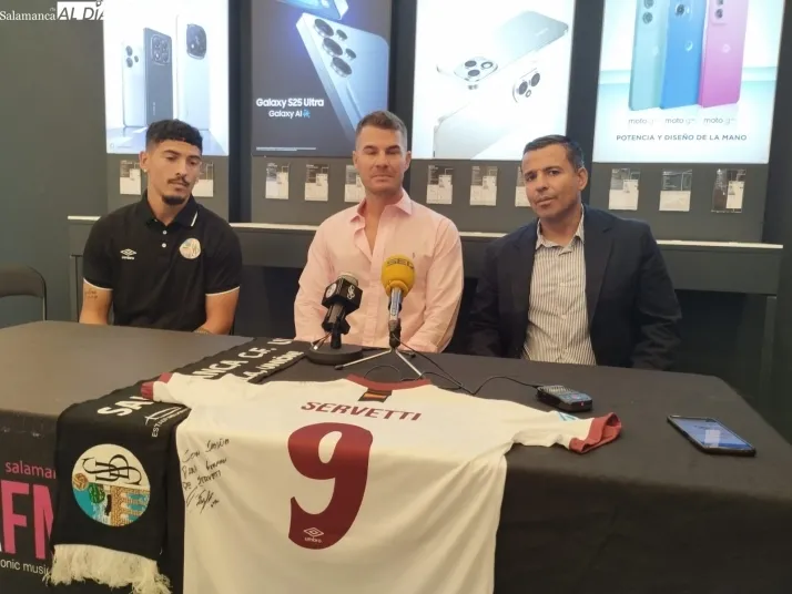 Jorge García y Rafa Dueñas, entrenador y director general del Salamanca UDS, han comparecido en la rueda de prensa previa al partido en Abegondo con el Dépor B en la sede de San Máximo Telecom, patrocinador del club.