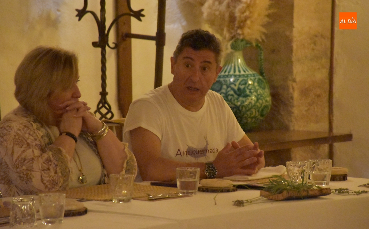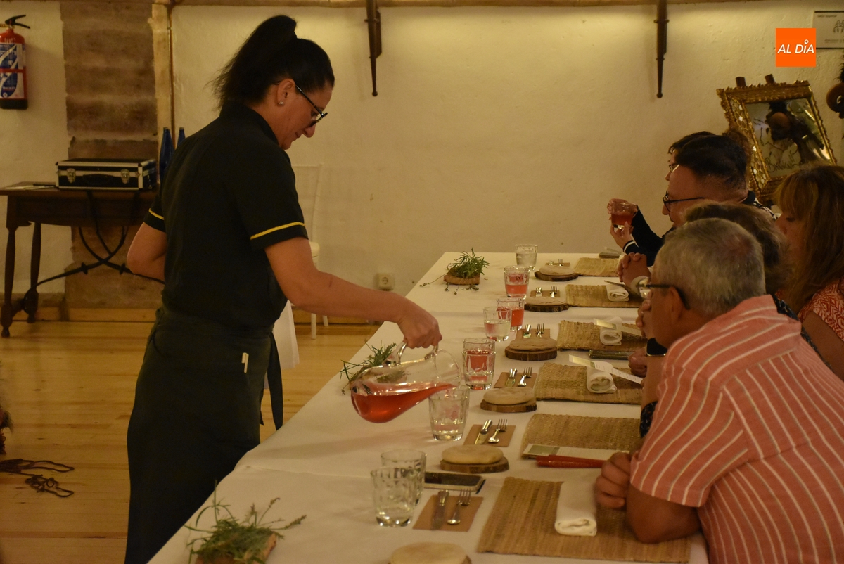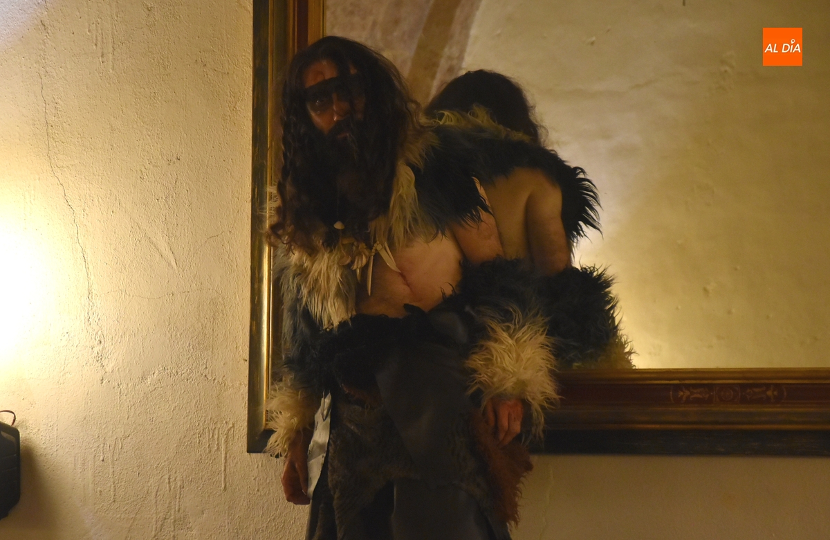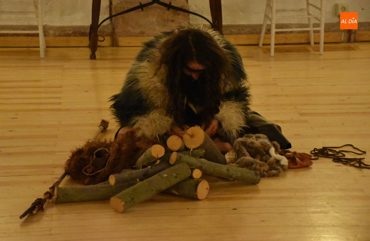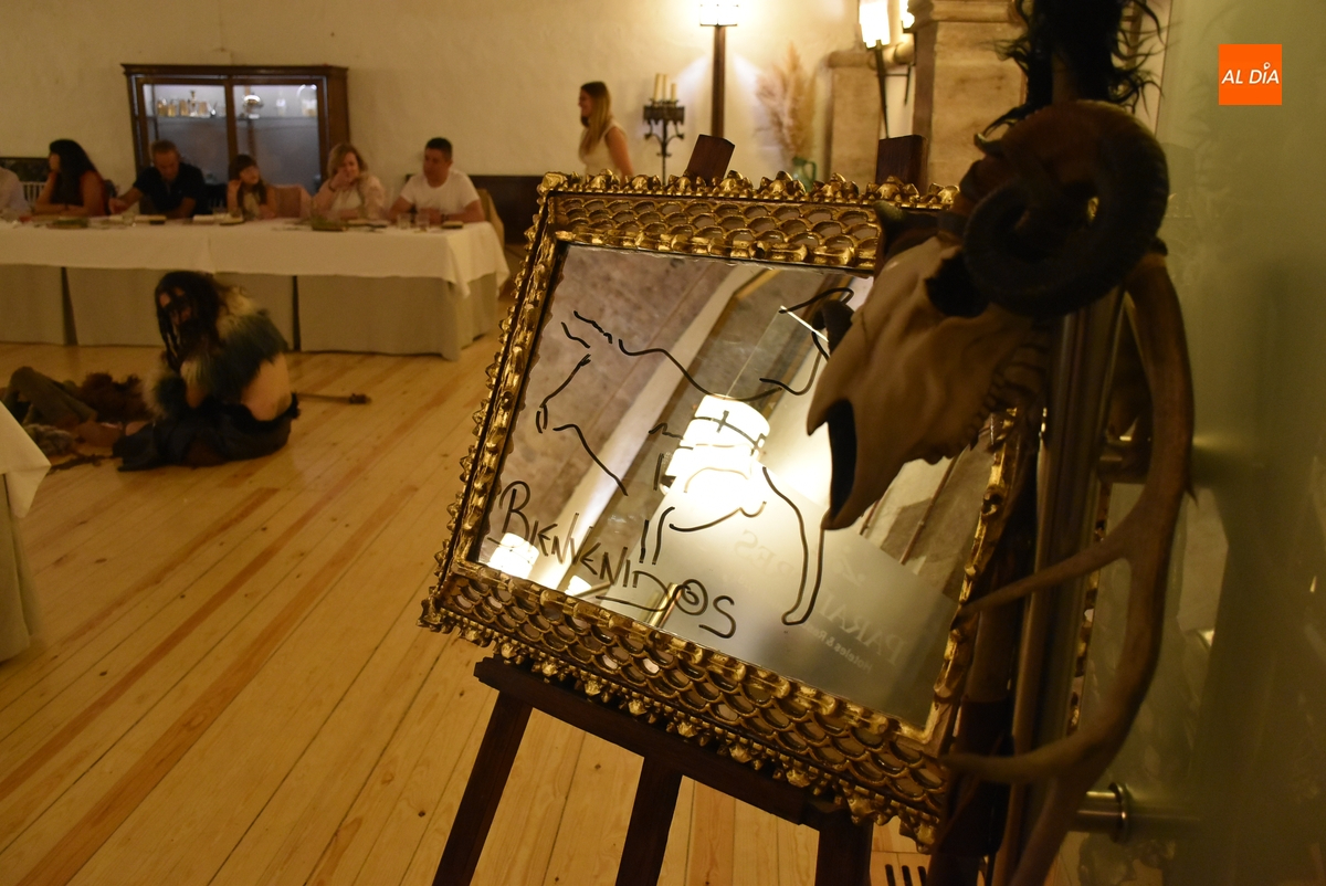 Los comensales que se animaron a probar en la noche del sábado los ‘sabores de Siega Verde’ tuvieron la compañía en el Salón Imperial de un hombre de la Prehistoria, interpretado por Sergio Cardoso, que pasó la velada alrededor de una ‘fogata’ situada en el centro de las mesas, pero fue interactuando de forma continua con los asistentes, teniendo también la oportunidad de probar algunos de los componentes del menú.