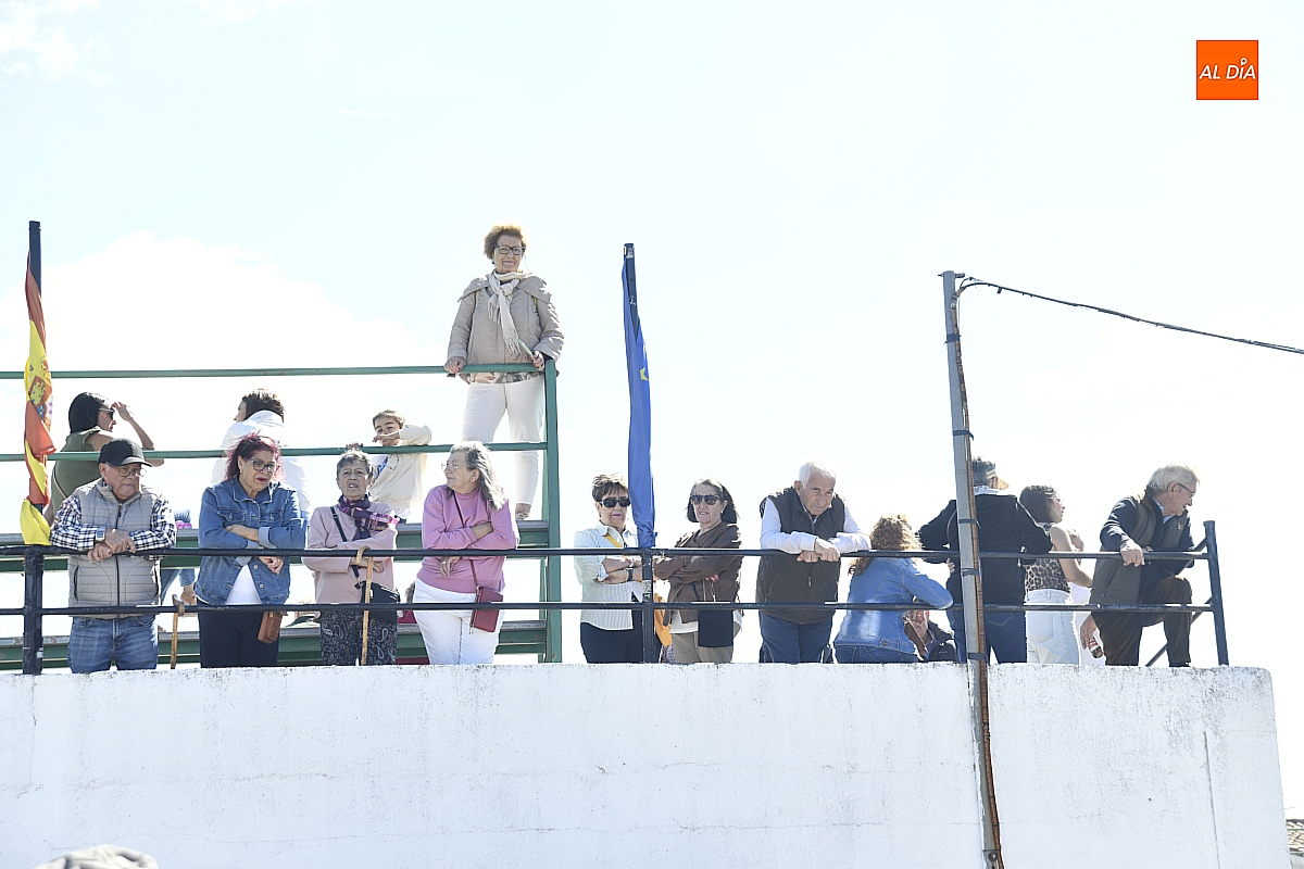 La tarde, sin embargo, devolvió el pulso taurino a la localidad. En la plaza se celebró la lidia de los dos novillos en una clase práctica a cargo de los alumnos de la Escuela de Tauromaquia de Salamanca, Samuel Berdejo y José Tomás Ortiz. La faena, de jóvenes manos pero de espíritu firme, fue preludio de la capea tradicional, donde la participación del público alivió la decepción matinal y devolvió la risa y el arrojo a la arena.