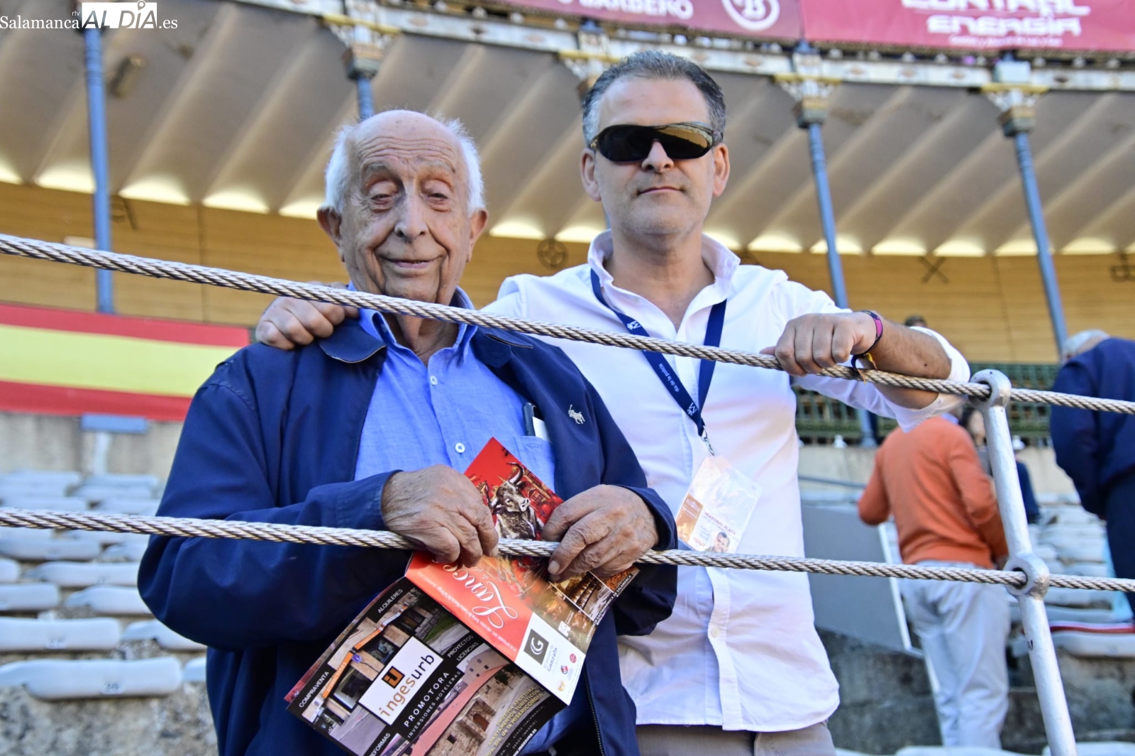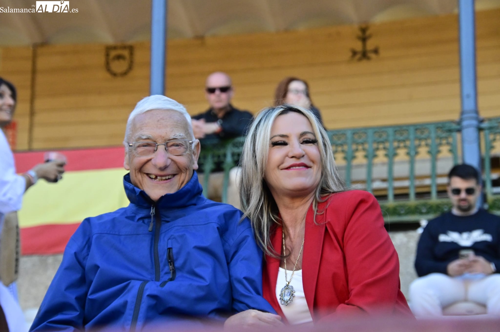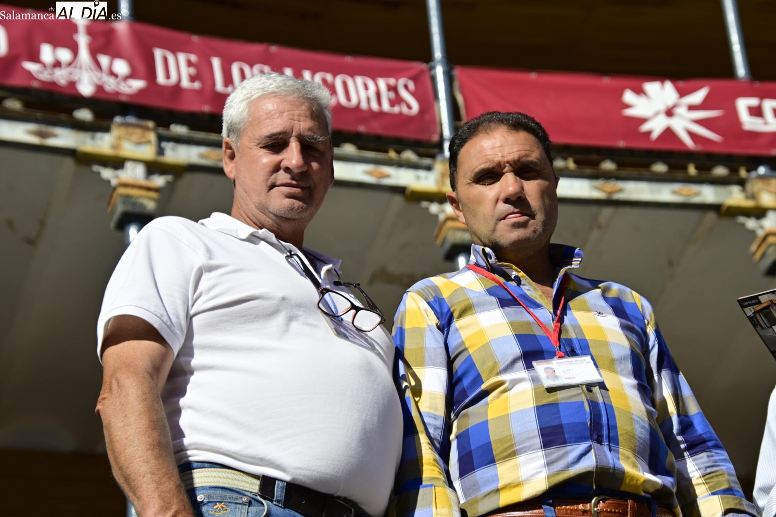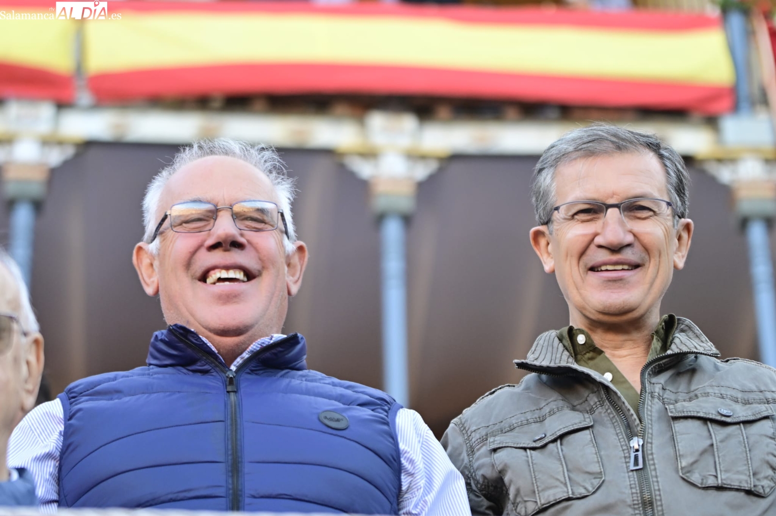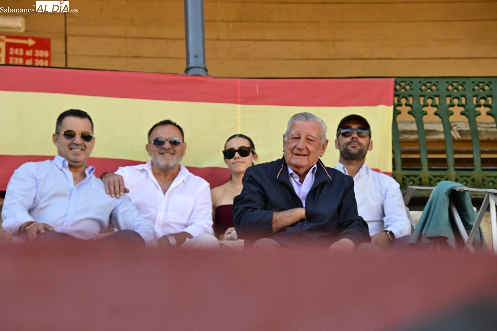 Y con esas en el ruedo, lo dicho, de nuevo apretones en el tendidos y caras recurrentes. Volvió a su localidad del 7 el alcalde, Carlos García Carbayo, como repitió el querido Silvestre Sánchez Sierra en el mismo tendido, también la familia ganadera Sánchez-Majeroni de Castillejo de Huebra o el ganadero de Montalvo Juan Ignacio Pérez Tabernero. En el 8 Capea padre, figurón del toreo y ganadero que hoy trajo uno de los toros protagonistas, ese 'Caracola' de Carmen Lorenzo.