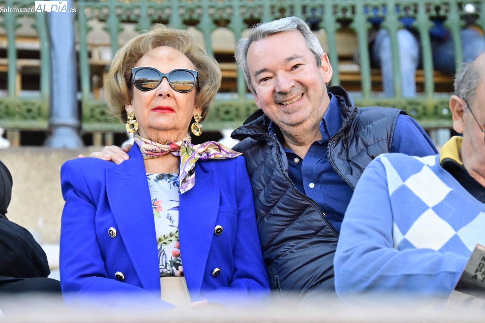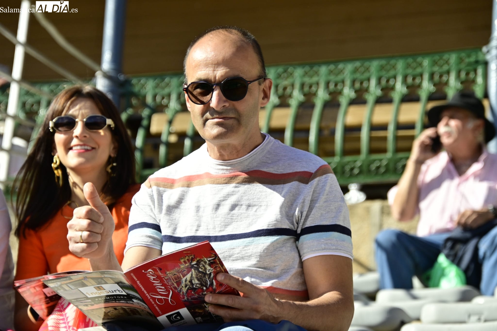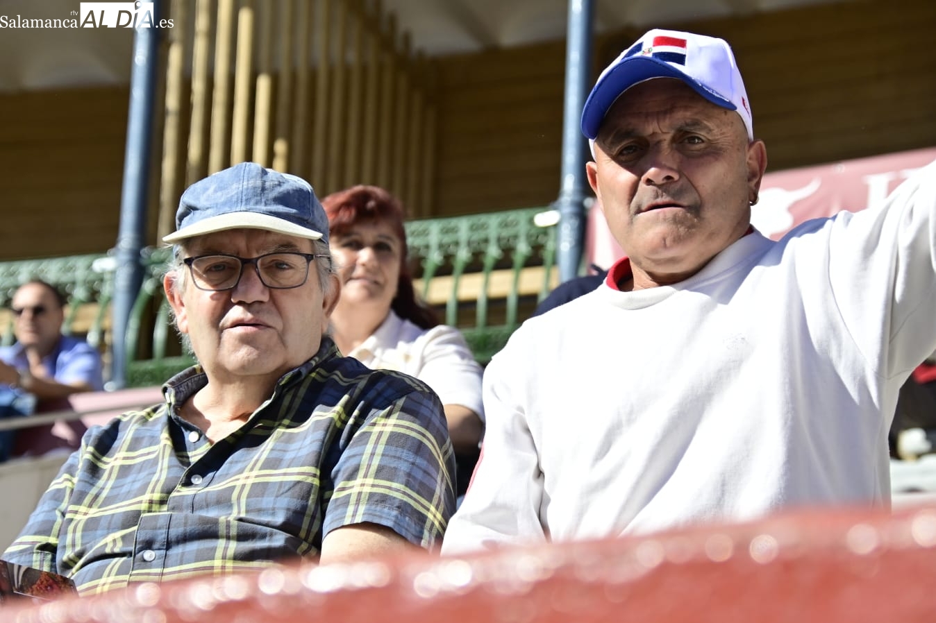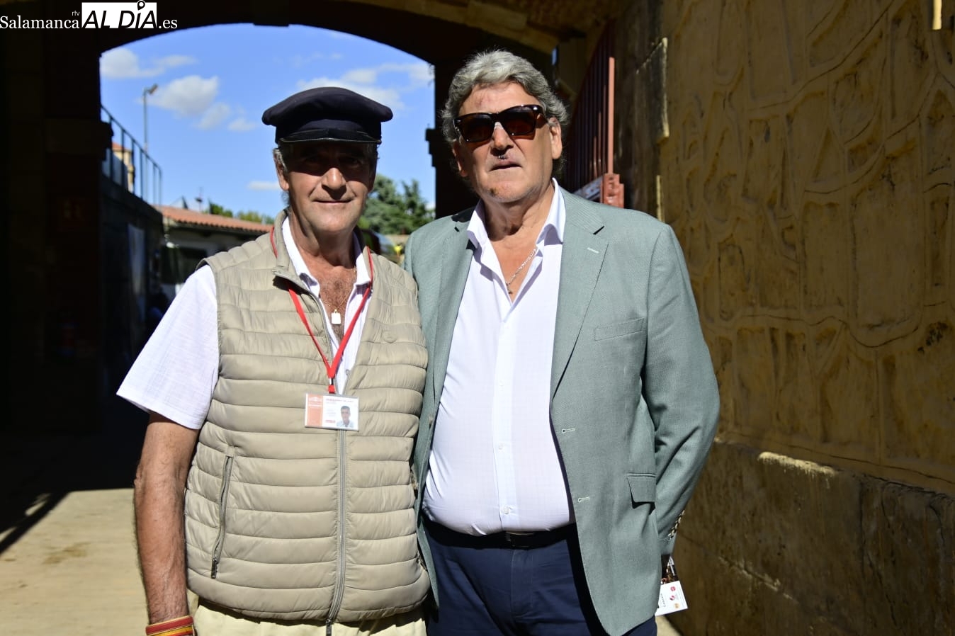 Y con esas en el ruedo, lo dicho, de nuevo apretones en el tendidos y caras recurrentes. Volvió a su localidad del 7 el alcalde, Carlos García Carbayo, como repitió el querido Silvestre Sánchez Sierra en el mismo tendido, también la familia ganadera Sánchez-Majeroni de Castillejo de Huebra o el ganadero de Montalvo Juan Ignacio Pérez Tabernero. En el 8 Capea padre, figurón del toreo y ganadero que hoy trajo uno de los toros protagonistas, ese 'Caracola' de Carmen Lorenzo.