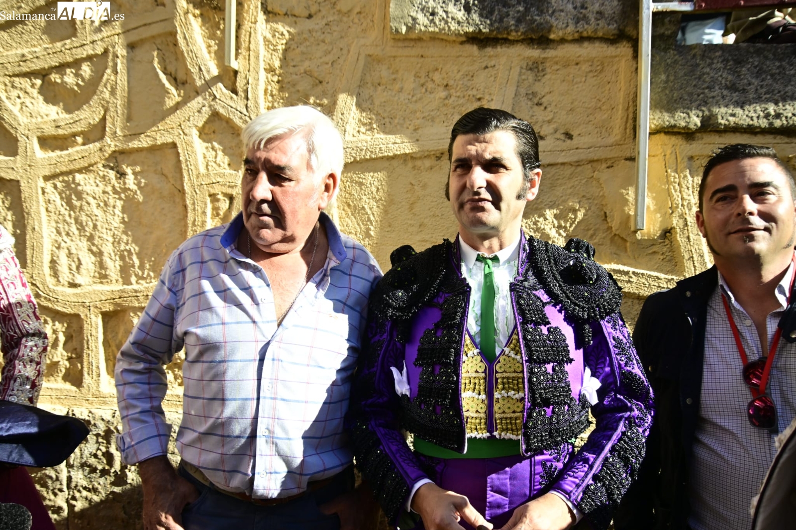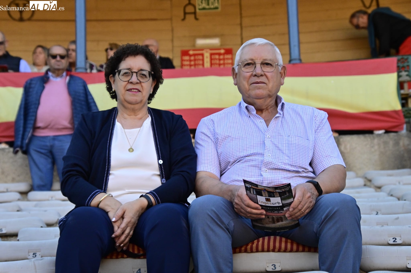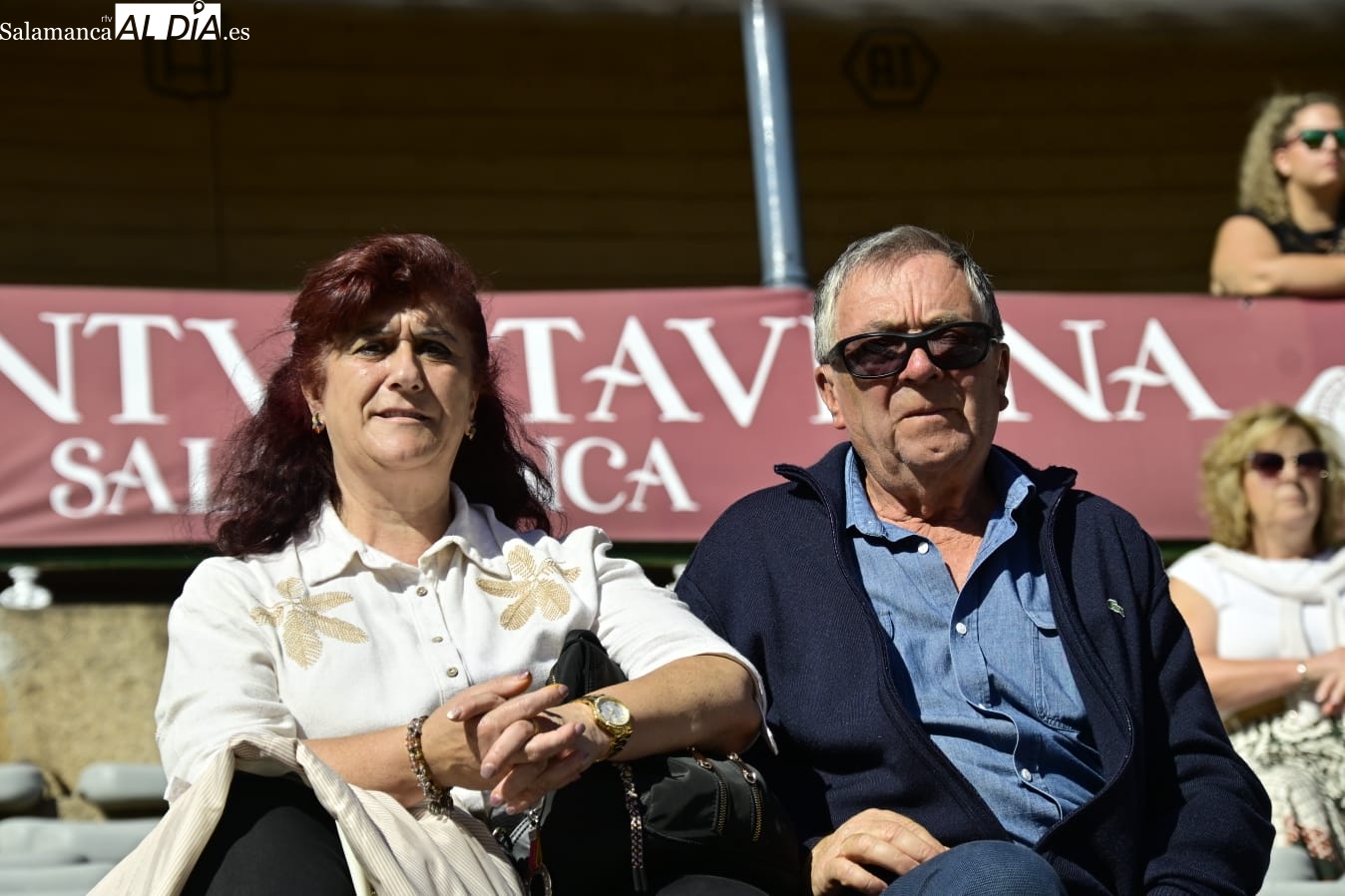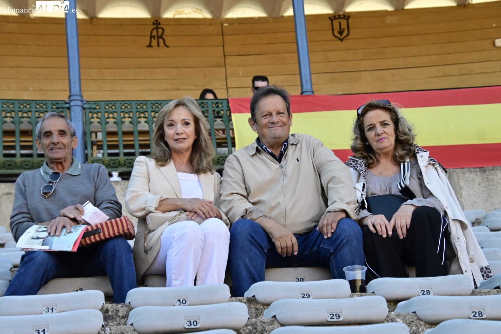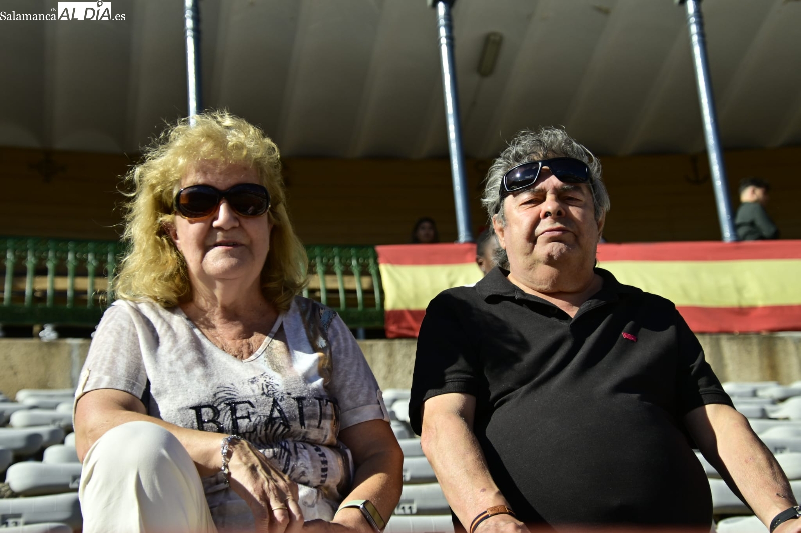 Y con esas en el ruedo, lo dicho, de nuevo apretones en el tendidos y caras recurrentes. Volvió a su localidad del 7 el alcalde, Carlos García Carbayo, como repitió el querido Silvestre Sánchez Sierra en el mismo tendido, también la familia ganadera Sánchez-Majeroni de Castillejo de Huebra o el ganadero de Montalvo Juan Ignacio Pérez Tabernero. En el 8 Capea padre, figurón del toreo y ganadero que hoy trajo uno de los toros protagonistas, ese 'Caracola' de Carmen Lorenzo.