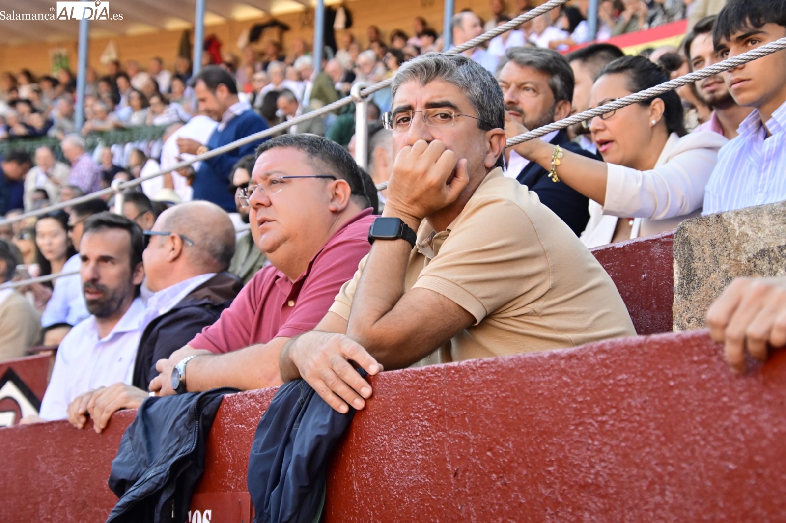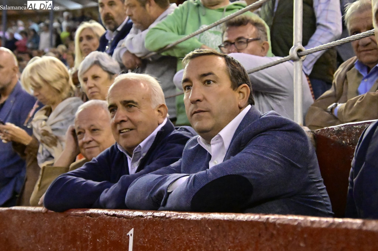 El callejón volvió a acoger al que fuera presidente del Real Madrid, Ramón Calderón, al empresario taurino Simón Casas que compartió la tarde con el periodista salmantino David Montero; el torero salmantino Ismael Martín que se ubicó entre Rui Bento y Jesús Benito, o José Ignacio Sánchez, director de la Escuela Taurina de Salamanca; además rostros de la política más allá de diputados y concejales como el Consejero de Cultura de la Junta de Castilla y León, Gonzalo Santoja, o Eloy Ruiz, delegado territorial de la Junta de Castilla y León en Salamanca.