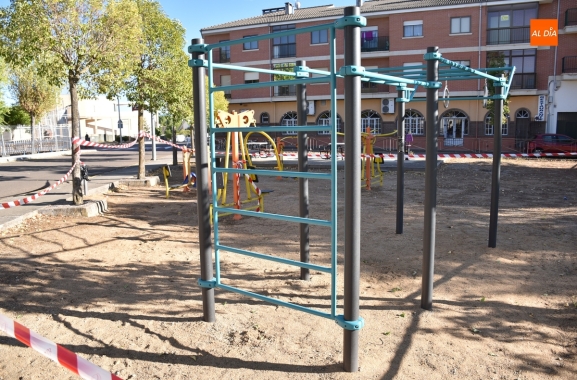 Por otro lado, en la zona de ocio y esparcimiento existente al otro lado de la Avenida de Los Cañitos, donde hay mesas y aparatos biosaludables, ya ha sido situada la novedosa instalación de calistenia que también forma parte de la reforma. Por el momento, estos espacios todavía están delimitados por cintas y vallas, ya que la actuación en conjunto no ha concluido (queda reformar la pista de patinaje).