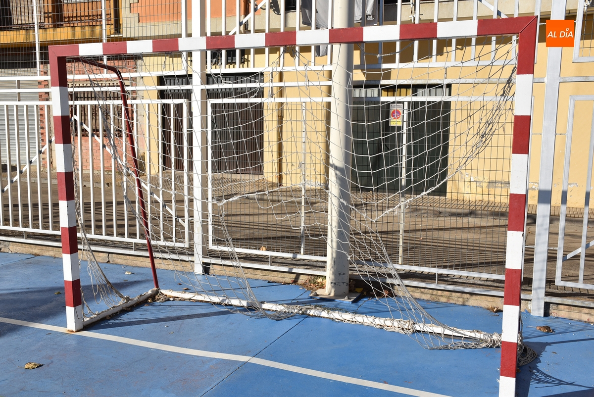 Vecinos del barrio de Las Canteras se han dirigido a Ciudad Rodrigo Al Día para denunciar el mal estado de las redes de la pista deportiva del barrio (cuyo parque infantil anexo está en pleno proceso de reforma).