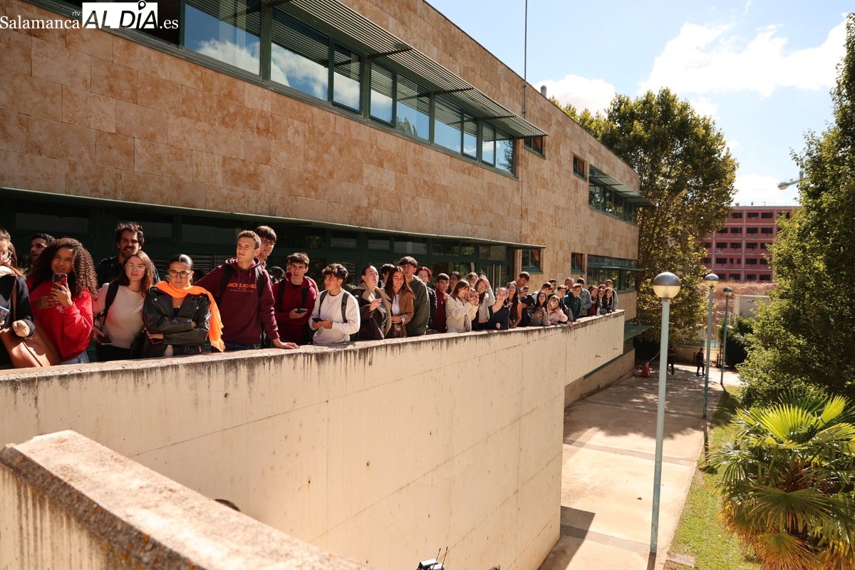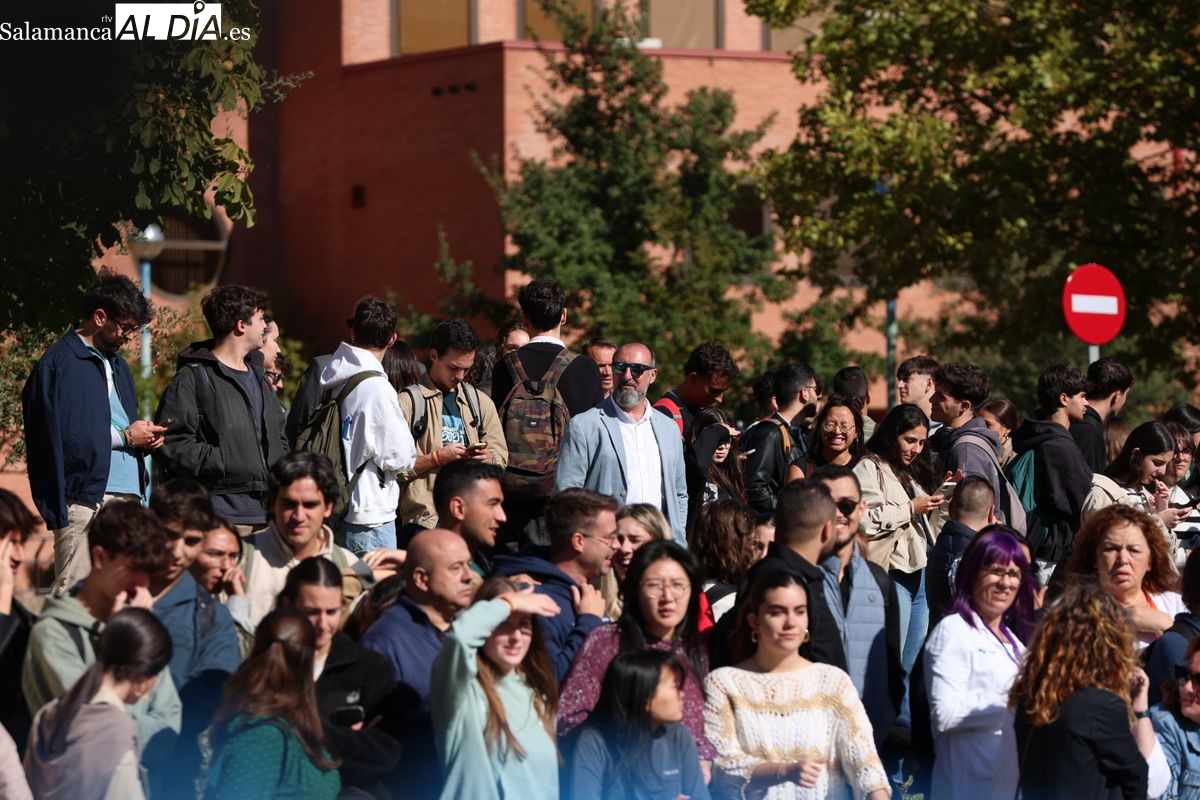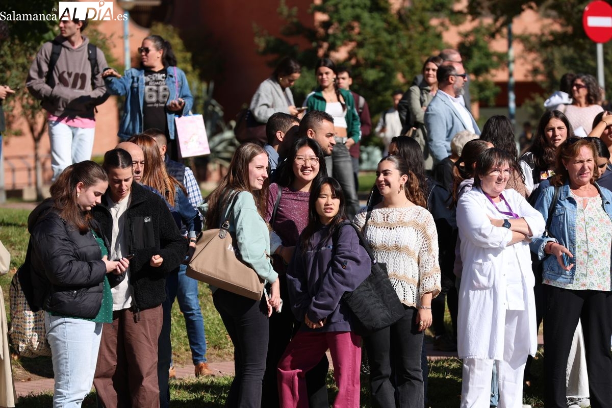 La ciudad de Salamanca ha recibido este martes, 23 de septiembre, la visita de Su Majestad la reina Letizia. Durante su presencia en la capital, concretamente en el campus Miguel de Unamuno, la monarca ha sido acogida con notables muestras de afecto por parte de los salmantinos congregados, quienes la han aclamado con gritos de "¡Viva la Reina!" y "¡Viva España!".