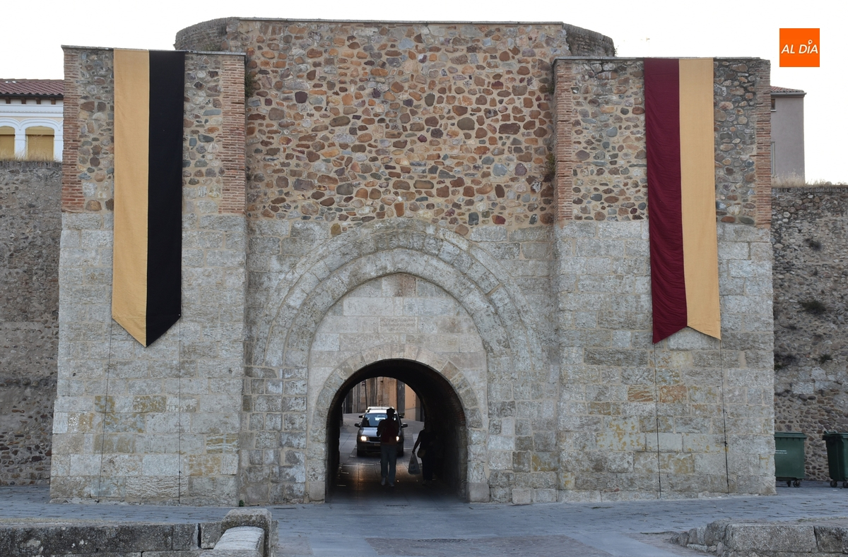 Ciudad Rodrigo ha comenzado el amplio proceso de engalanamiento para la celebración del viernes 3 al domingo 5 de octubre de la 8ª Feria Medieval promovida por la Asociación Cultural Rodericus. En este sentido, como primeros pasos de la ornamentación, de las puertas del Conde y del Sol ya cuelgan los pendones de grandes dimensiones de las dos familias en torno a cuya historia gira la Feria, los Garcilópez de Chaves y los Pacheco.
