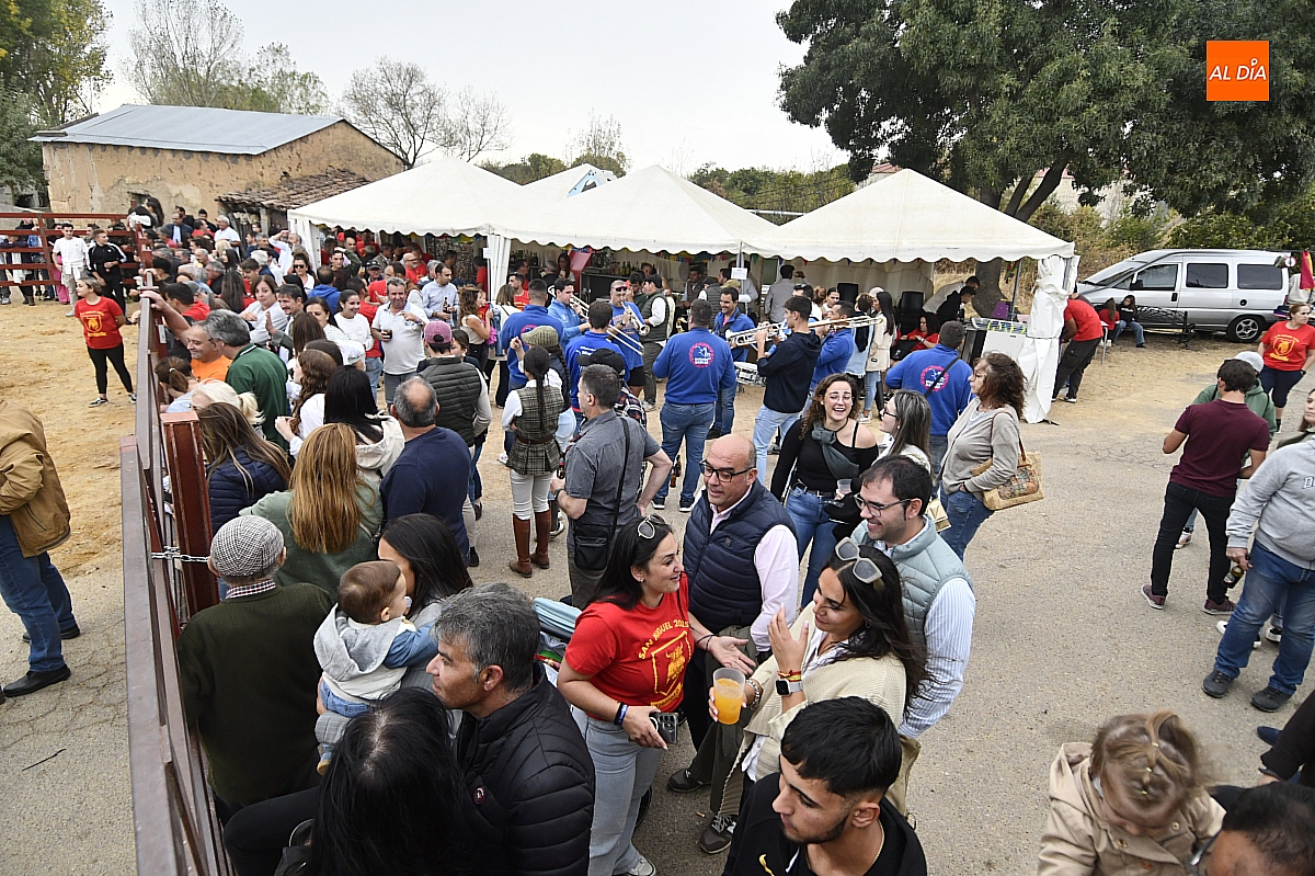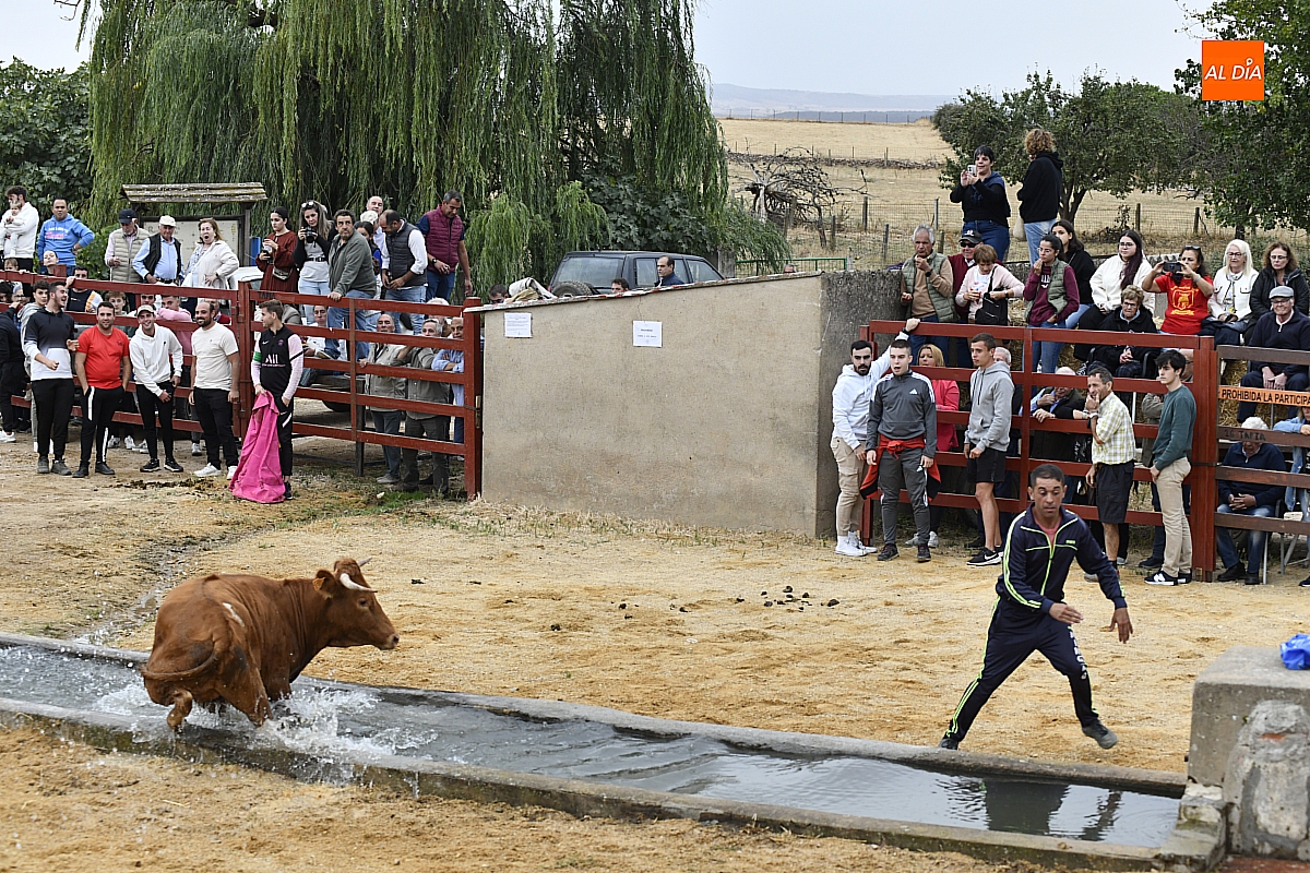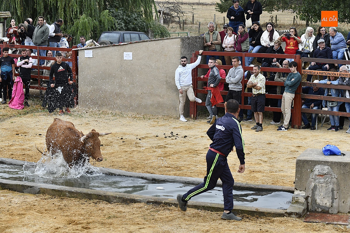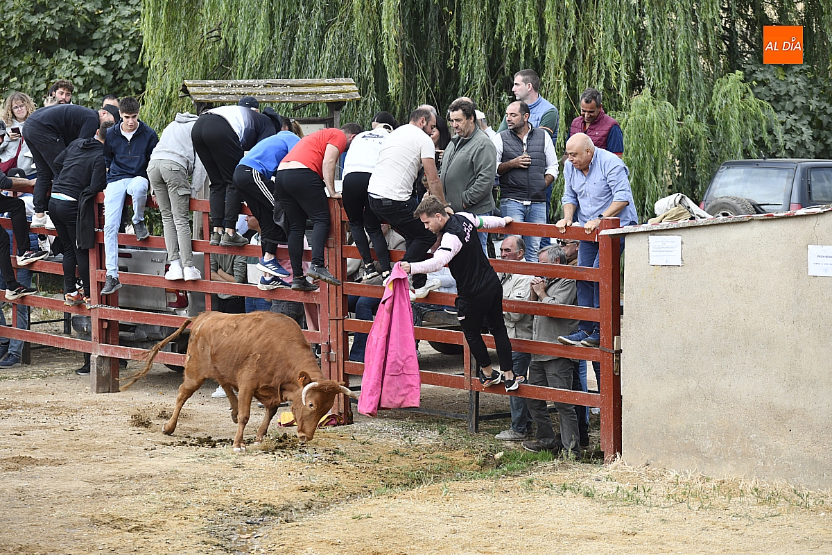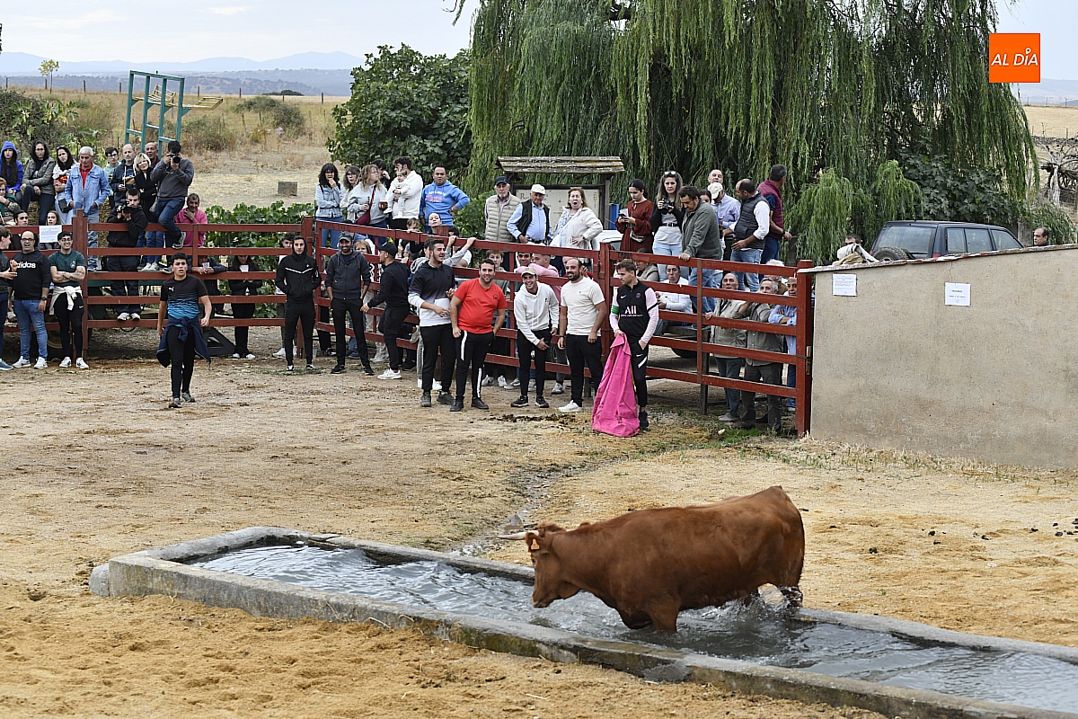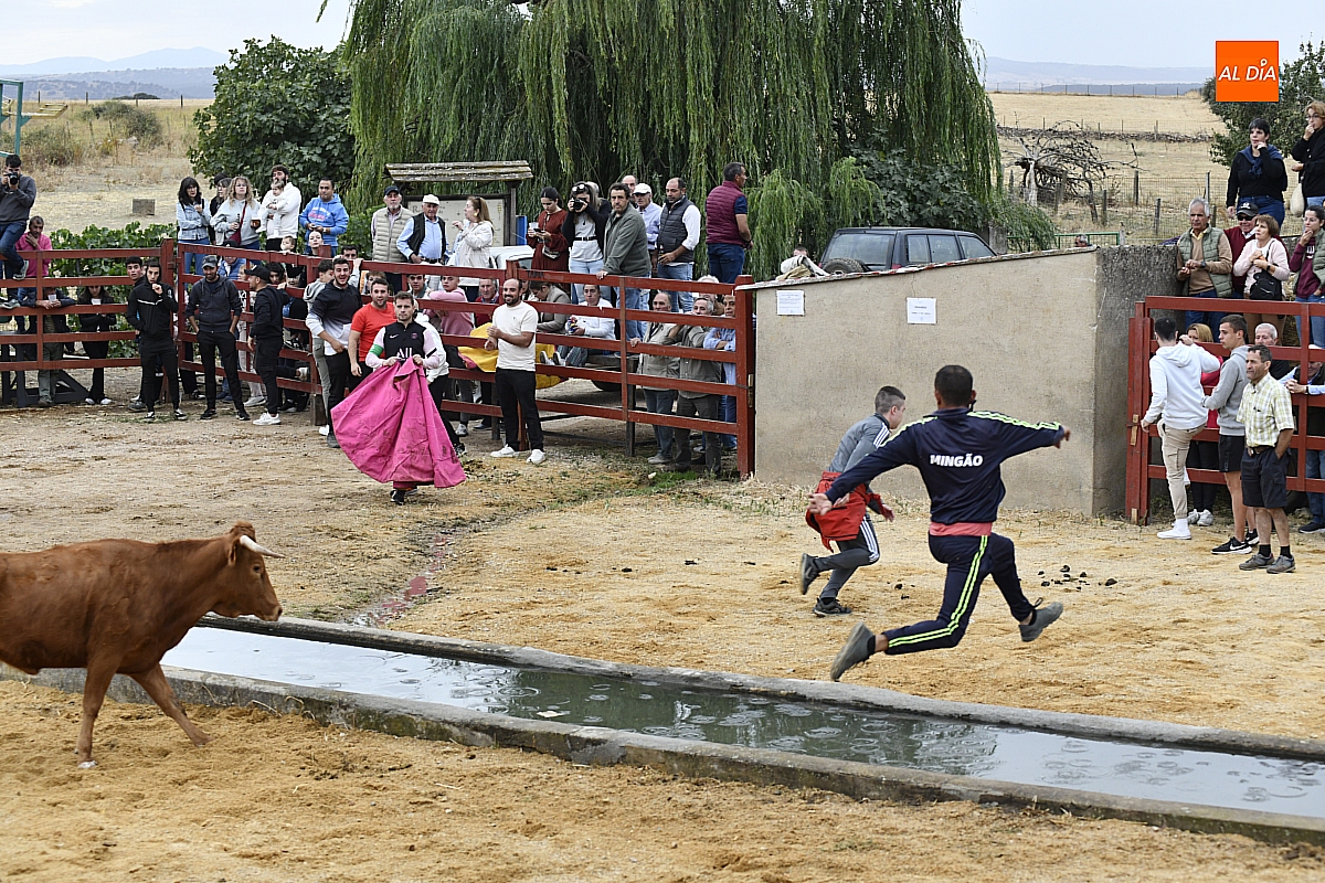 Por la tarde, llegó el turno de la capea con vaquillas, uno de los momentos más esperados. El cielo, caprichoso, descargó lluvia sobre la arena, obligando a los asistentes a refugiarse durante un instante. Pero el aguacero no pudo con el ánimo festivo: la música de la charanga “Manliao” y la hospitalidad de la carpa junto al bar convirtieron la tormenta en una pausa entrañable, más cercana al reencuentro que al desánimo. Entre risas, cánticos y el barro noble de la socampana mirobrigense, la fiesta recuperó su pulso.