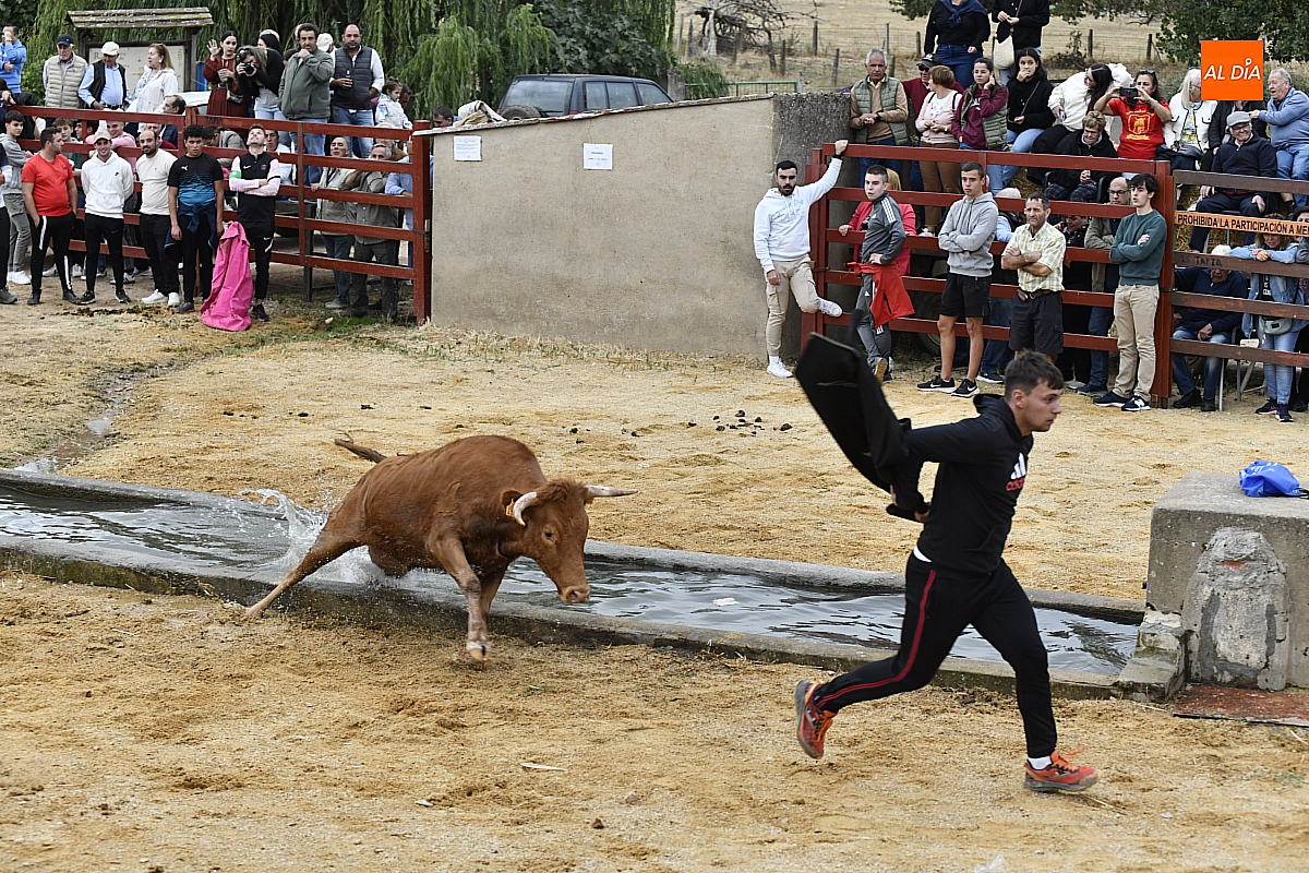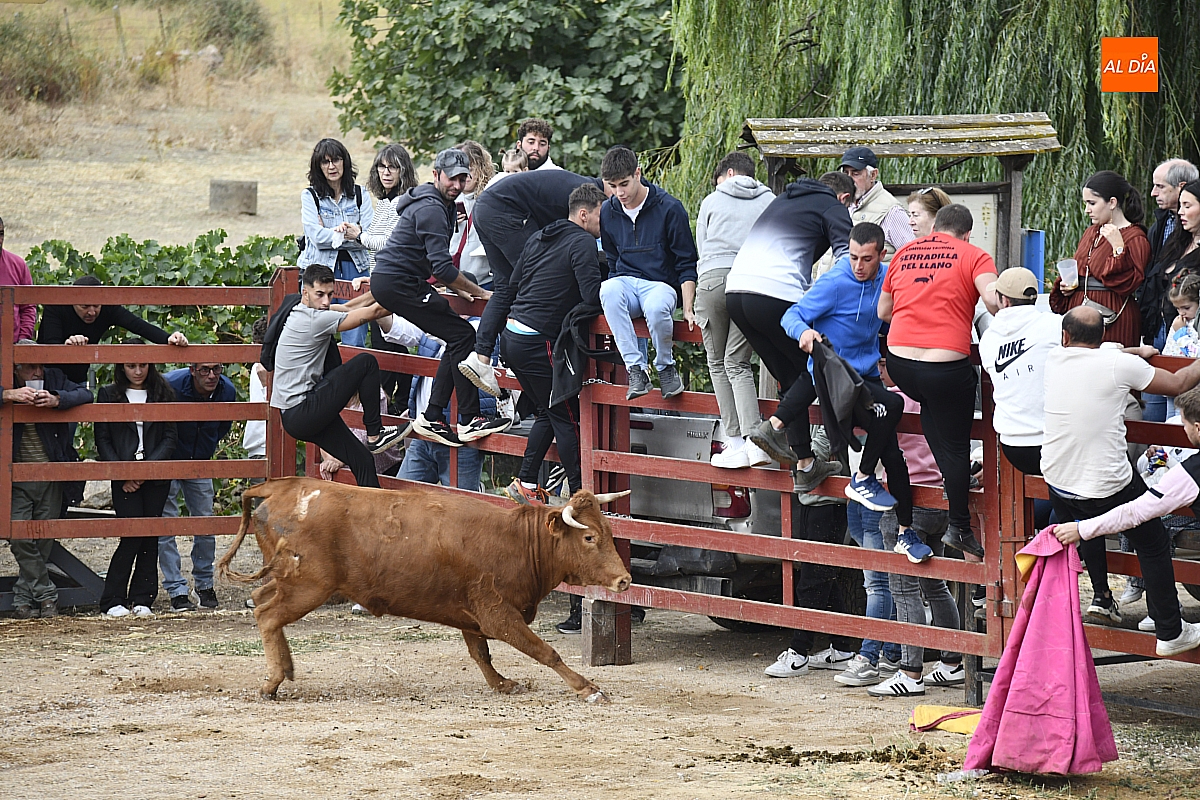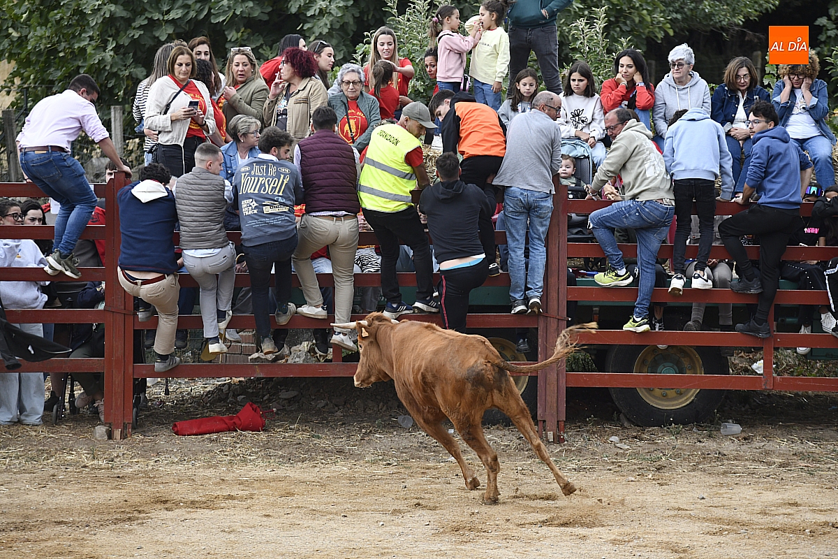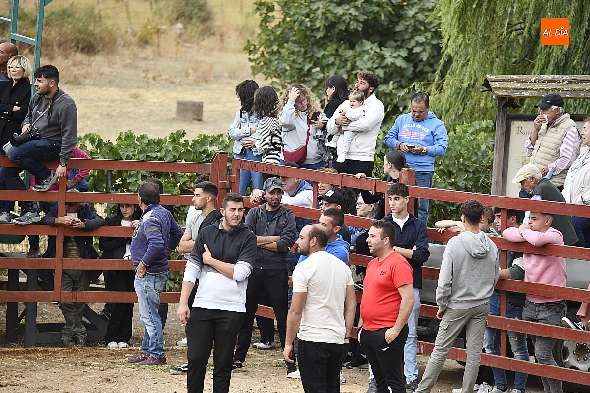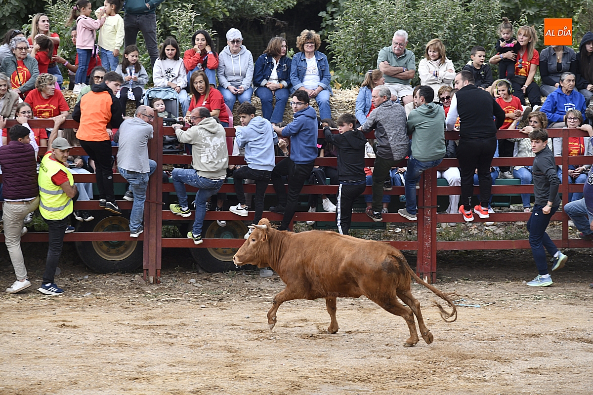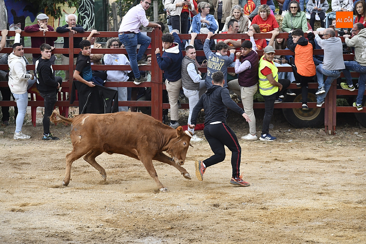 Por la tarde, llegó el turno de la capea con vaquillas, uno de los momentos más esperados. El cielo, caprichoso, descargó lluvia sobre la arena, obligando a los asistentes a refugiarse durante un instante. Pero el aguacero no pudo con el ánimo festivo: la música de la charanga “Manliao” y la hospitalidad de la carpa junto al bar convirtieron la tormenta en una pausa entrañable, más cercana al reencuentro que al desánimo. Entre risas, cánticos y el barro noble de la socampana mirobrigense, la fiesta recuperó su pulso.