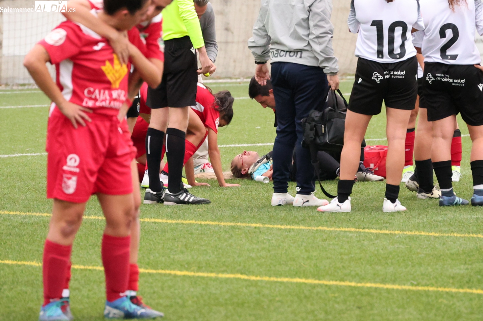 Por otro lado, el encuentro ha terminado con victoria del equipo salmantino, la primera del curso en la nueva categoría, por 3-1 frente al filial del Burgos.