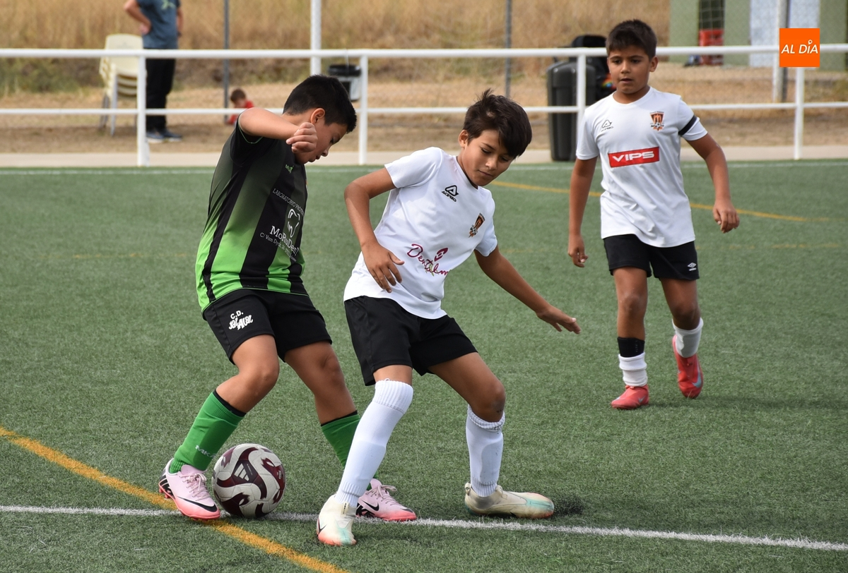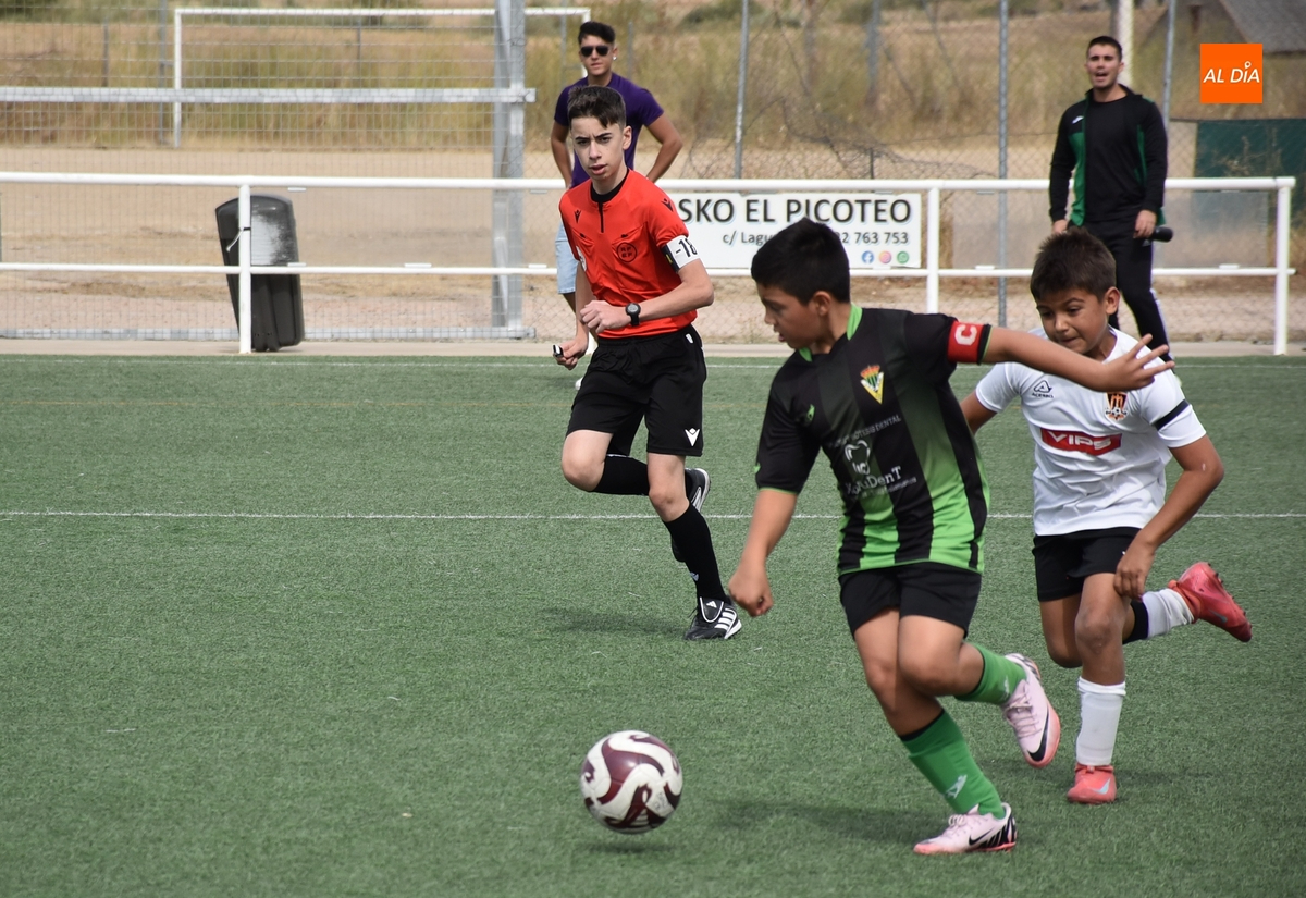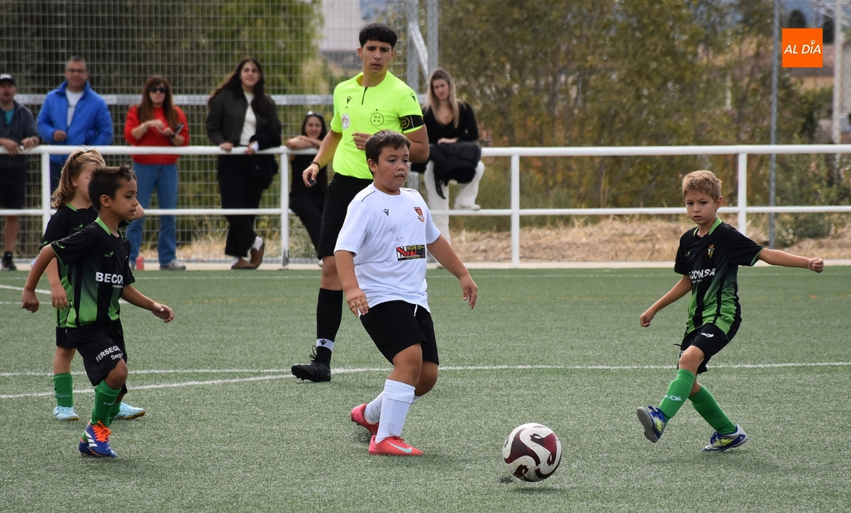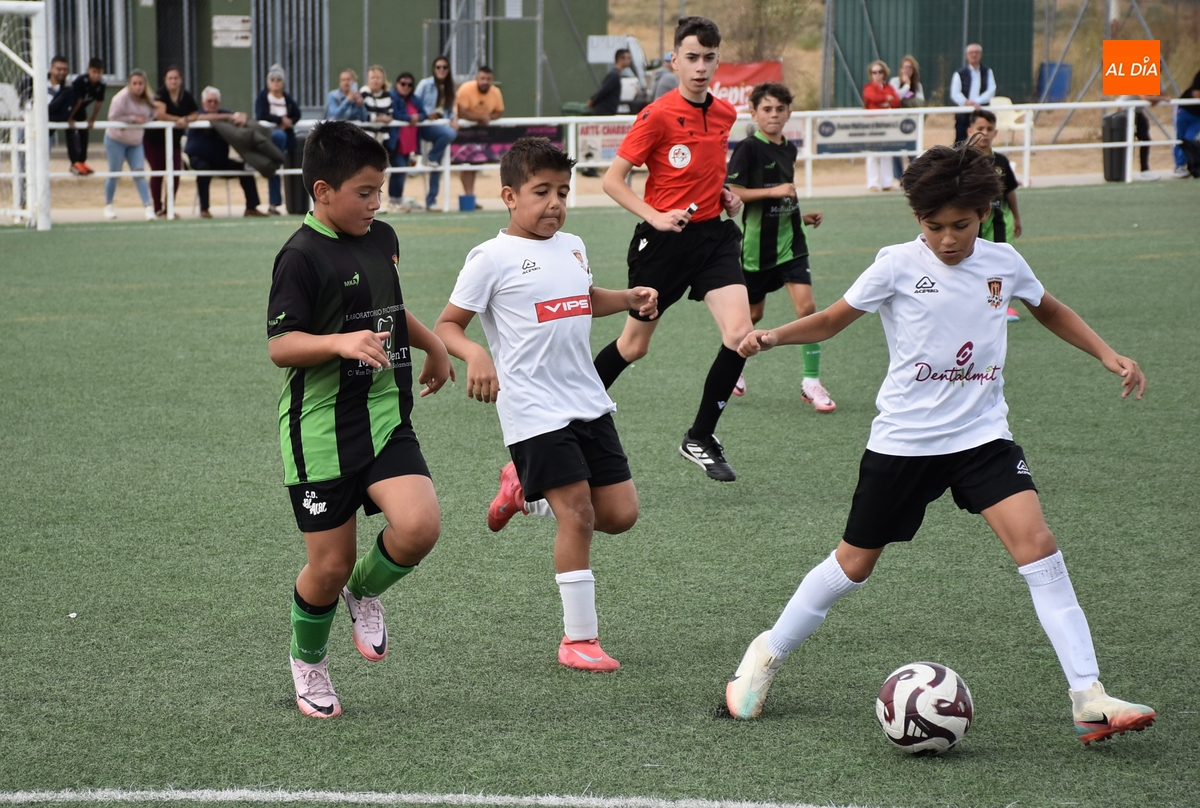 Por otro lado, el Benjamín C del Ciudad Rodrigo se hizo con la victoria ante el Jai Alai-Bolívar C, en otro partido también muy igualado, con muchas idas y venidas, en el que a lo largo de la primera parte tuvo un par de grandes ocasiones el Ciudad Rodrigo (una se perdió cerca del palo y la otra la repelió el portero) hasta tener premio justo en los compases finales, en el 23’, con un remate por alto de Julián.