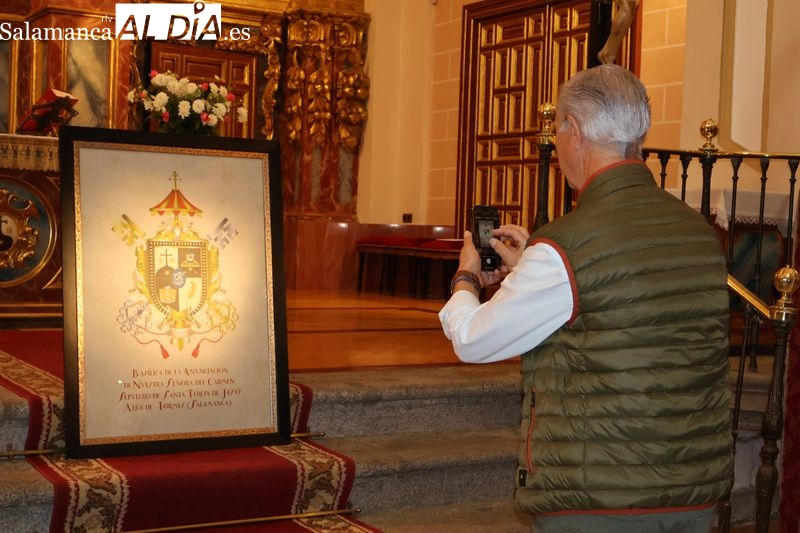 La Basílica de la Anunciación de Nuestra Señora del Carmen, el templo que custodia el sepulcro de Santa Teresa de Jesús en Alba de Tormes, cuenta desde hoy con nuevo escudo heráldico. La obra, una profunda síntesis de historia, fe y arte, ha sido realizada por el artista José Ángel Nava, quien en su presentación la definió no como una mera pieza heráldica, sino como "un símbolo vivo, un compendio espiritual que proclama la triple identidad de este lugar sagrado: mariana, carmelitana y teresiana".