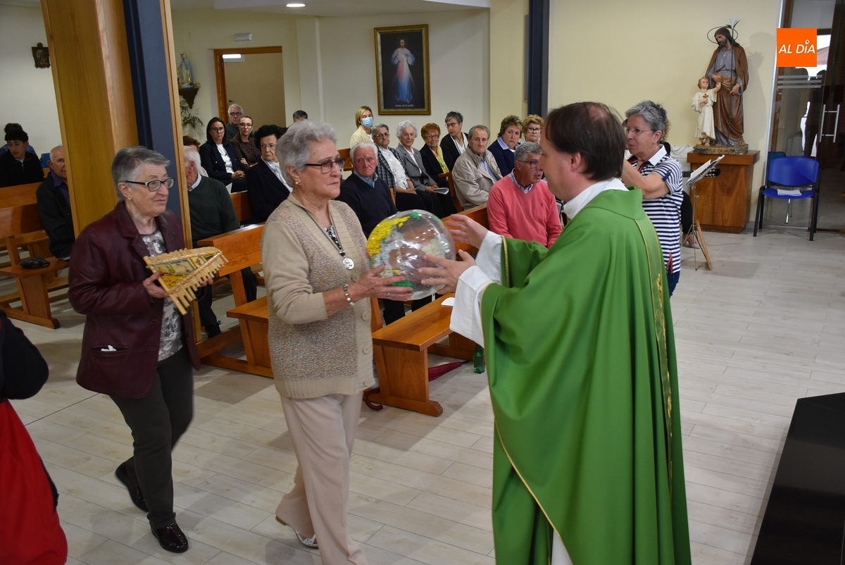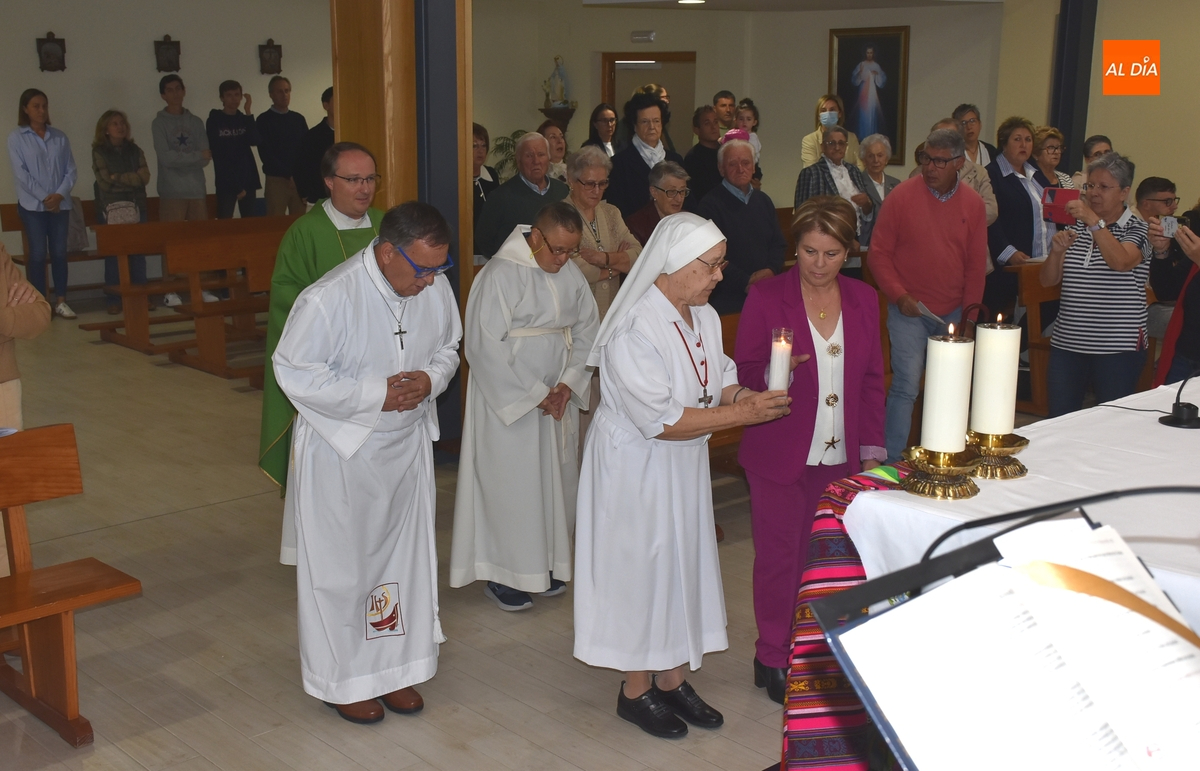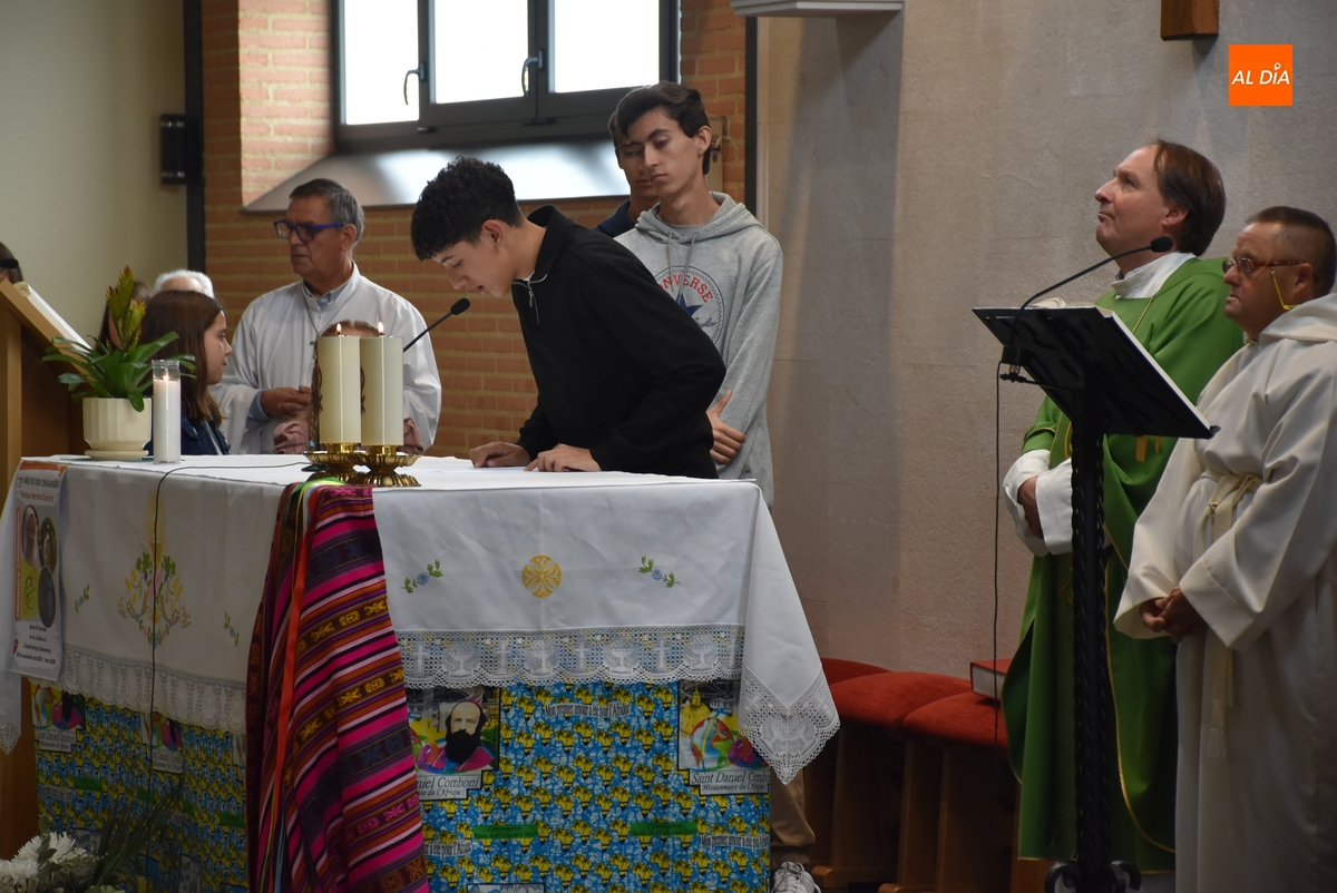 Tras el rezo del Credo, Teresa Herrero procedió a renovar desde el altar sus votos de castidad, pobreza y obediencia, antes de que varios jóvenes y niños diesen lectura a las peticiones. Como último componente especial de la misa en torno a los 60 años como comboniana de Teresa Herrero, en el momento de las ofrendas se presentó, además del pan y el vino, un planeta y un instrumento típico de Ecuador.