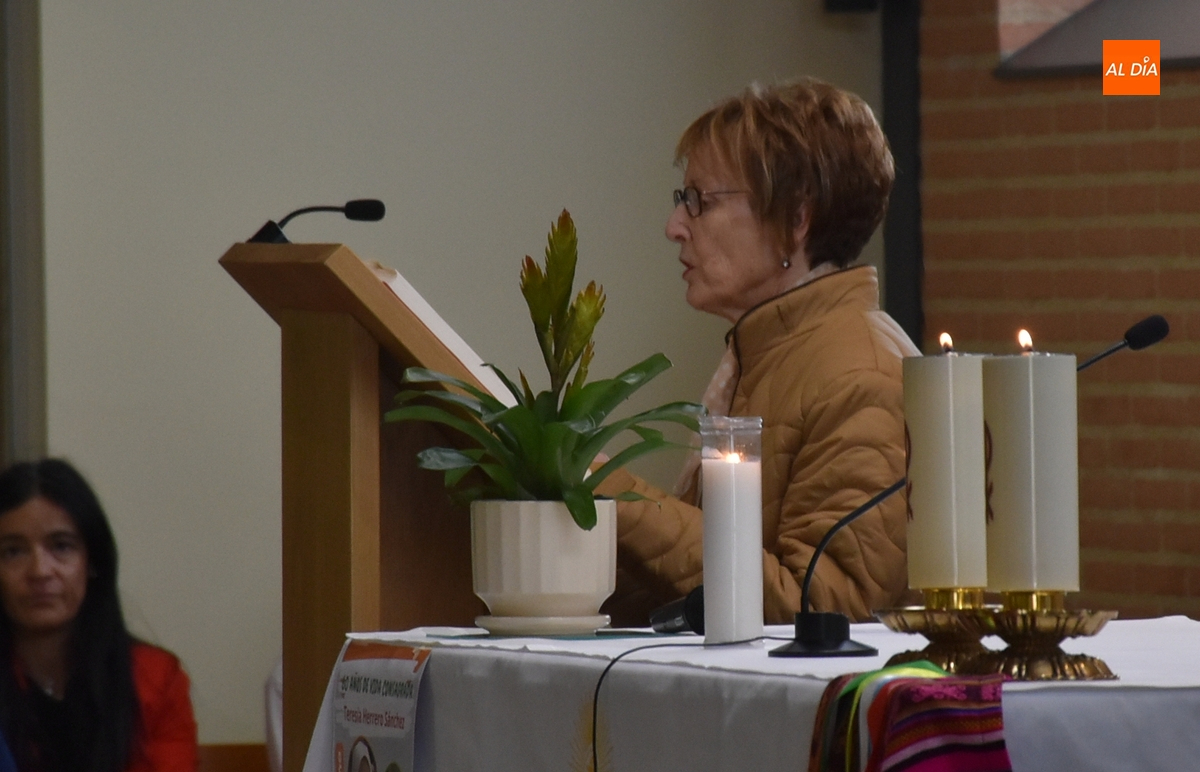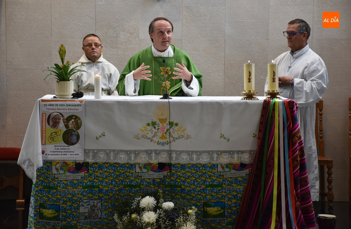 La comunidad parroquial de El Salvador de Ciudad Rodrigo fue testigo en su segunda misa dominical de la celebración de sus 60 años como misionera comboniana, y de la renovación de sus votos, de Teresa Herrero Sánchez, religiosa natural de Martiago que ha pasado buena parte de su vida en Ecuador, residiendo en la actualidad en Madrid junto a otras hermanas combonianas.
