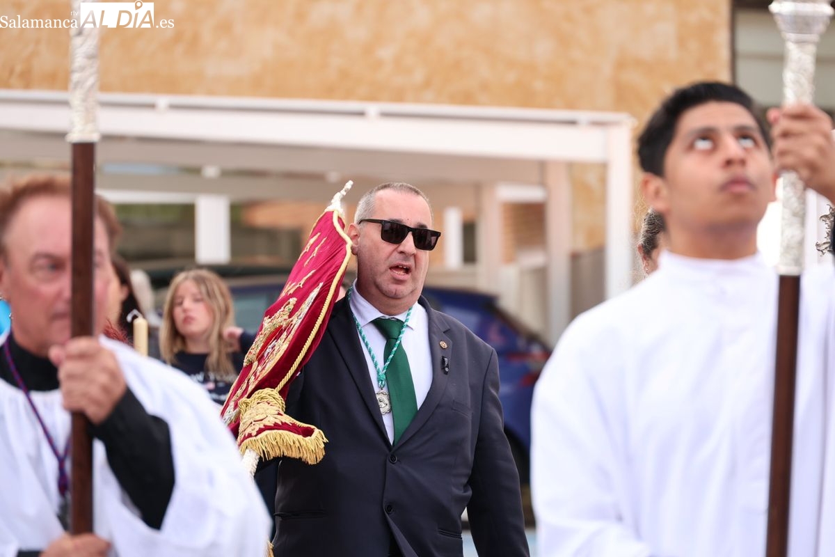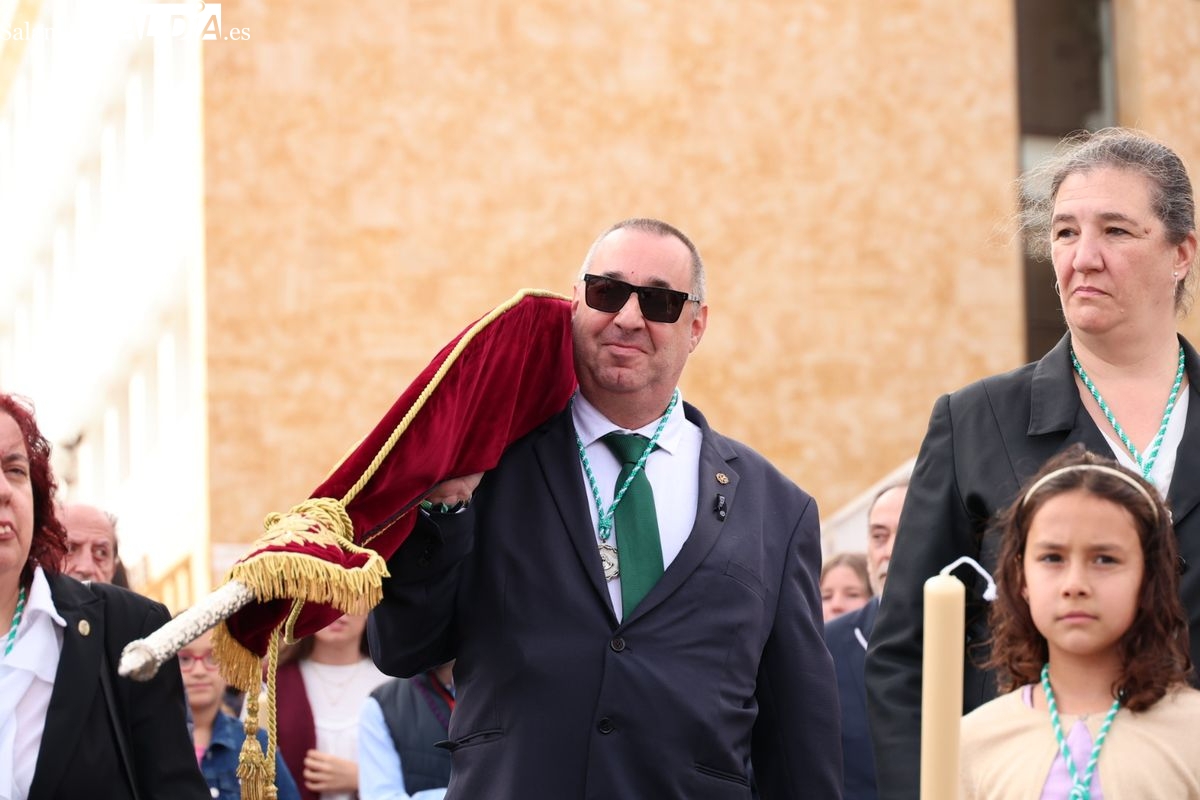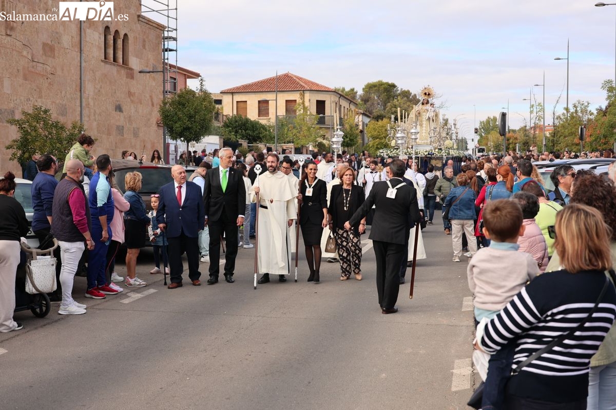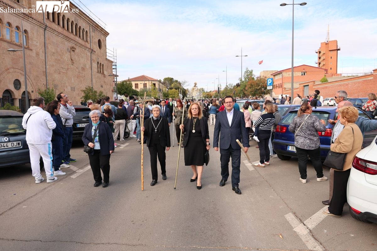 Junto a los hermanos de la cofradía y numerosos devotos, en el cortejo han participado también miembros de la Esclavitud Mercedaria y representantes de las asociaciones vecinales y de mayores AVESAL y La Salmantina, mostrando la gran vinculación de la Virgen con esta zona de la ciudad.