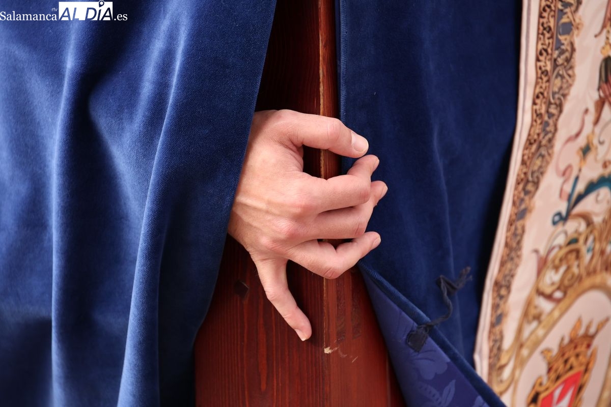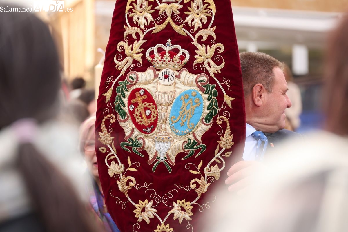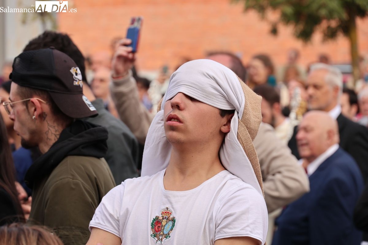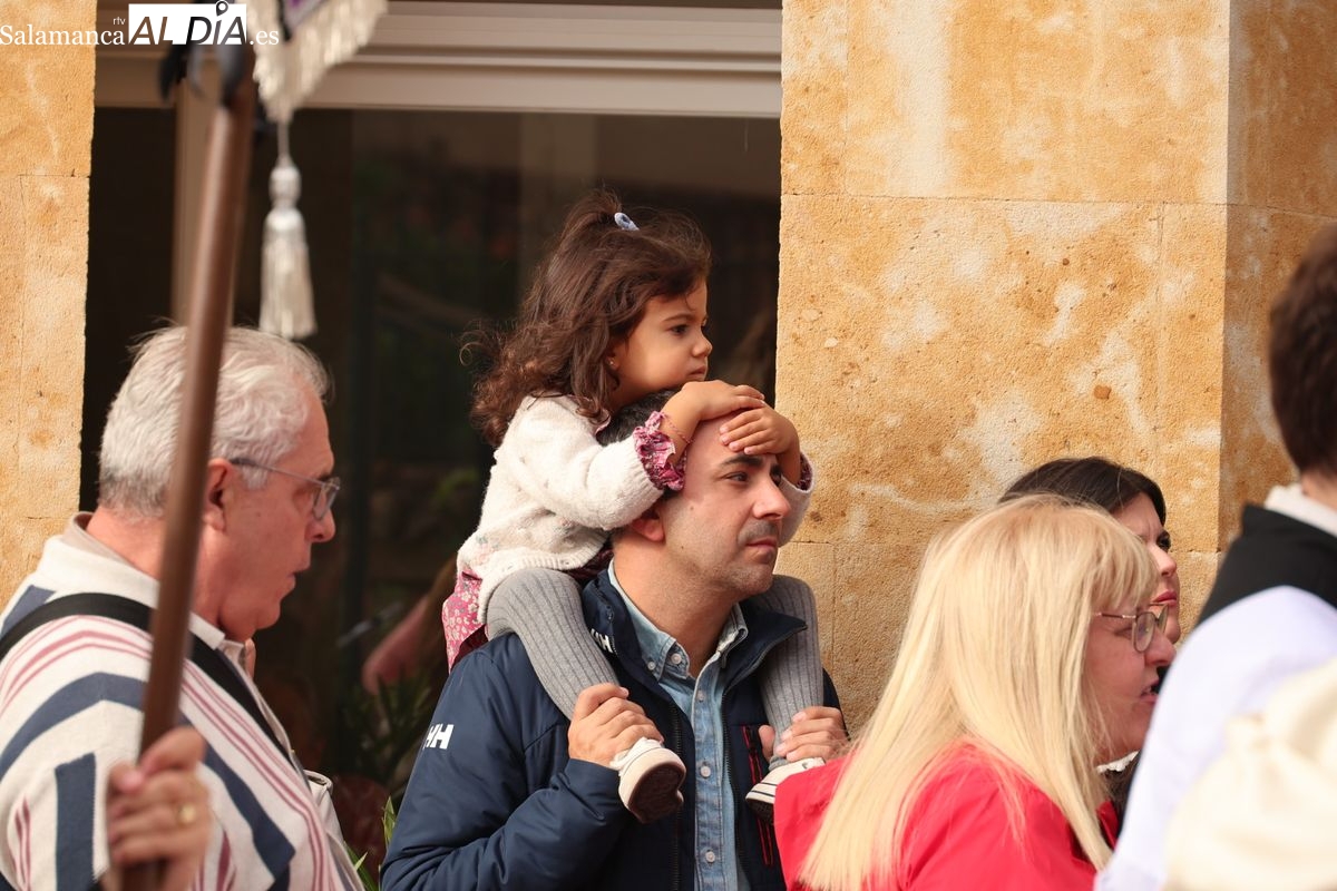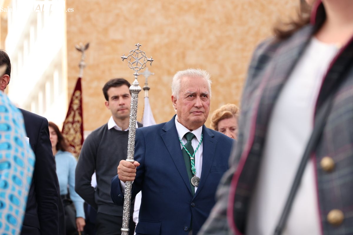 Por segundo año consecutivo, la cofradía asume la organización de este acto de fe gracias a un convenio de colaboración con la comunidad de Padres Mercedarios de Salamanca. La imagen ha sido portada a hombros por los hermanos costaleros de la Hermandad Sacramental, Mercedaria y de Penitencia de Nuestro Padre Jesús Despojado de sus Vestiduras y María Santísima de la Caridad y del Consuelo.