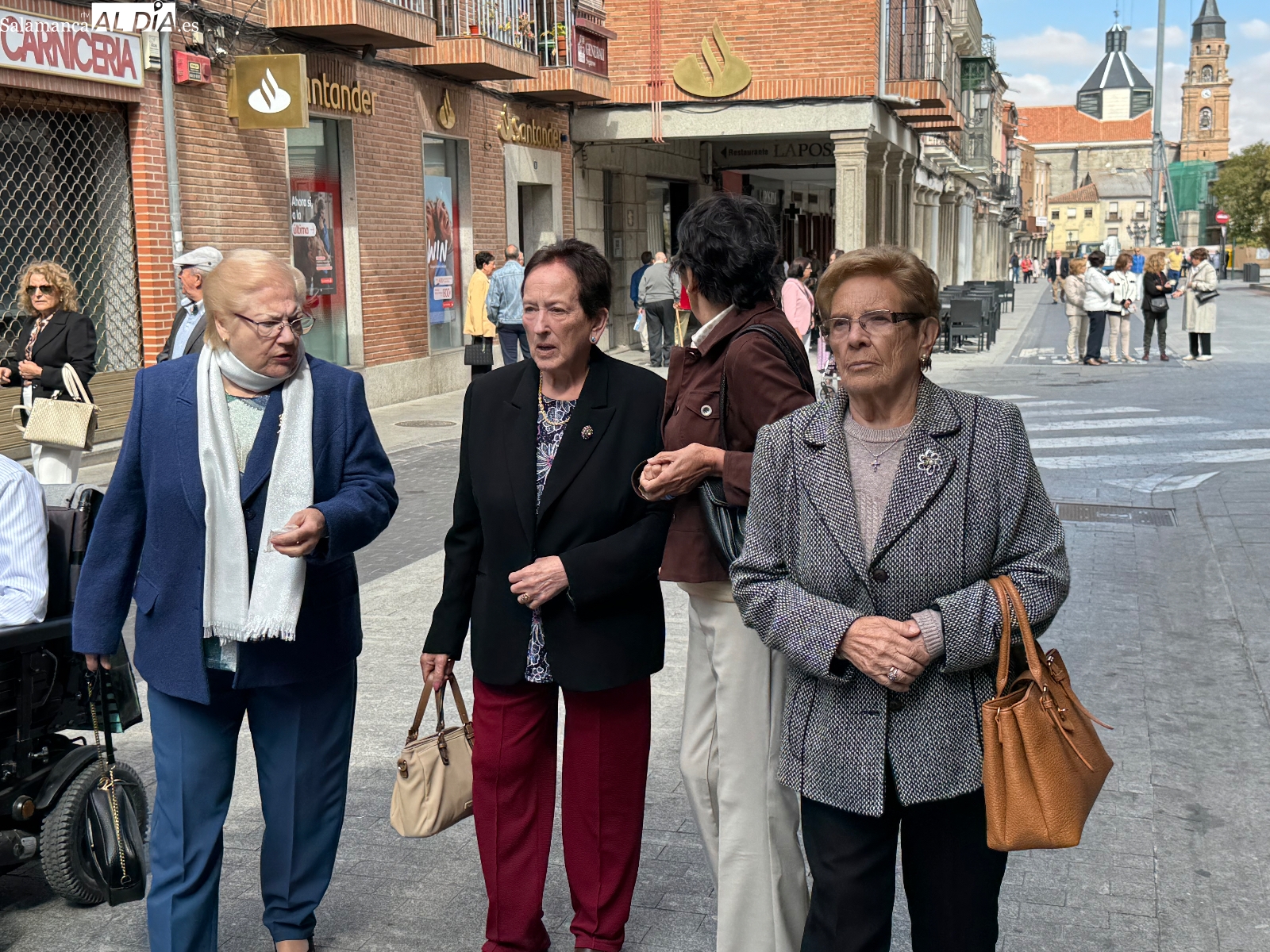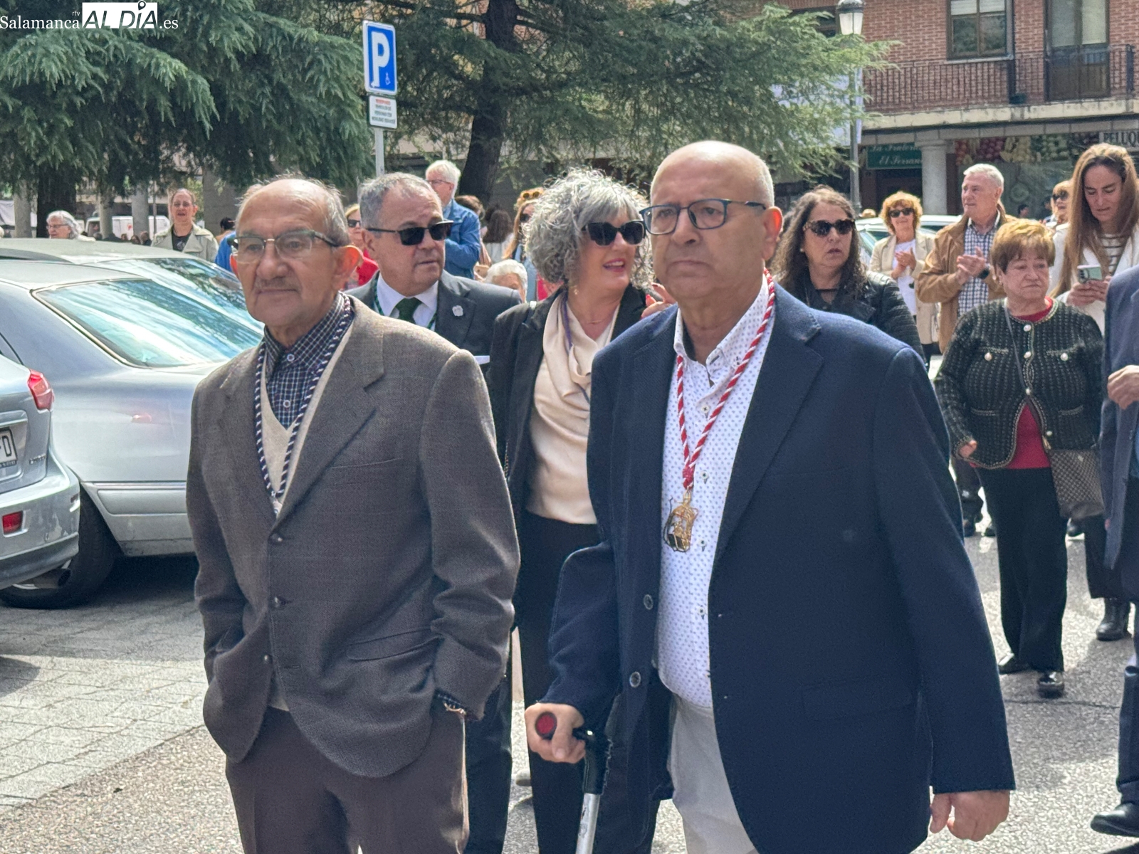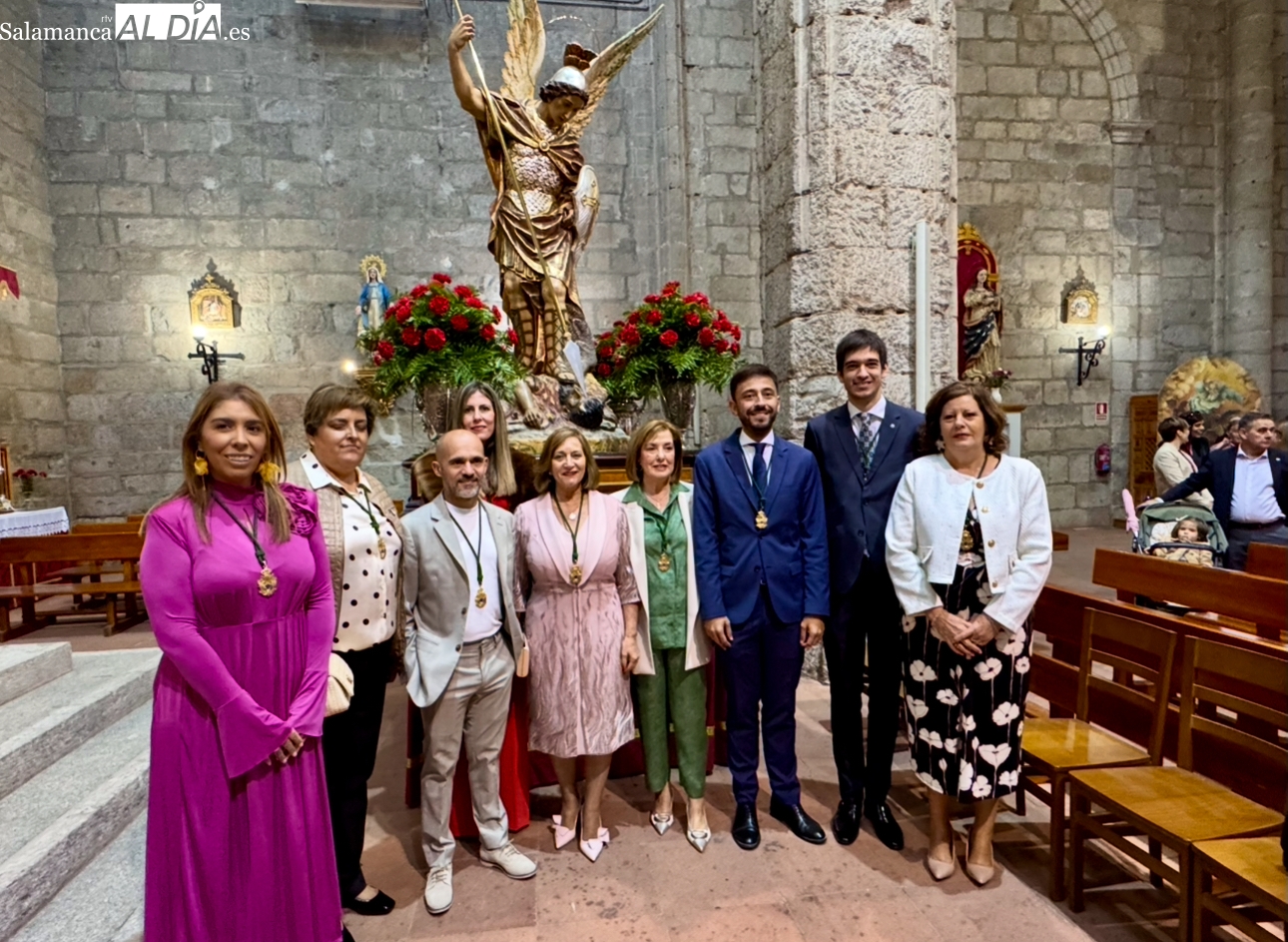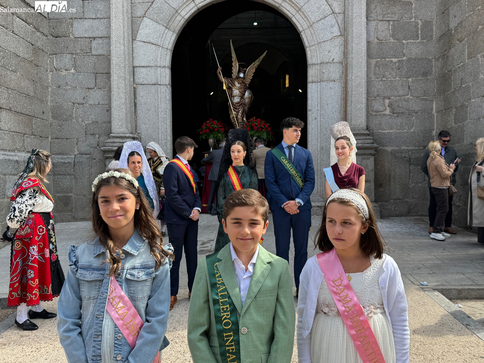 Ya de regreso al templo, los asistentes aprovecharon para tomarse las tradicionales fotografías de familia junto a la histórica talla del Arcángel, en un gesto que se ha convertido en costumbre entre cofrades y vecinos.