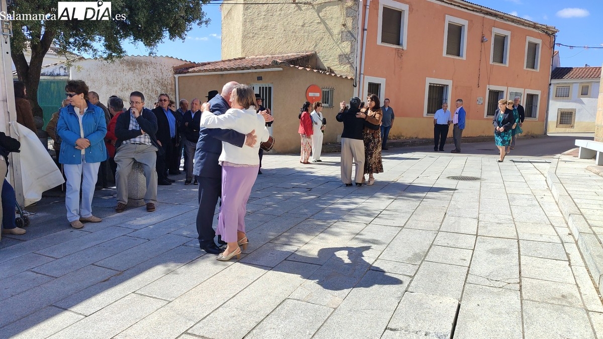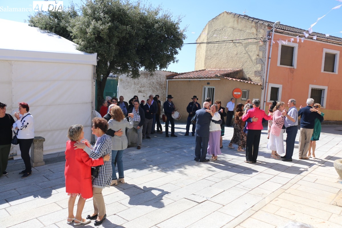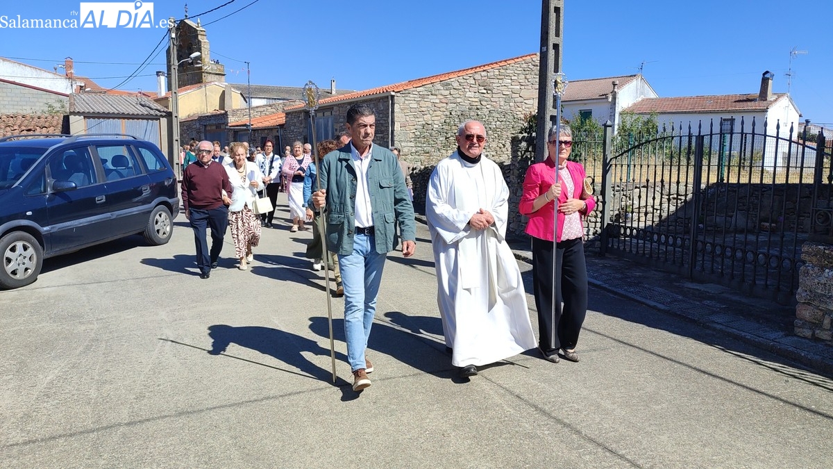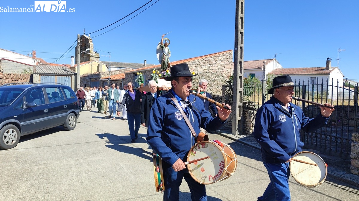 El alcalde, Alejandro Benito, portaba la vara de mayordomo durante la procesión del Santo por las calles, que estuvo acompañado por los sones de la gaita y el tamboril de dos tamborileros llegados desde Fermoselle. Tras el recorrido, los vecinos disfrutaron de un animado baile tradicional frente a las puertas de la iglesia.