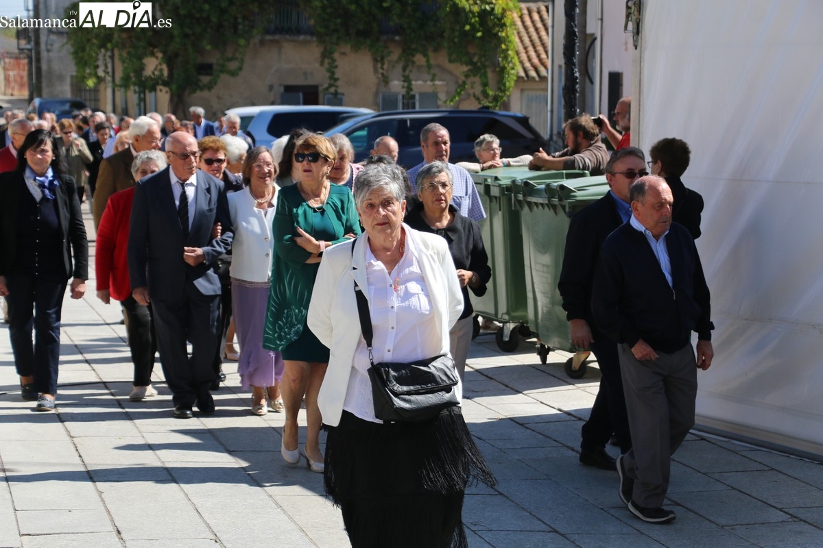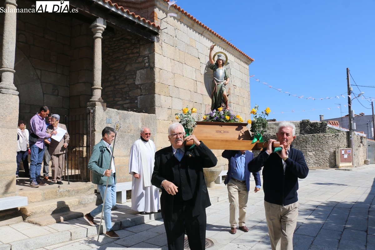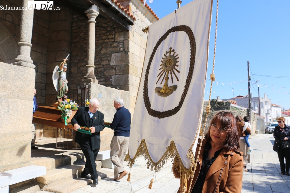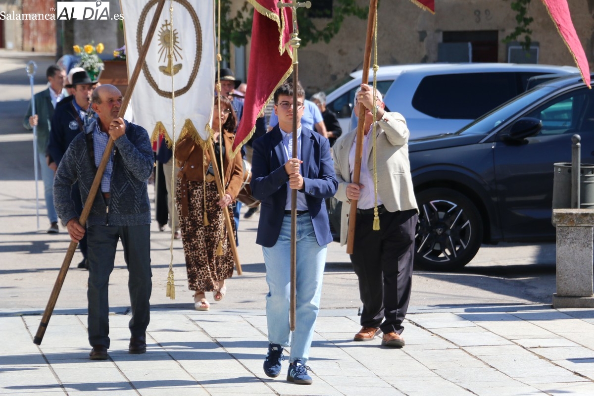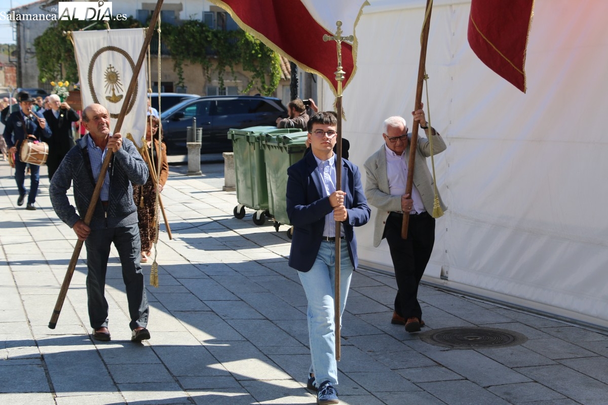 Los actos centrales de la mañana comenzaron a las 13:00 horas con la solemne misa oficiada por el párroco José Ramón Mateos. En esta edición, la mayordomía ha recaído en el propio Ayuntamiento de Almendra, un hecho simbólico que se ha visualizado durante la procesión posterior por las calles del pueblo.