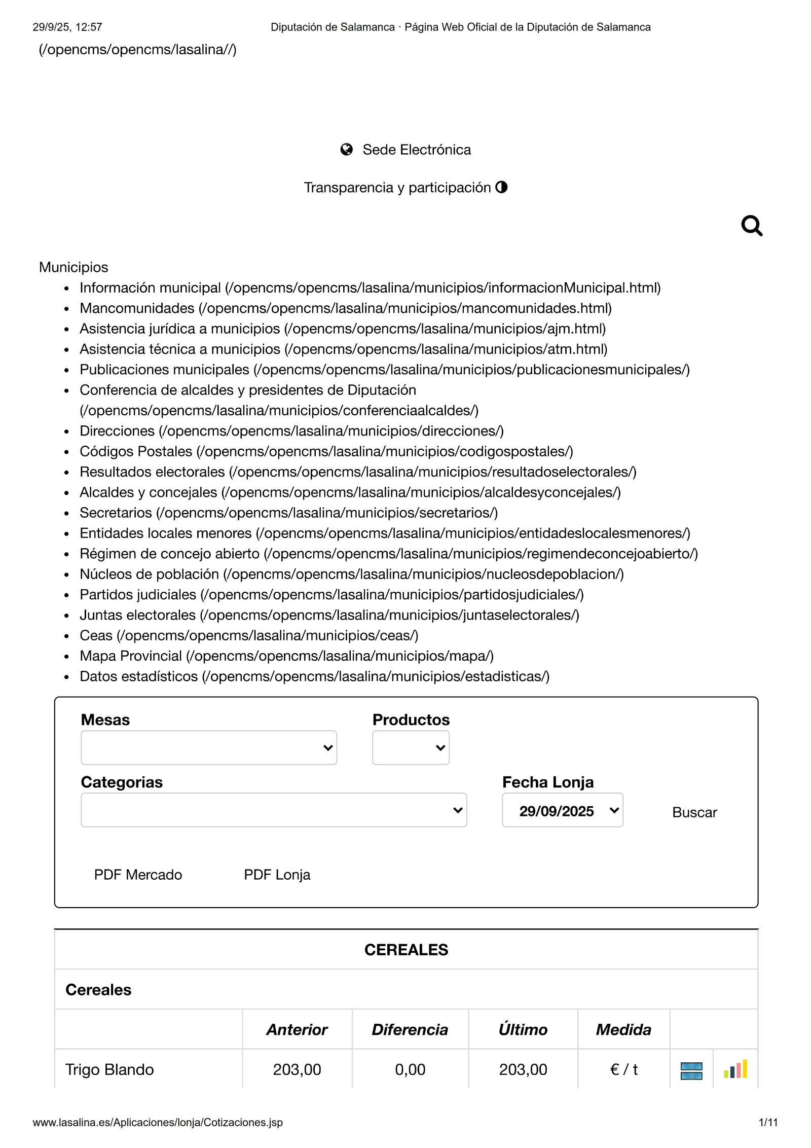 Una semana más el cereal se mantiene estancado mientras el vacuno sigue imparable con una nueva subida de precios en el mercado de ganado y lonja de salamanca, sesión la de este último lunes de septiembre en la que también suben los corderos y el girasol, mientras el porcino blanco sigue con precios a la baja.