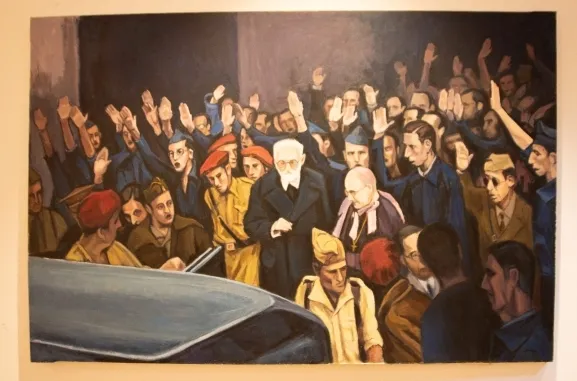 La pieza central de la jornada ha sido la presentación del cuadro “El rector es expulsado de la Universidad”, obra del pintor vasco Ignacio Ipiña. El lienzo ha sido donado por la viuda del artista, la escritora y poeta Blanca Sarasua, enriqueciendo así el patrimonio del museo dedicado al exrector.