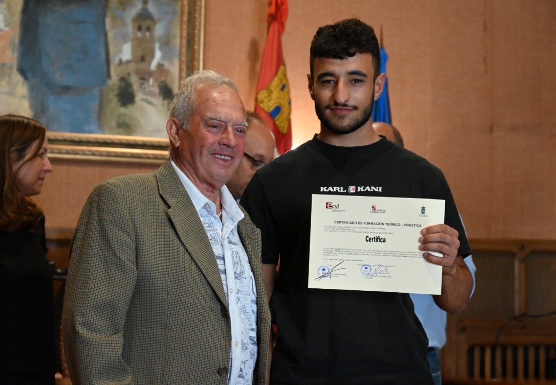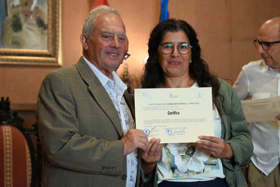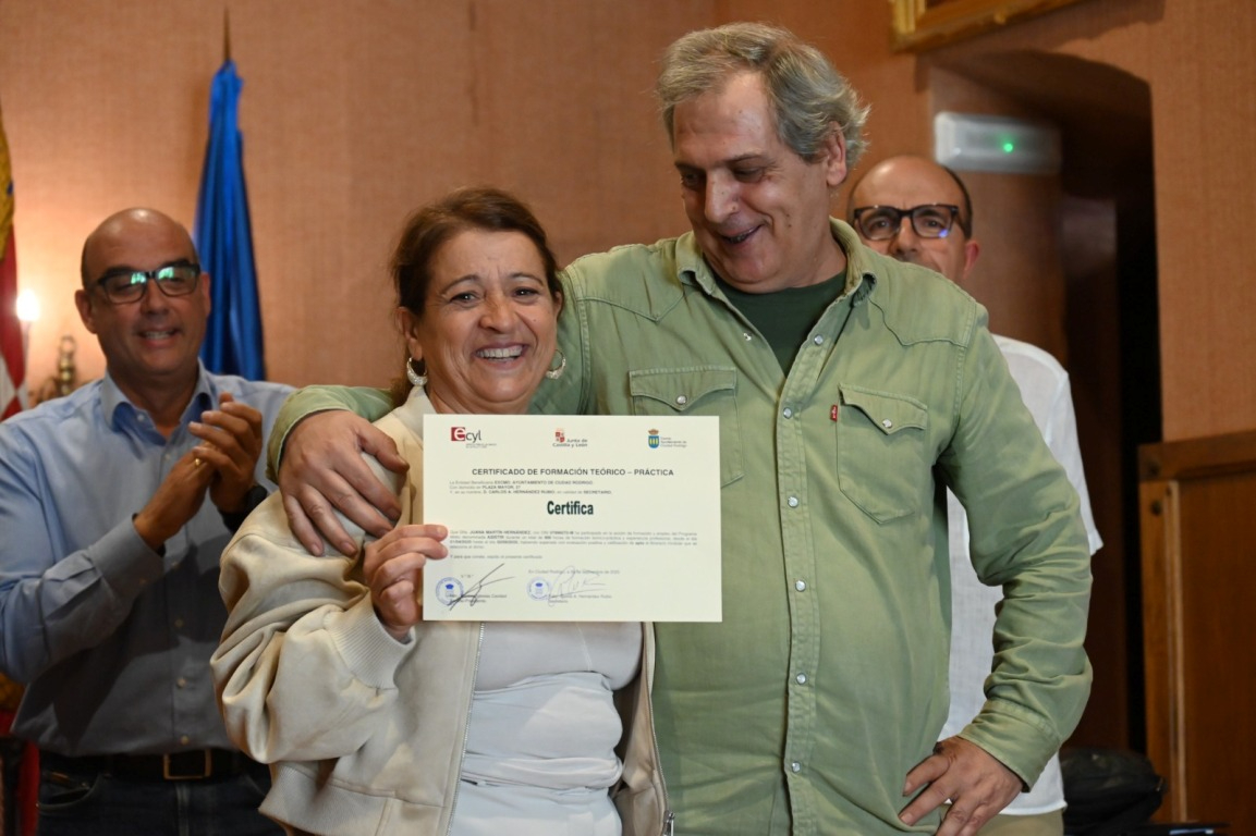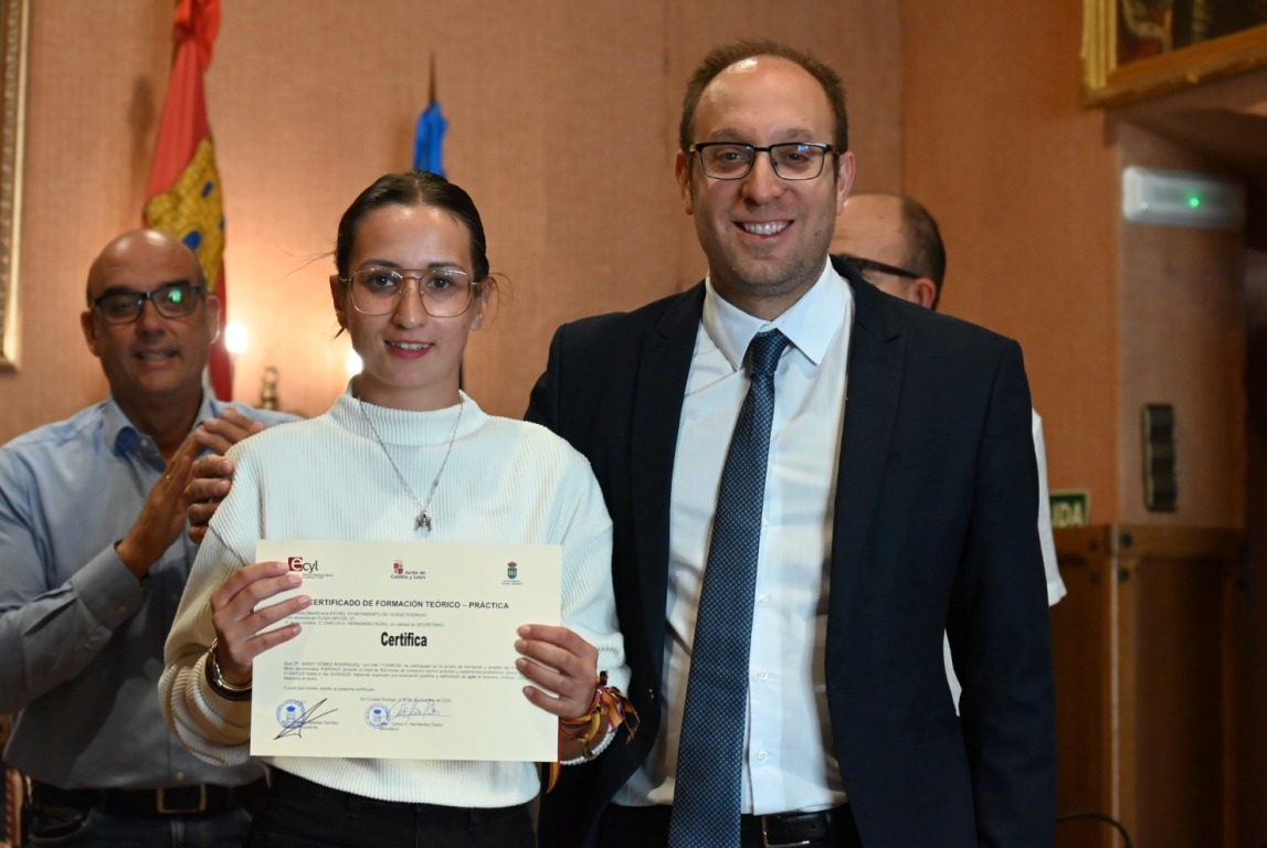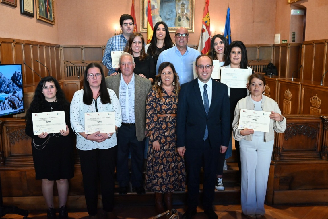 El salón de plenos del Ayuntamiento de Ciudad Rodrigo acogió a última hora de la mañana del martes la ‘graduación’ de los alumnos que han completado las dos acciones en Alternancia en la Formación y en el Empleo (AFE) que ha impartido el Consistorio durante los últimos seis meses (desde el 1 de abril) gracias a dos subvenciones del Servicio Público de Empleo de Castilla y León (Ecyl).