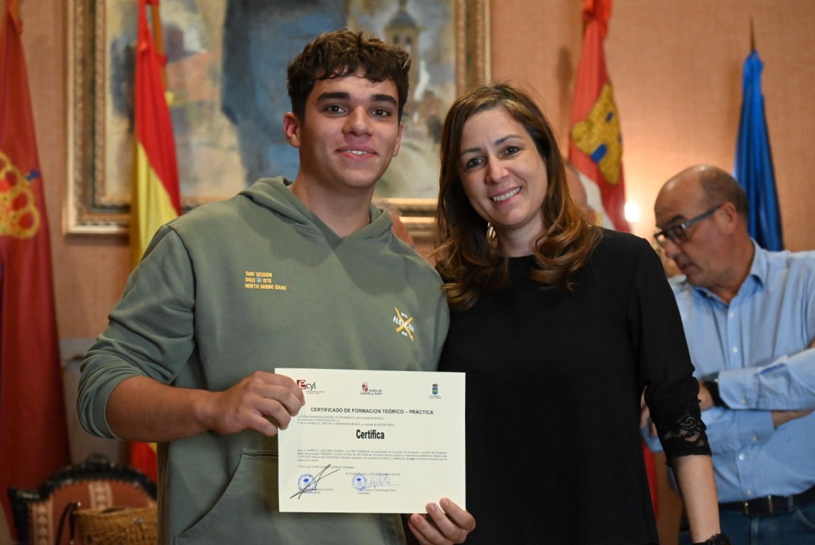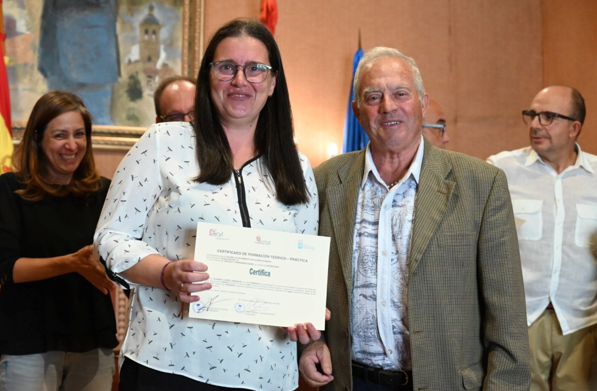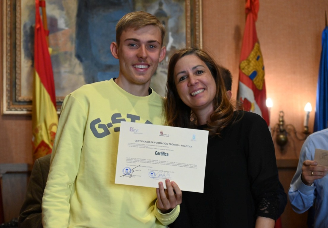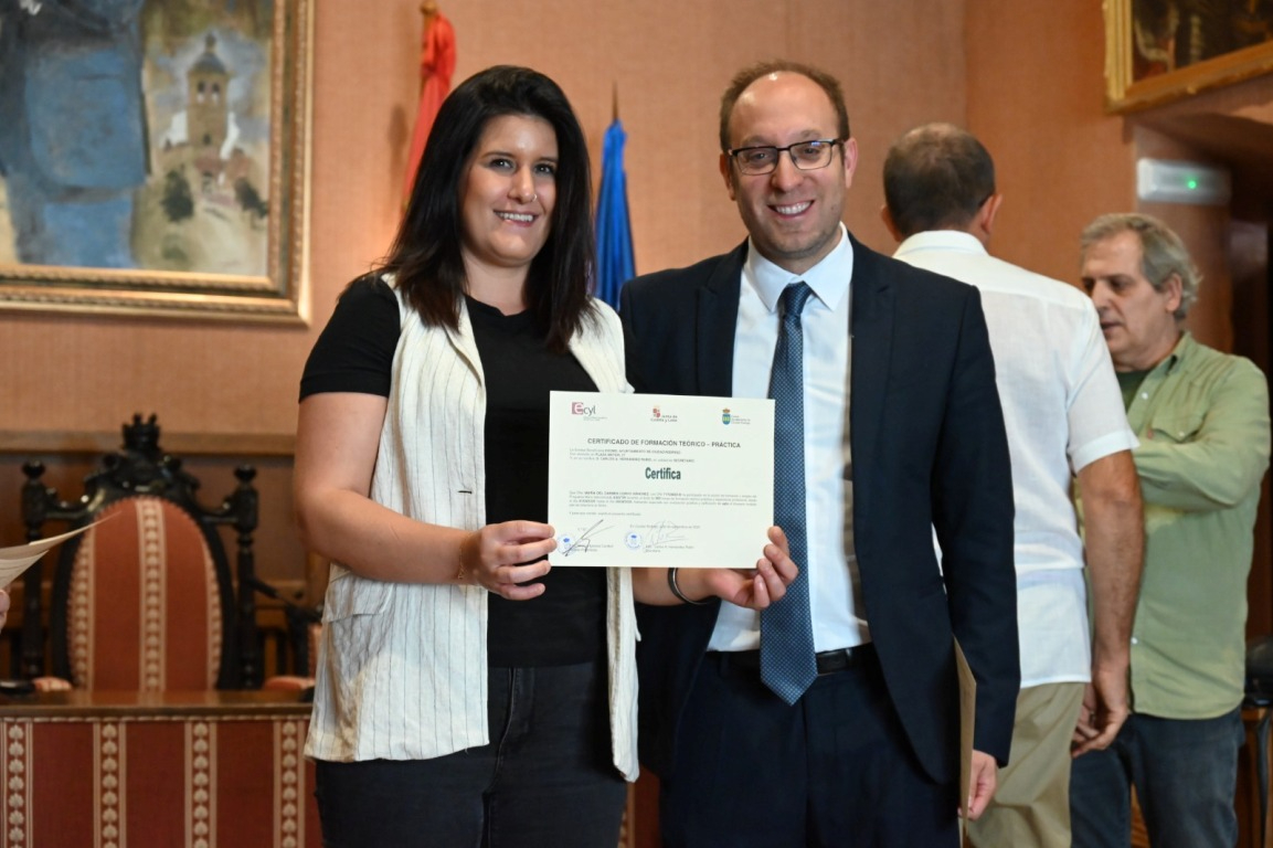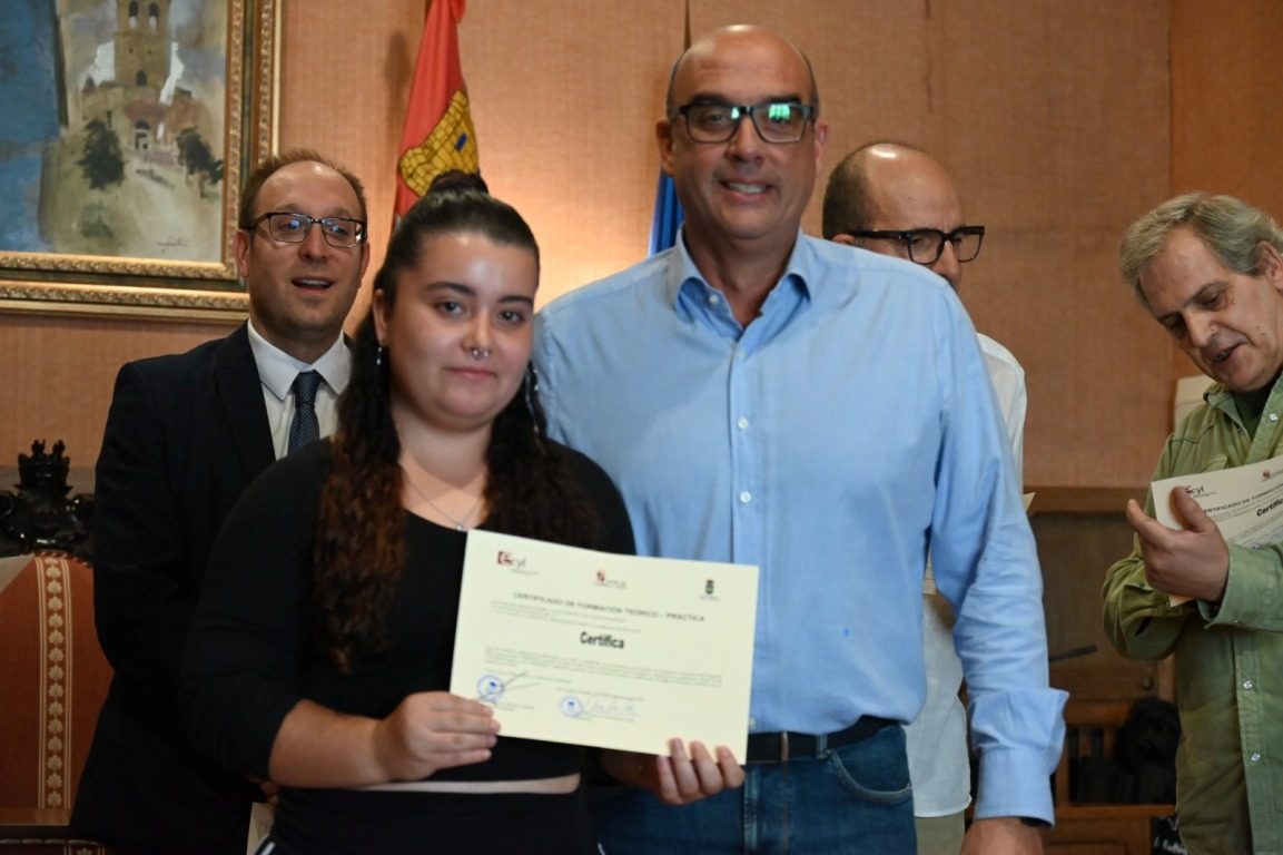 El salón de plenos del Ayuntamiento de Ciudad Rodrigo acogió a última hora de la mañana del martes la ‘graduación’ de los alumnos que han completado las dos acciones en Alternancia en la Formación y en el Empleo (AFE) que ha impartido el Consistorio durante los últimos seis meses (desde el 1 de abril) gracias a dos subvenciones del Servicio Público de Empleo de Castilla y León (Ecyl).