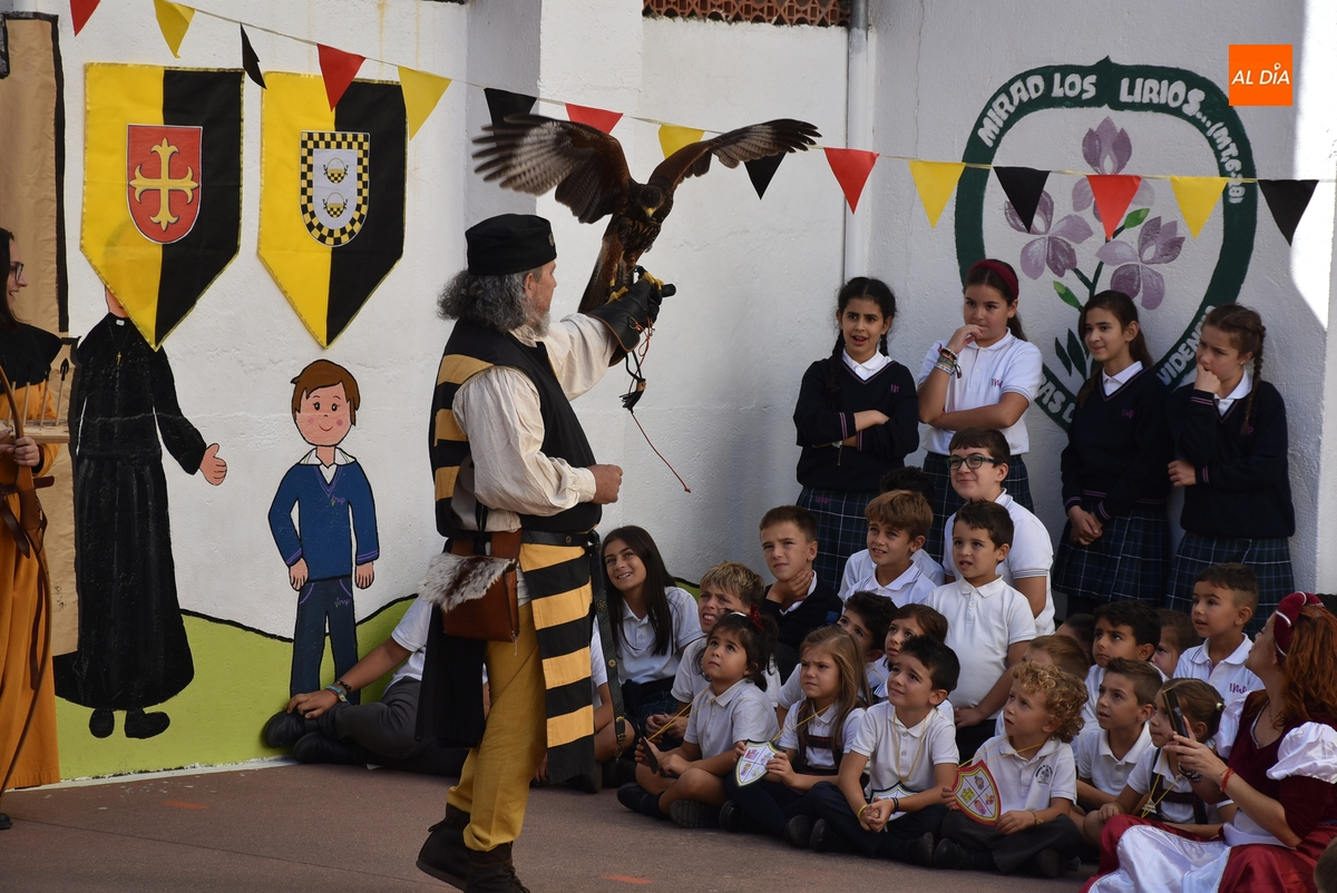 En la mañana del miércoles, los miembros de Rodericus llevaron hasta este centro un par de aves, para hablar sobre la cetrería; arcos y modelos de puntas de flechas, para explicar las actividades relacionadas; o espadas, llegando a realizar una pequeña muestra de las batallas (los niños reclamaron ‘varios pases’ de la misma). Asimismo, se relató una pequeña historia.