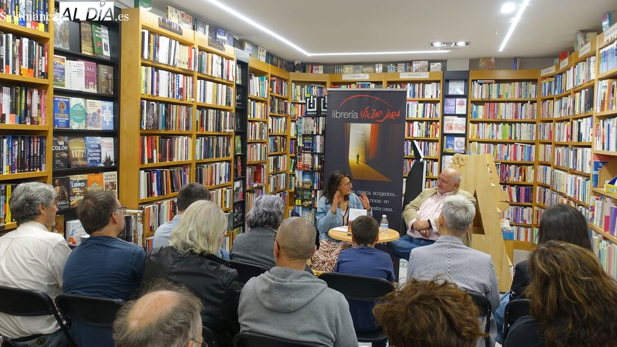 Y lo hace también José Ignacio desde su posición de crítico, porque esta historia coral que tanto hace disfrutar con su dibujo certero de personajes, el gusto por el detalle significativo, el uso riquísimo del lenguaje oral, el humor y la viveza, tiene una carga enorme de homenajes a autores, películas, música… citas admiradas en las que destaca la protectora sombra del autor recientemente fallecido José Antonio Abella, de quien toma los nombres de la pareja quizás “más” protagonista. Leo y Selma, héroes cotidianos de una historia de amor esperanzada, plena de ternura y de dignidad, de esa “pasión sosegada” que ha descubierto el autor, son un guiño al protagonista masculino de la novela de Abella El corazón del cíclope y de su última heroína, Santa Selma. Un homenaje que se une al hecho de que José Ignacio escribió la novela con una fotografía del autor en su despacho, convencido de que no solo tenía que narrar una historia en la que se trenzan numerosos personajes que, llegado el momento fueron cada uno por su lado imponiéndose a la voluntad del autor, sino de que tenía que hacer literatura. Y esa literatura para él es crear belleza, llegar al lector, trascender, emocionar… y nos lo dice con sencillez, con afecto, con cercanía, con alegría, con esa energía que despliega para hablar de lo que ama, de lo que disfruta, de lo que entrega. Y en esa entrega no solo caben los delfines que surcan una librería siempre generosa y hospitalaria, Víctor Jara, sino los nombres de nuestra cercana literatura que tanto nos ha mostrado, nos ha regalado, nos ha traído este autor toda vida y toda literatura. Una novela, sencillamente, para recorrer la existencia cotidiana, maravillarse, plantearse lo bello de vivirla, lo esforzado de recorrerla, lo hermoso de compartirla. Bravo por José Ignacio García, sus delfines y su palabra sabia que regresará a Salamanca en noviembre para seguir hablando de literatura, la buena, la nuestra. Y ahí estaremos