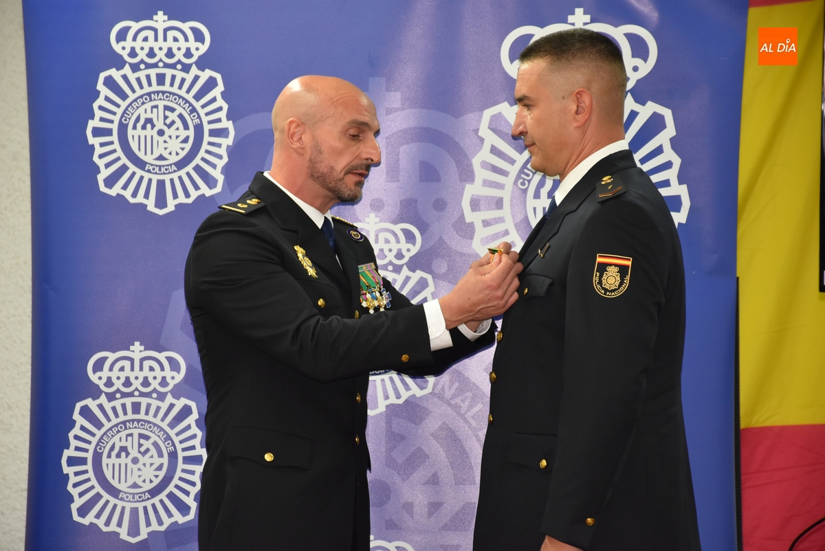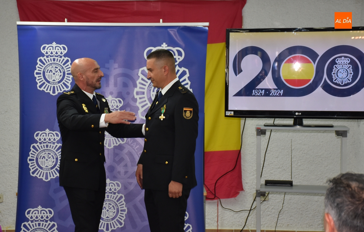 Por un lado, se impuso a Raúl González Frutos la Cruz con distintivo Blanco que le ha sido concedida por su mérito y dedicación, con la cual ingresa en la Orden del Mérito Policial. La condecoración fue impuesta por el actual Jefe de la Comisaría de Fuentes de Oñoro, Baltasar Reyes, quién apuntó que esta distinción “reconoce tu compromiso constante, y tu ejemplar trayectoria”, siendo “reflejo de tu trabajo y compañerismo”.