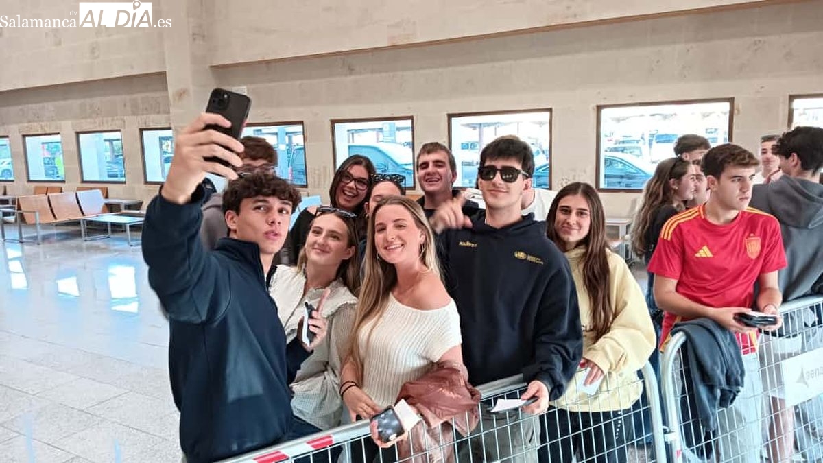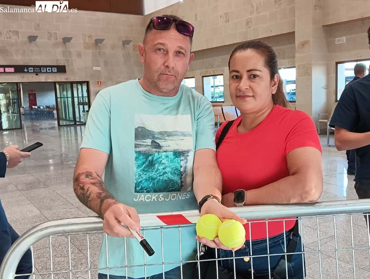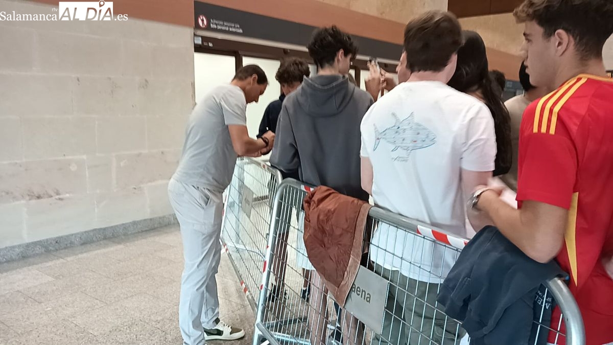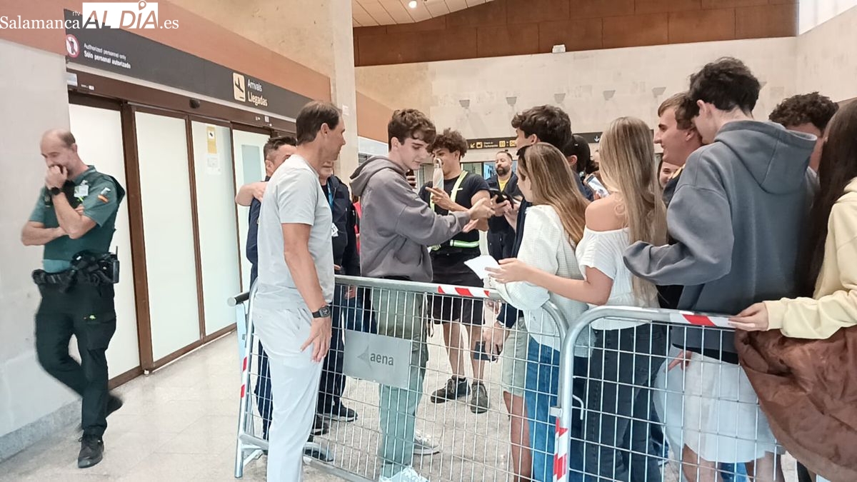 Muchos aficionados han esperado la llegada de Nadal en el aeropuerto salmantino; el tenista ha atendido amablemente a todos ellos y ha accedido a todas las peticiones de fotos.