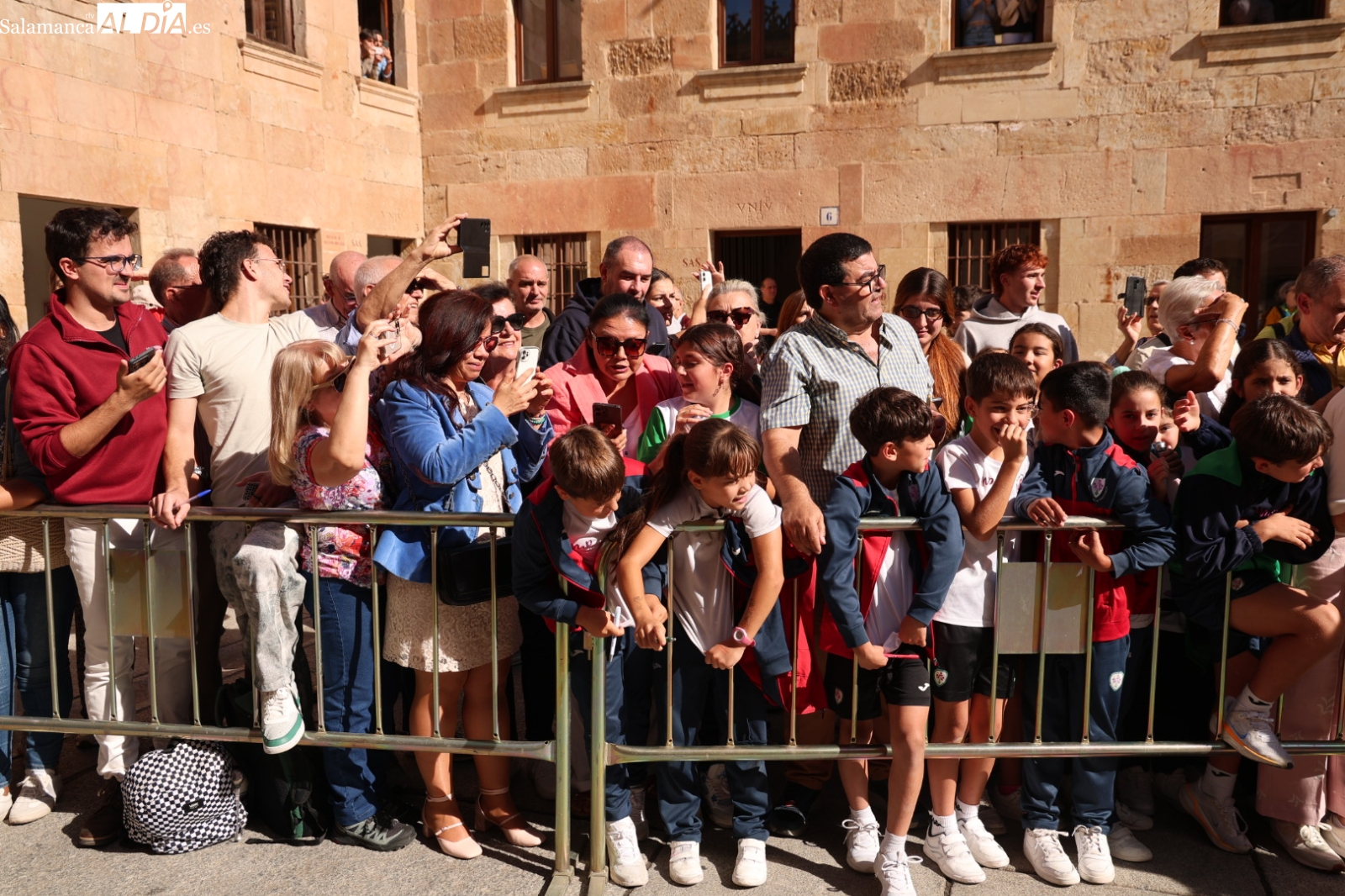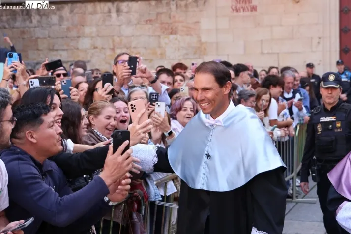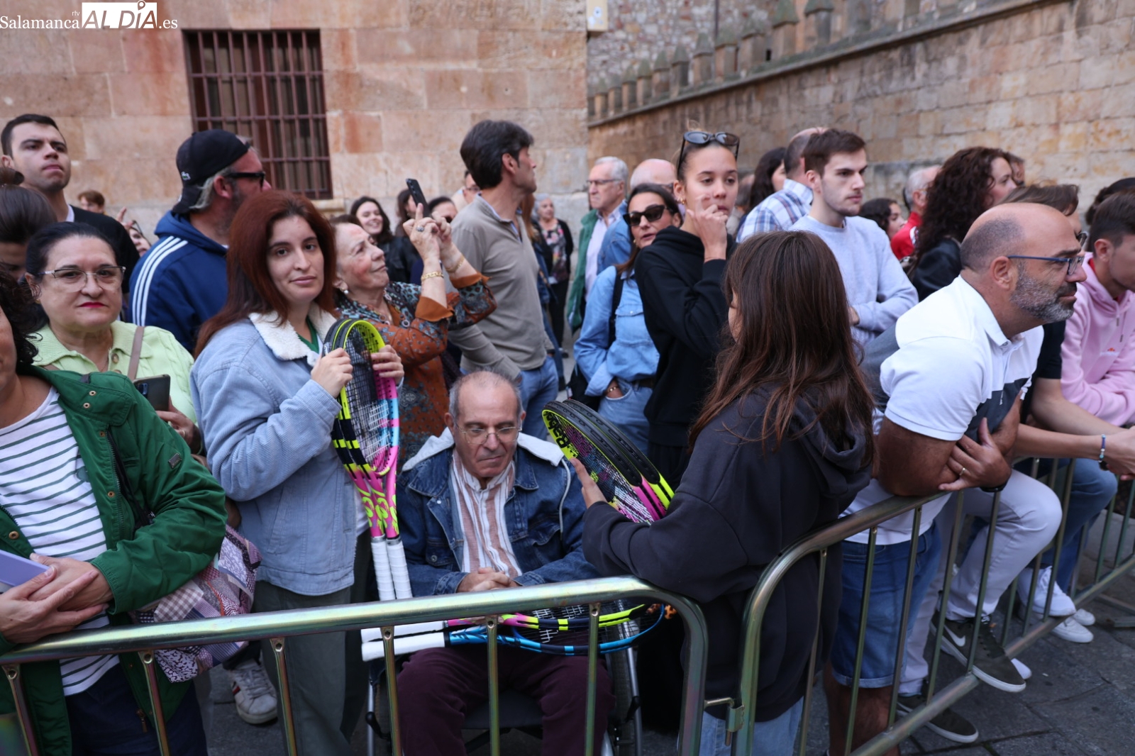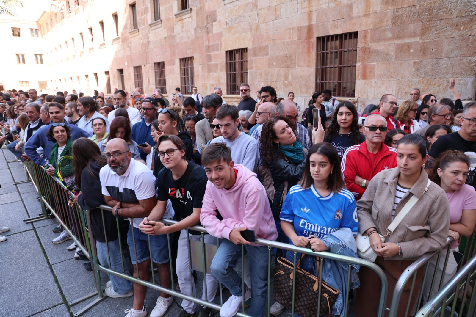 Los salmantinos no se han perdido la llegada de Rafa Nadal a la USAL para su nombramiento como doctor honoris causa. De este modo, un buen número de personas han acudido a la Universidad para ver en persona al ganador de 22 Grand Slams y mostrarle su cariño.