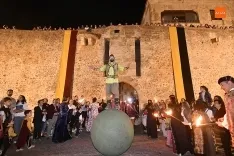 El punto de arranque de la velada (todavía con luz diurna) fue la concentración junto a la denominada Puerta de La Conjura de todos los miembros de Rodericus, para sacarse una gran foto de familia, antes de poner rumbo al lugar de partida del desfile, el Arrabal del Puente, hasta donde se fueron acercando casi todos los grupos de animación de la Feria (algunos esperaron en el recinto histórico), todo ello ante la expectación y curiosidad de los vecinos de ese barrio.