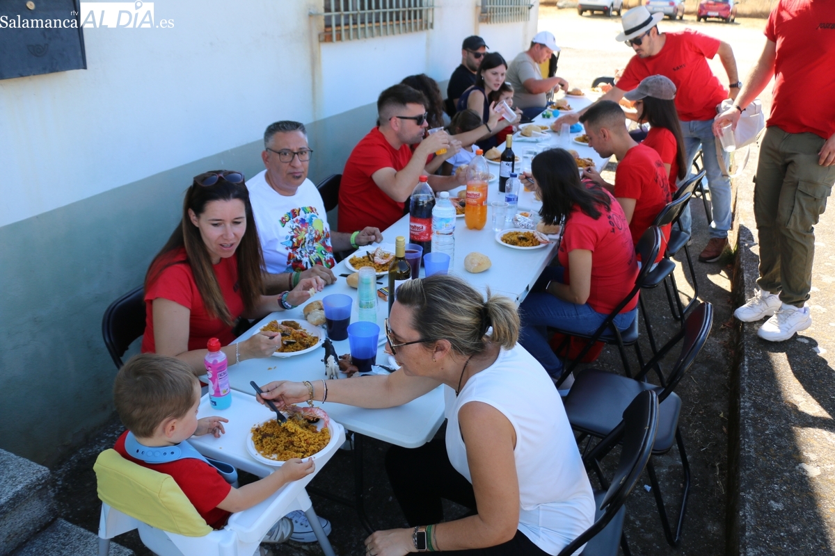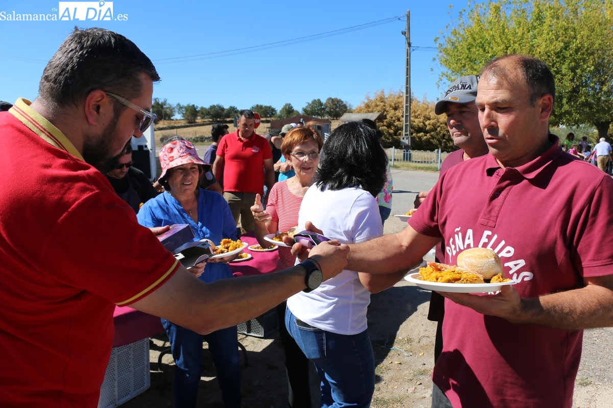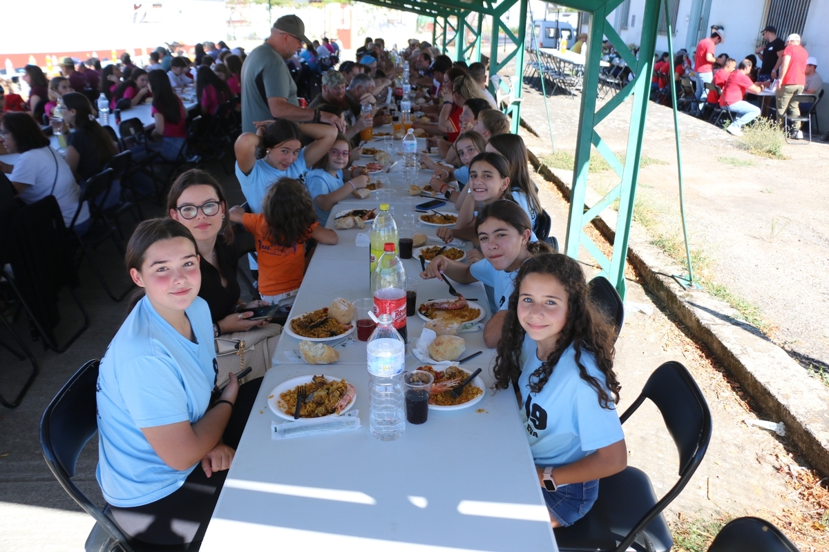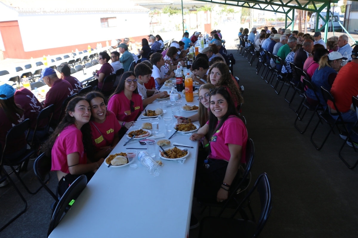 Desde mediodía, el aroma del arroz comenzaba a impregnar la localidad, anticipando una comida de confraternidad para la que se prepararon 380 raciones acompañadas de helado de postre. A la cita no faltaron las peñas, auténticas protagonistas de las fiestas, así como numerosos grupos de amigos y familias al completo, que compartieron mesa y mantel consolidando el espíritu de hermandad que caracteriza a estas fiestas.