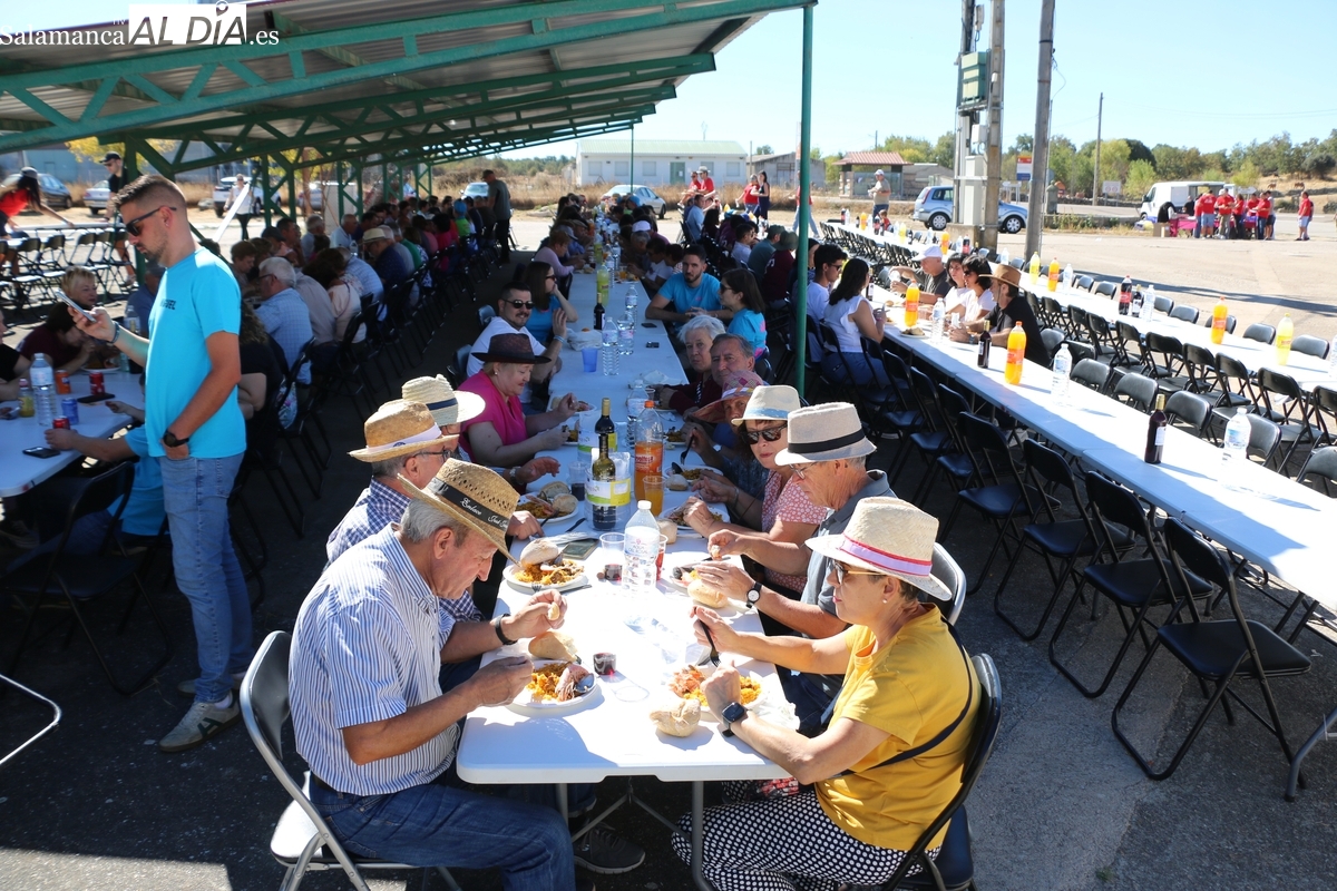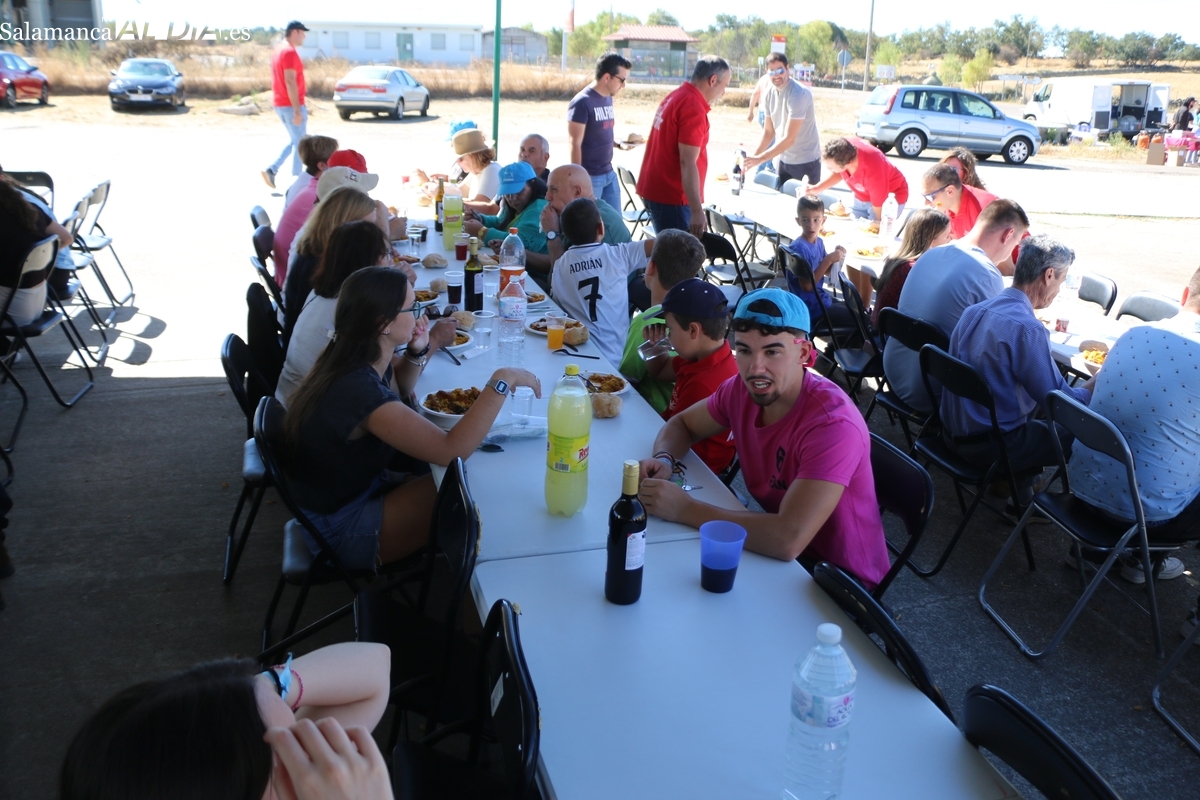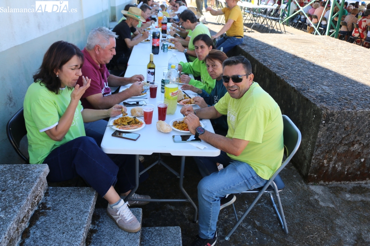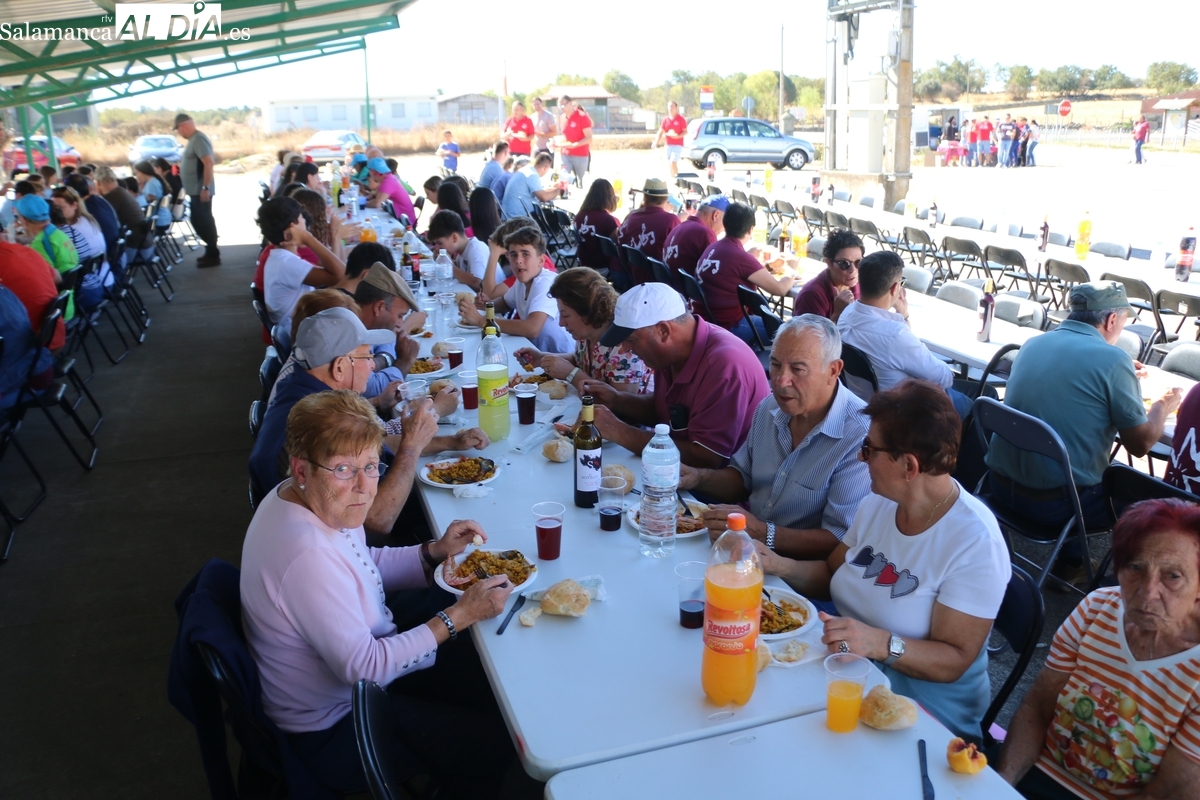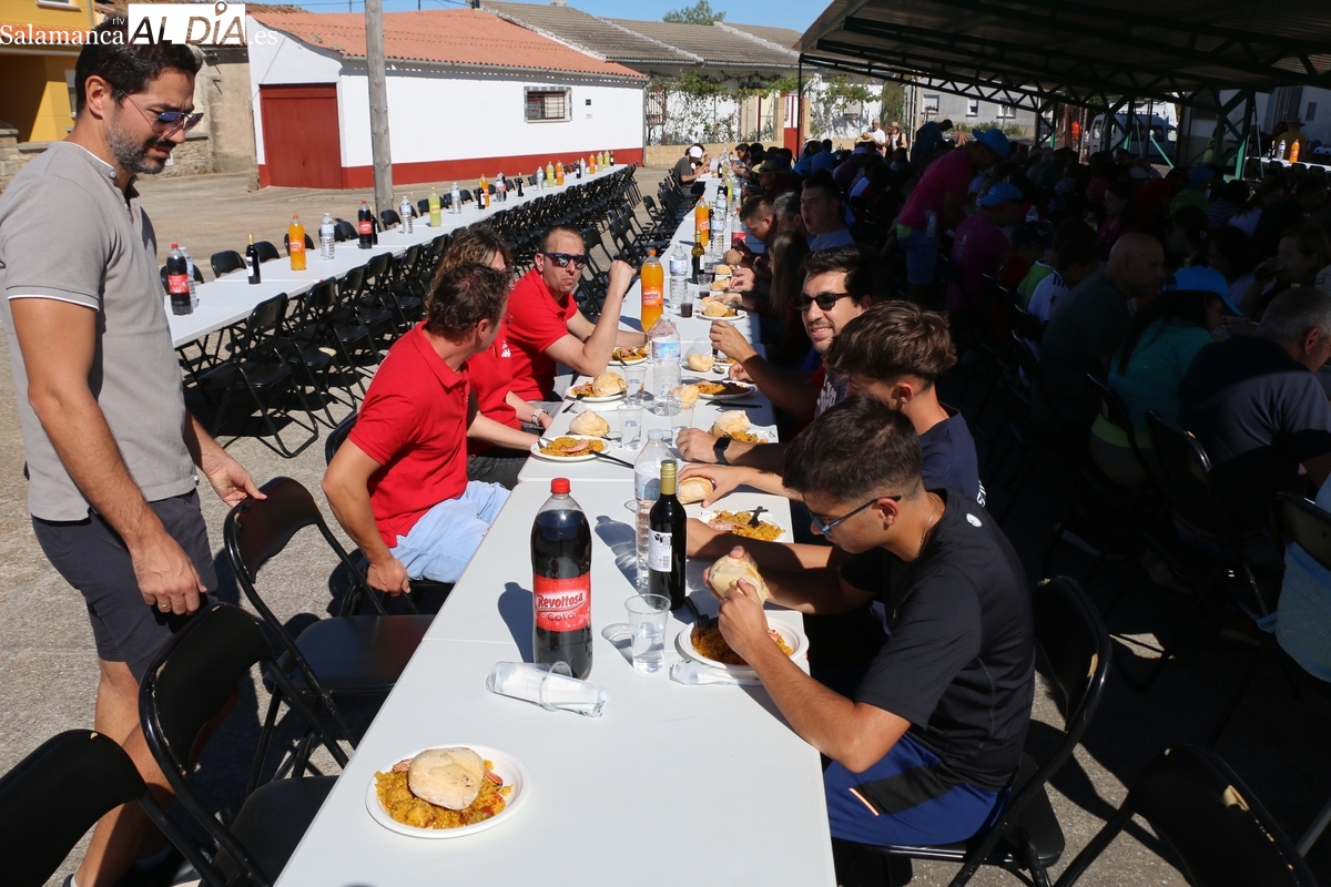 Desde mediodía, el aroma del arroz comenzaba a impregnar la localidad, anticipando una comida de confraternidad para la que se prepararon 380 raciones acompañadas de helado de postre. A la cita no faltaron las peñas, auténticas protagonistas de las fiestas, así como numerosos grupos de amigos y familias al completo, que compartieron mesa y mantel consolidando el espíritu de hermandad que caracteriza a estas fiestas.