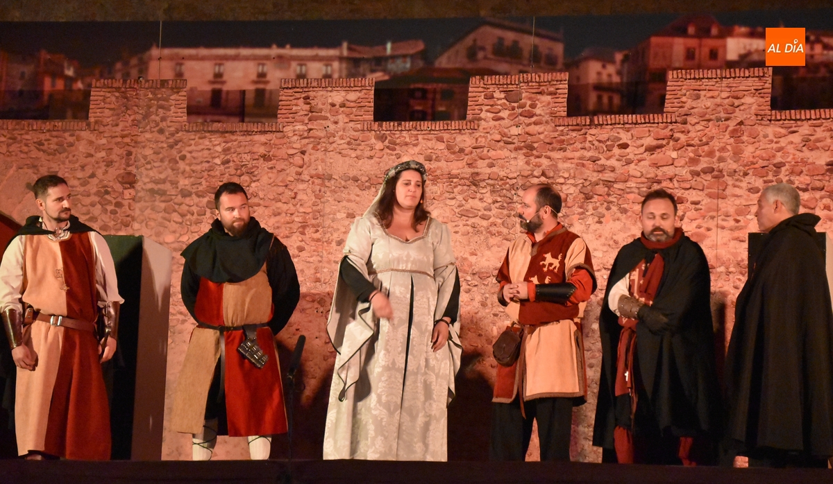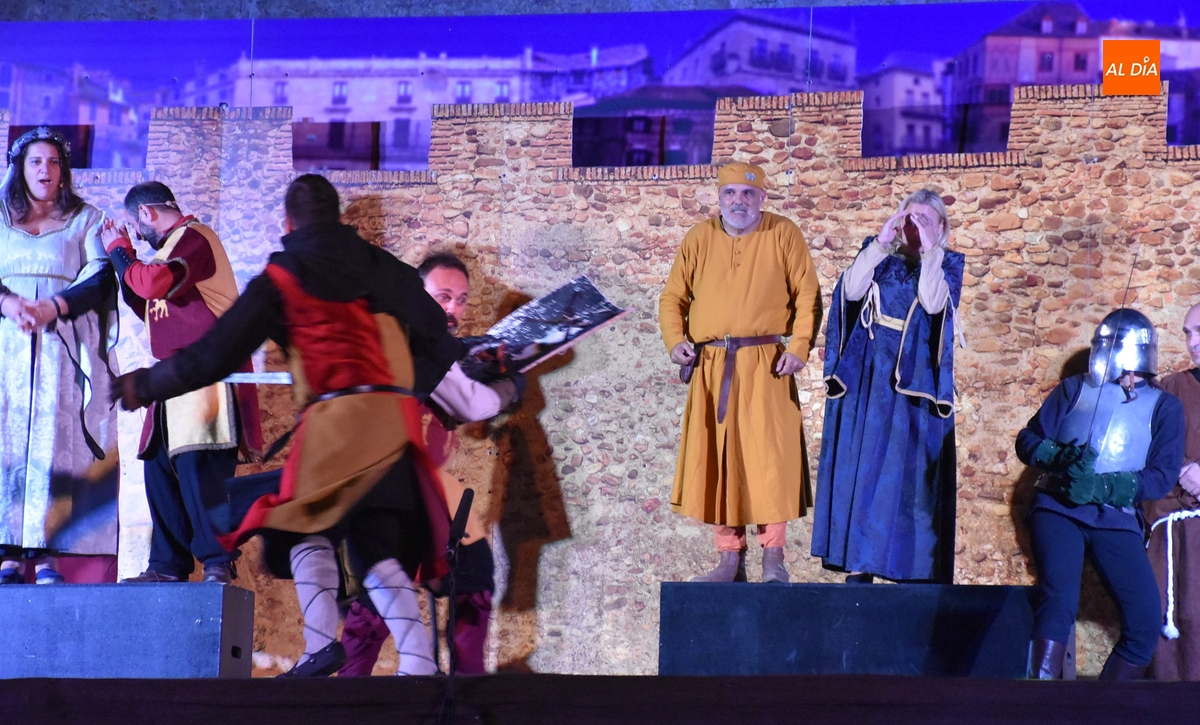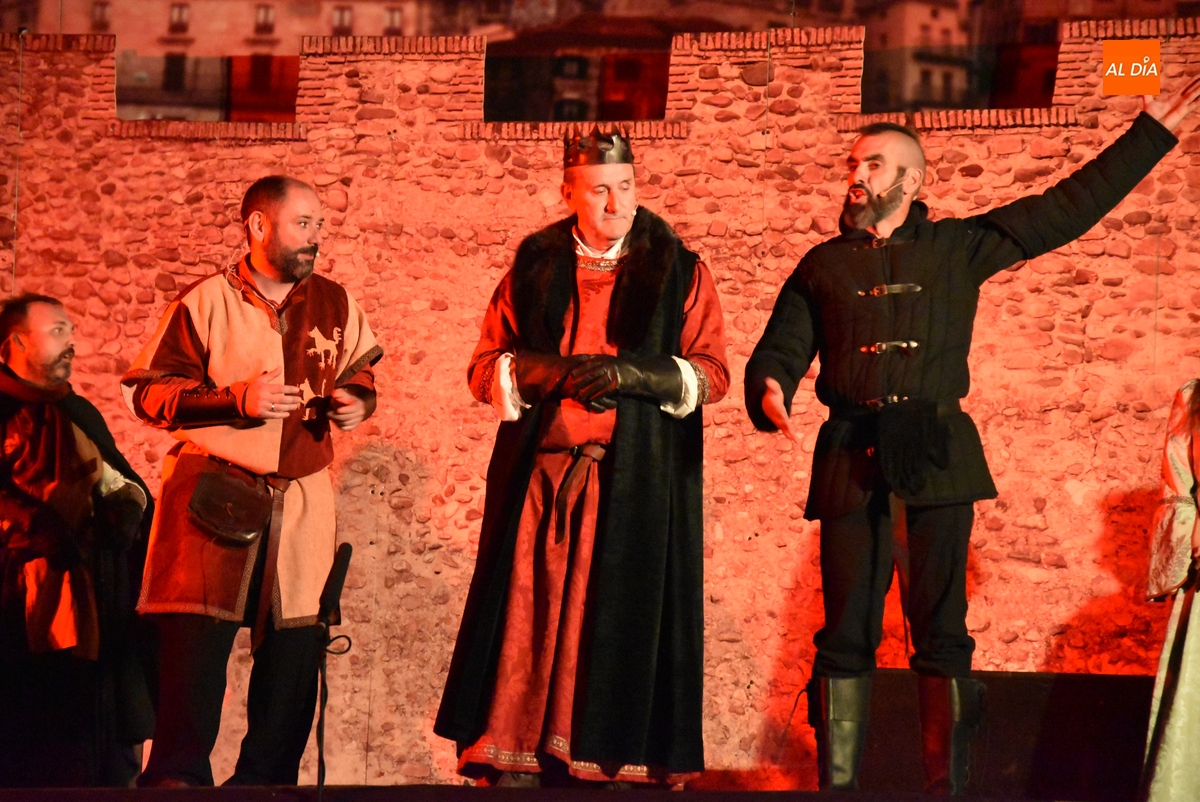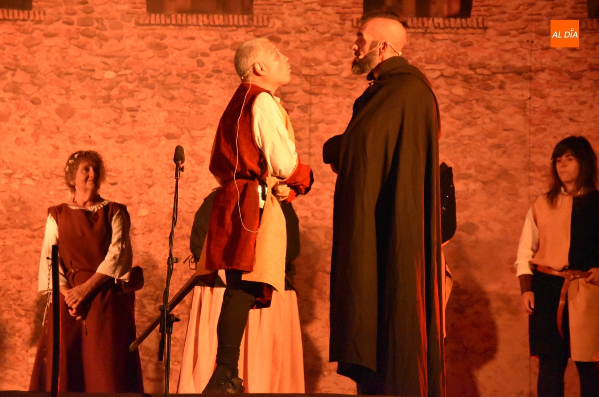 La Feria Medieval de Ciudad Rodrigo tuvo en la noche del sábado la cita más importante para los integrantes de la entidad que promueve el evento, la Asociación Cultural Rodericus: la representación teatral de La Conjura de Ciudad Rodrigo, que han venido preparando intensamente, con sprint incluido en los últimos días en los propios Jardines de Bolonia (como es costumbre, los últimos ensayos tuvieron lugar durante la misma tarde sabatina).