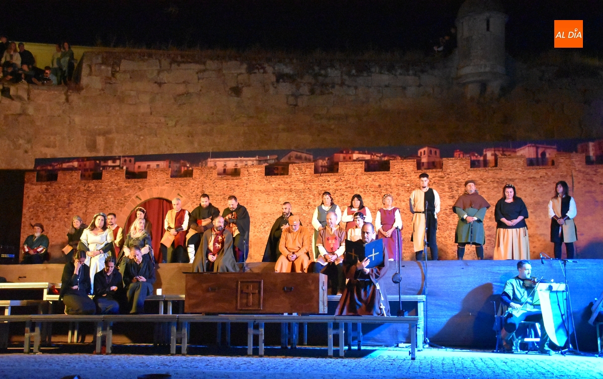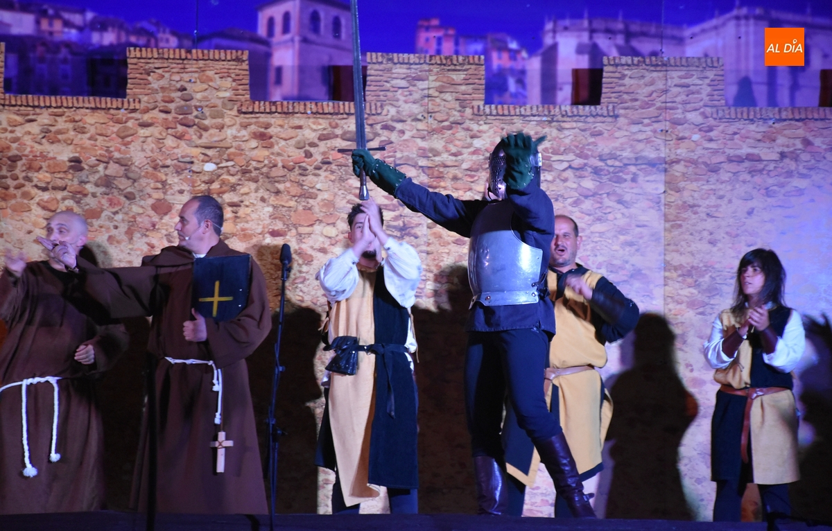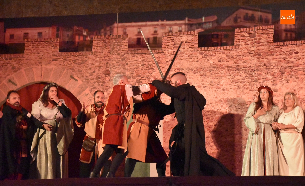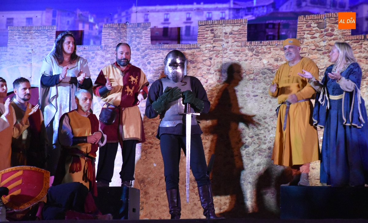 La Feria Medieval de Ciudad Rodrigo tuvo en la noche del sábado la cita más importante para los integrantes de la entidad que promueve el evento, la Asociación Cultural Rodericus: la representación teatral de La Conjura de Ciudad Rodrigo, que han venido preparando intensamente, con sprint incluido en los últimos días en los propios Jardines de Bolonia (como es costumbre, los últimos ensayos tuvieron lugar durante la misma tarde sabatina).